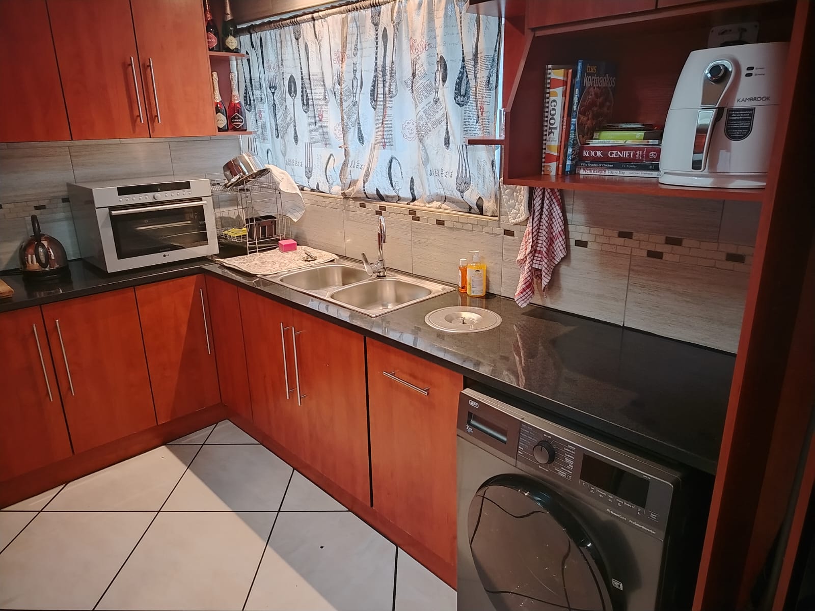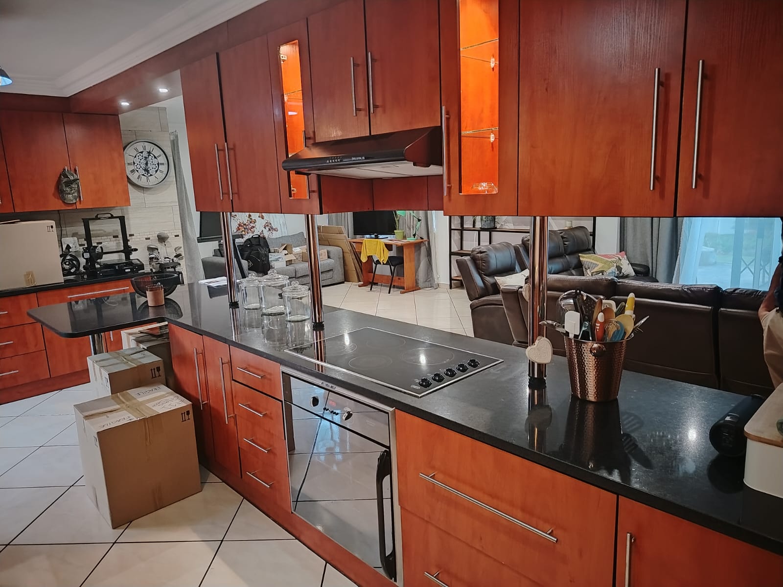 Beautiful home set in manicured gardens, well laid out with the kitchen being the heart of the home offering a lovely built in oven with glass top hop, and extractor fan. Huge amount of modern wooden/glass cupboards giving a lovely homely feel with corner pantry cupboard and open hatch looking into the open plan lounge and dining area. Exceptionally modern and lots of work space finished off with granite tops.