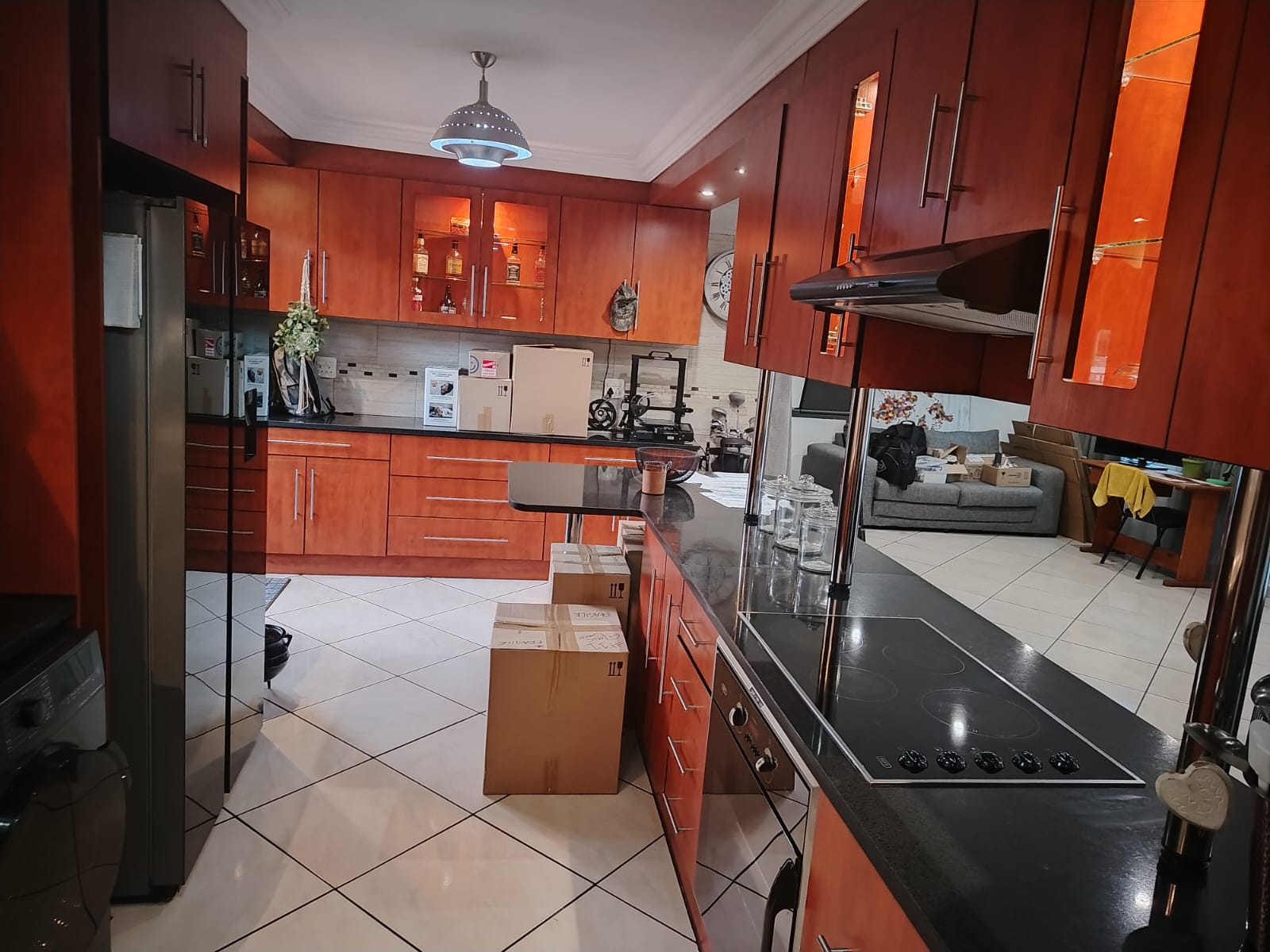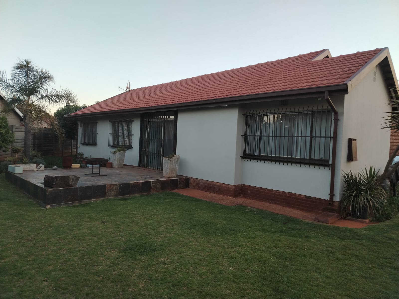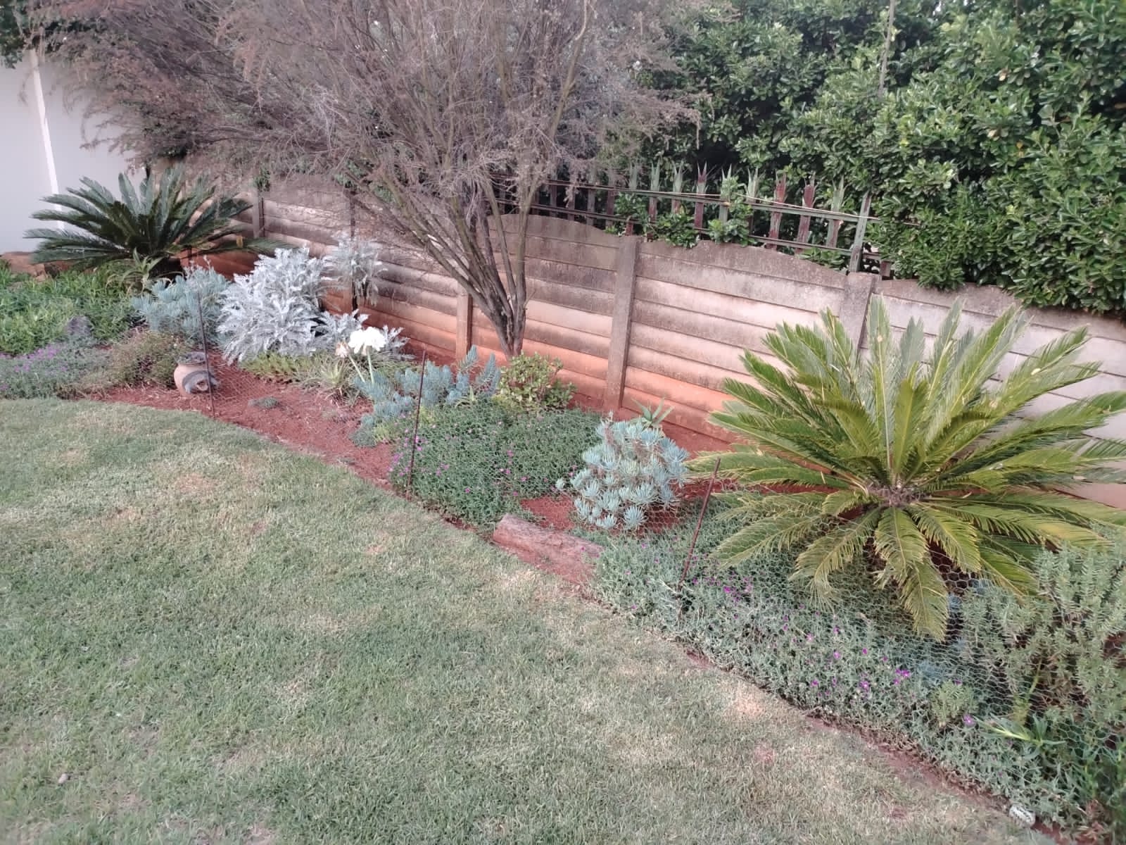 Fully secured home nestled in the heart of Edelweiss ext 1, secured with full walling, lots of outdoor solar lighting, excellent burglar proofing on all windows and trelli door security securing all doors, inside and outside beams, 8 cameras and a burglar alarm system with panic buttons. Perfectly secured.