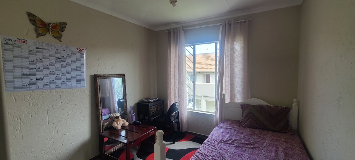 The open-plan lounge and tiled kitchen create a spacious feel, with the kitchen featuring ample built-in cupboards, a breakfast nook, and an electric stove and oven! The main bedroom includes built-in cupboards and a ceiling fan, plus an ensuite bathroom! Two additional bedrooms, also with built-in cupboards, share a family bathroom! The well-maintained complex boasts a communal garden and swimming pool for residents to enjoy! Located in a boomed-off area with 24-hour security, CCTV cameras, and high walls with electric fencing, this unit provides peace of mind! Conveniently located near Karaglen, Greenstone, and Stoneridge shopping centers, it offers easy access to amenities, major highways, and OR Tambo International Airport!