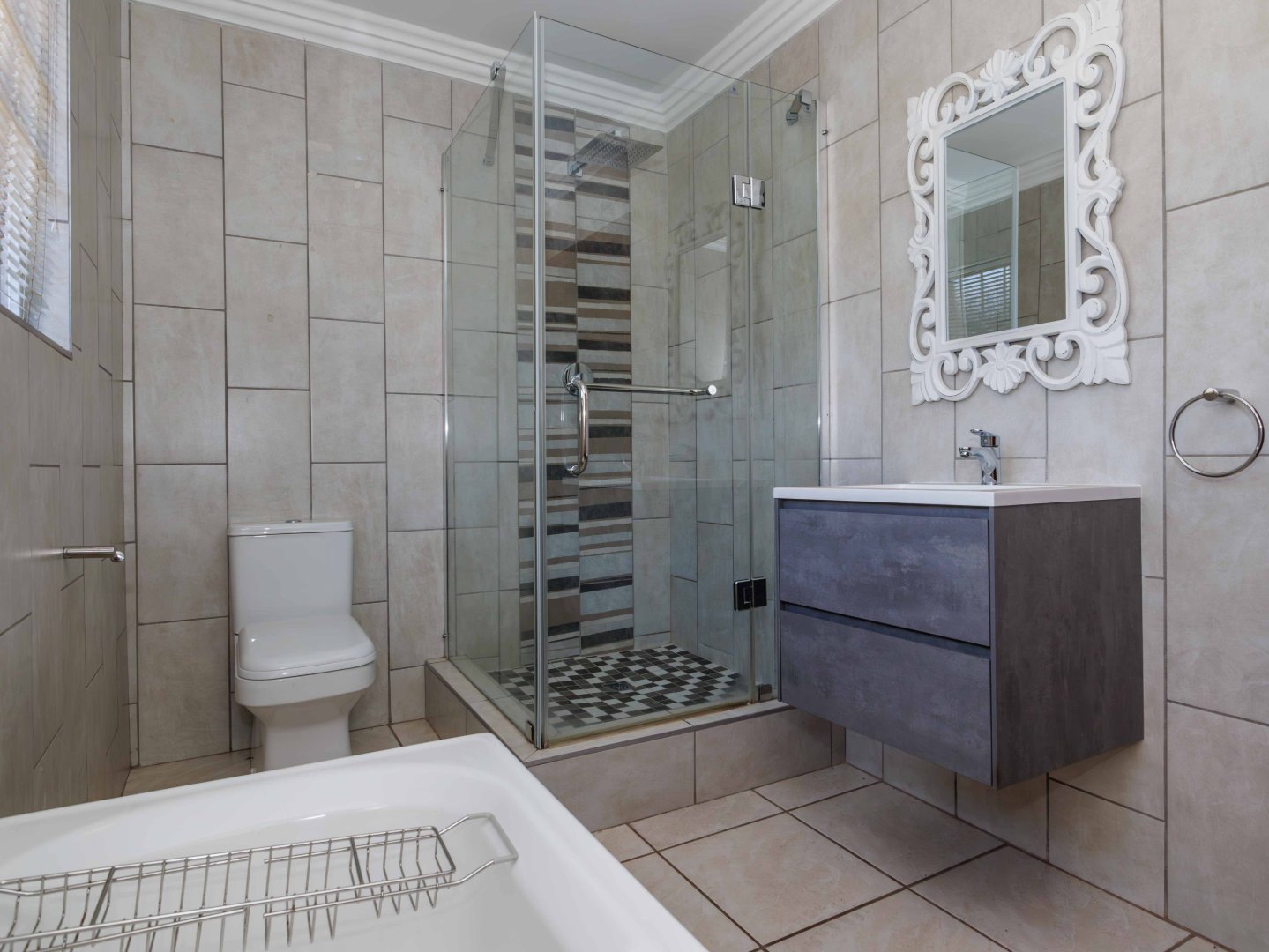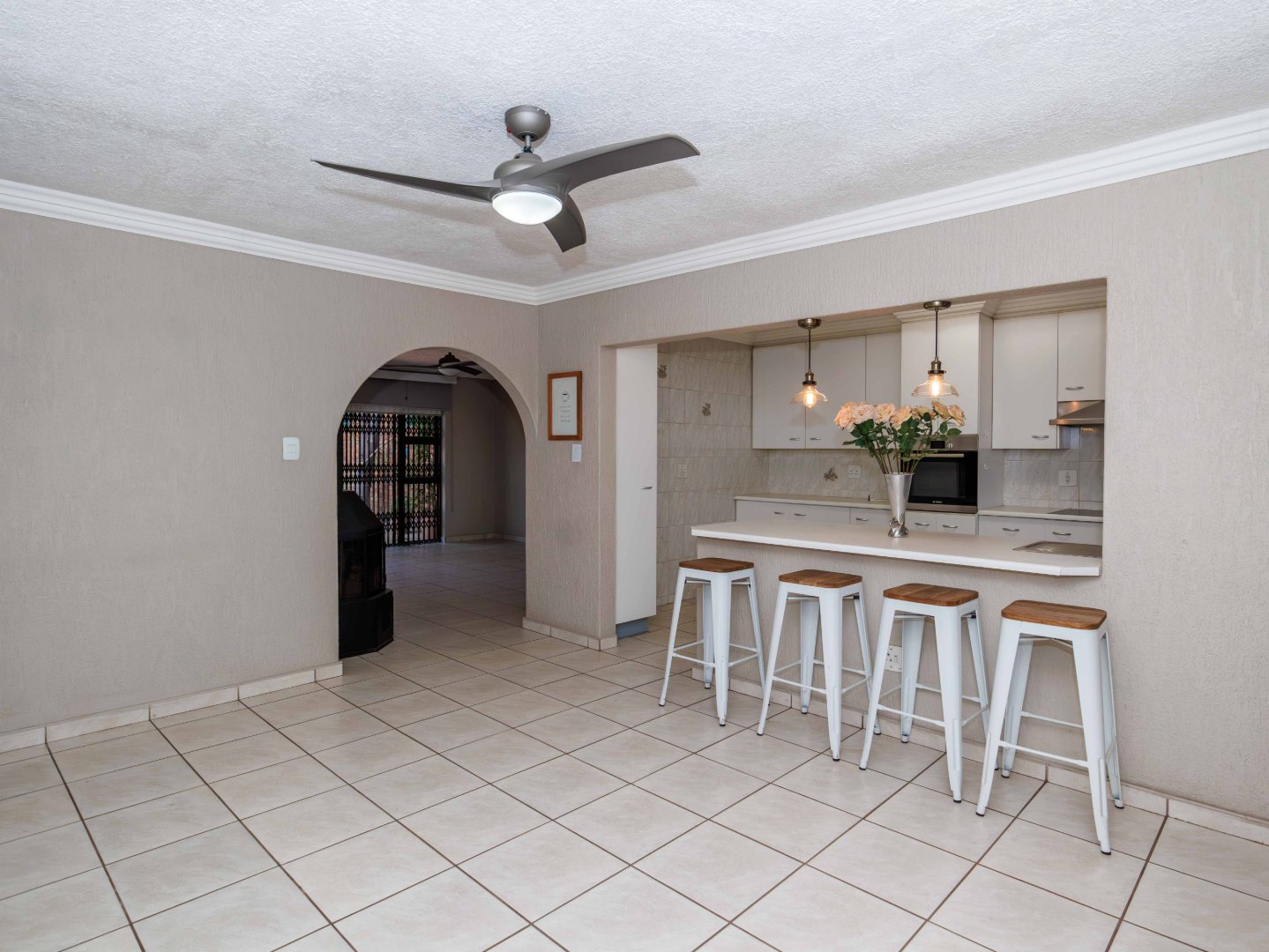 This charming home boasts 3 generously sized bedrooms, including a luxurious main en-suite, and 3 beautifully appointed bathrooms. Each bedroom is equipped with ample cupboard space and ceiling fans, with the main bedroom offering added comfort with an air conditioner. The third bedroom is privately located away from the main house perfect as a guest suite, teenager’s room, office, or helpers room. It also includes its own bathroom with a shower, toilet, and basin.