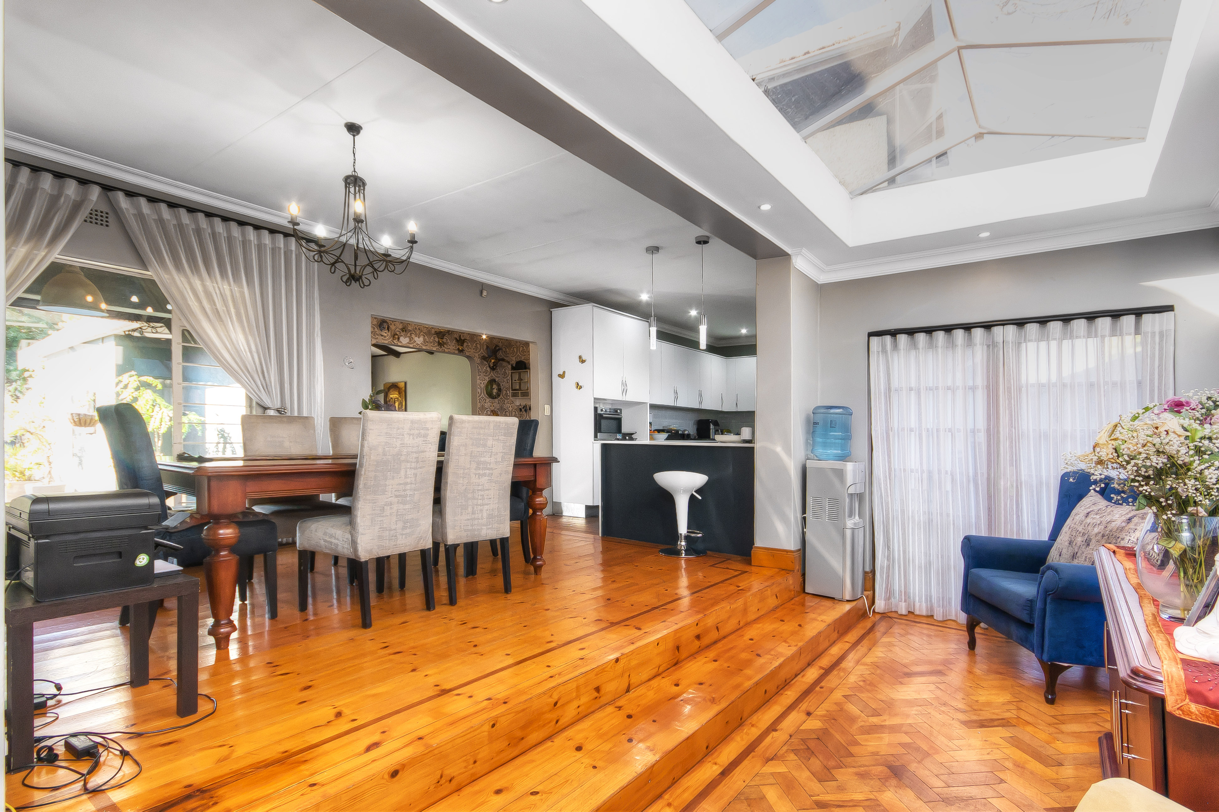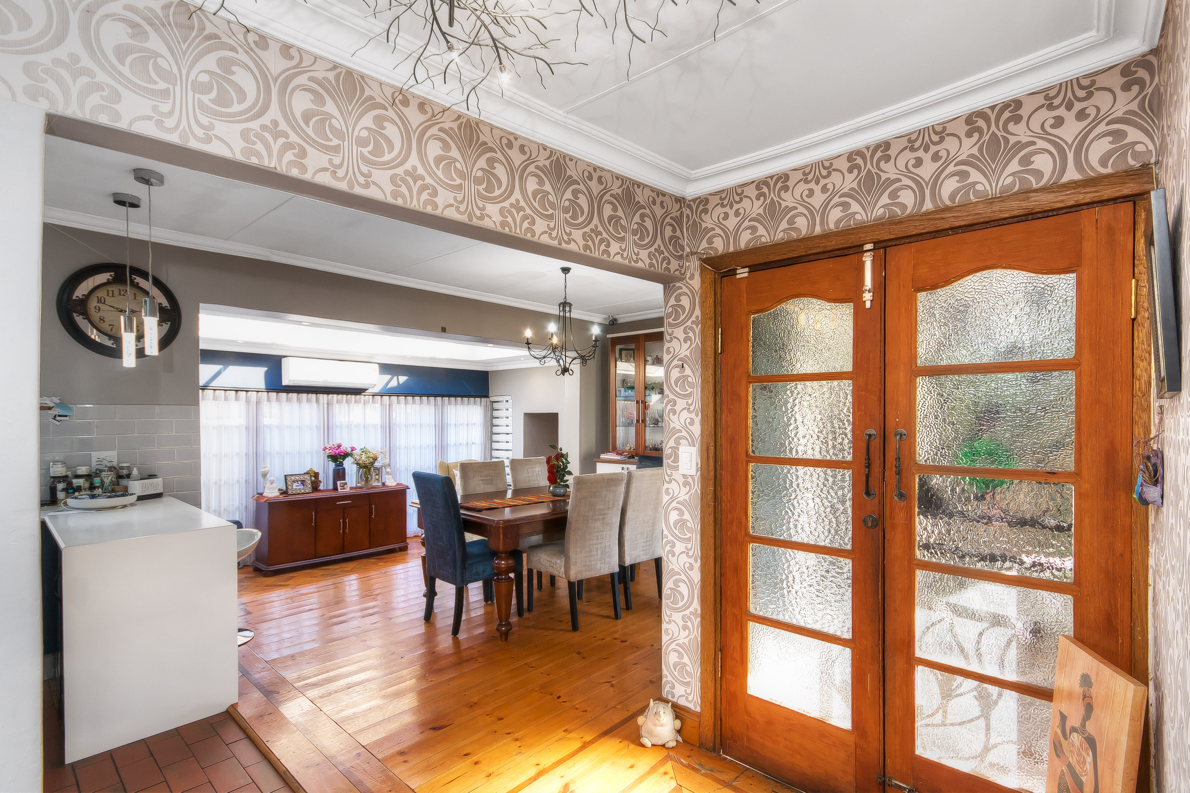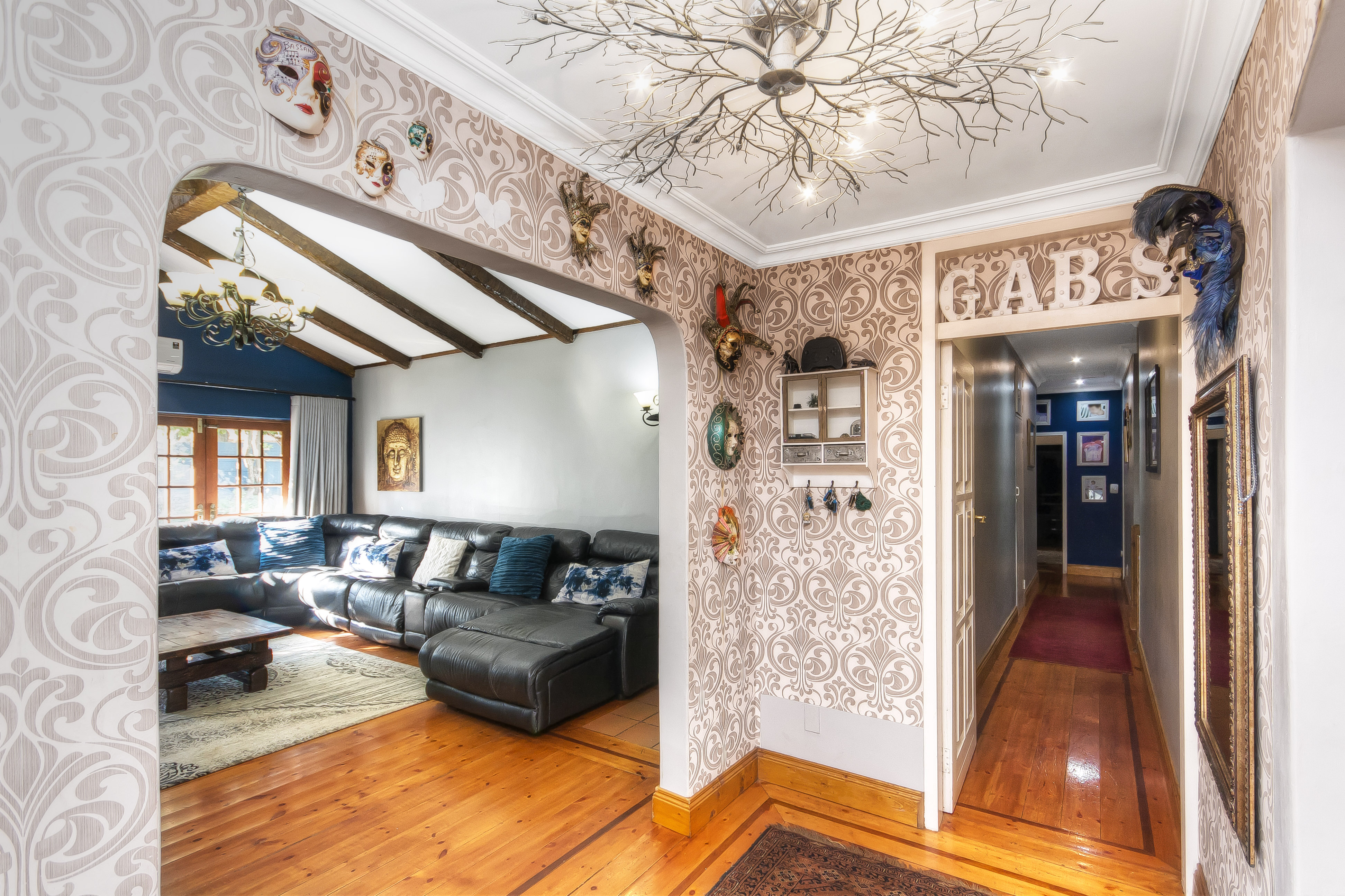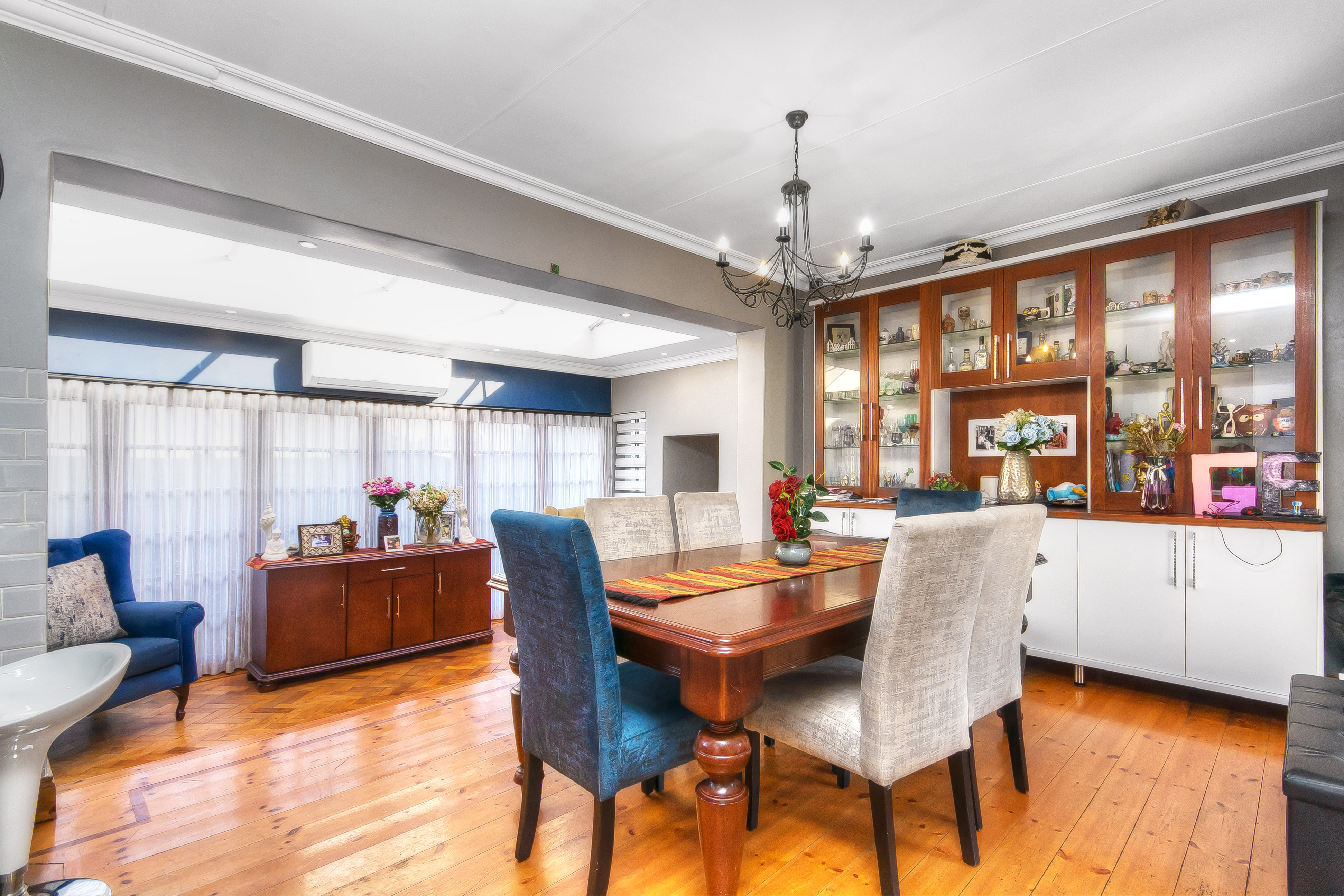 Natural light floods the home, especially in the sunroom off the dining area, creating a seamless indoor-outdoor flow. Stacker/folding doors open onto a sparkling swimming pool and lush landscaped gardens, inviting effortless relaxation and elegant gatherings.