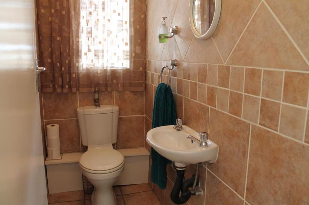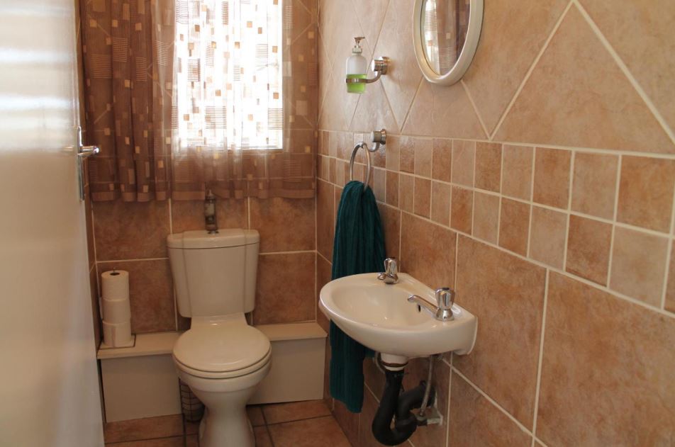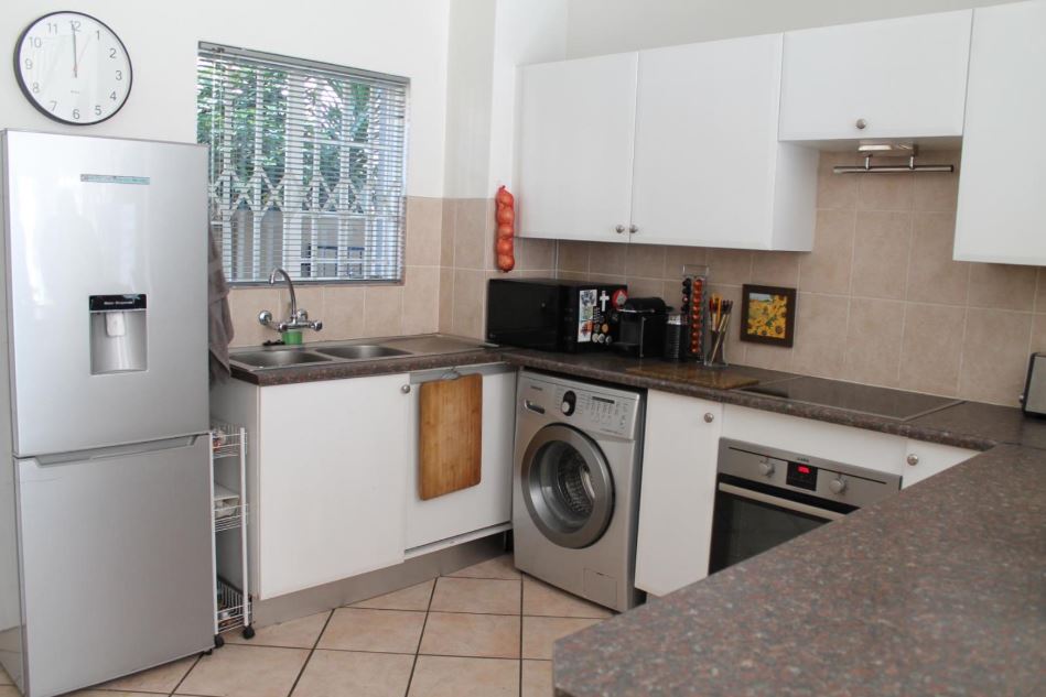 Step through the front door into a sunlit, open-plan living space where a modernised kitchen anchors daily life, flowing seamlessly to the tiled lounge and out to a covered patio complete with built-in braai. Here, low-maintenance synthetic lawn and neat pavers create a private sanctuary for pets, children or quiet evening dinners. A handy guest toilet on this level keeps entertaining stress-free.