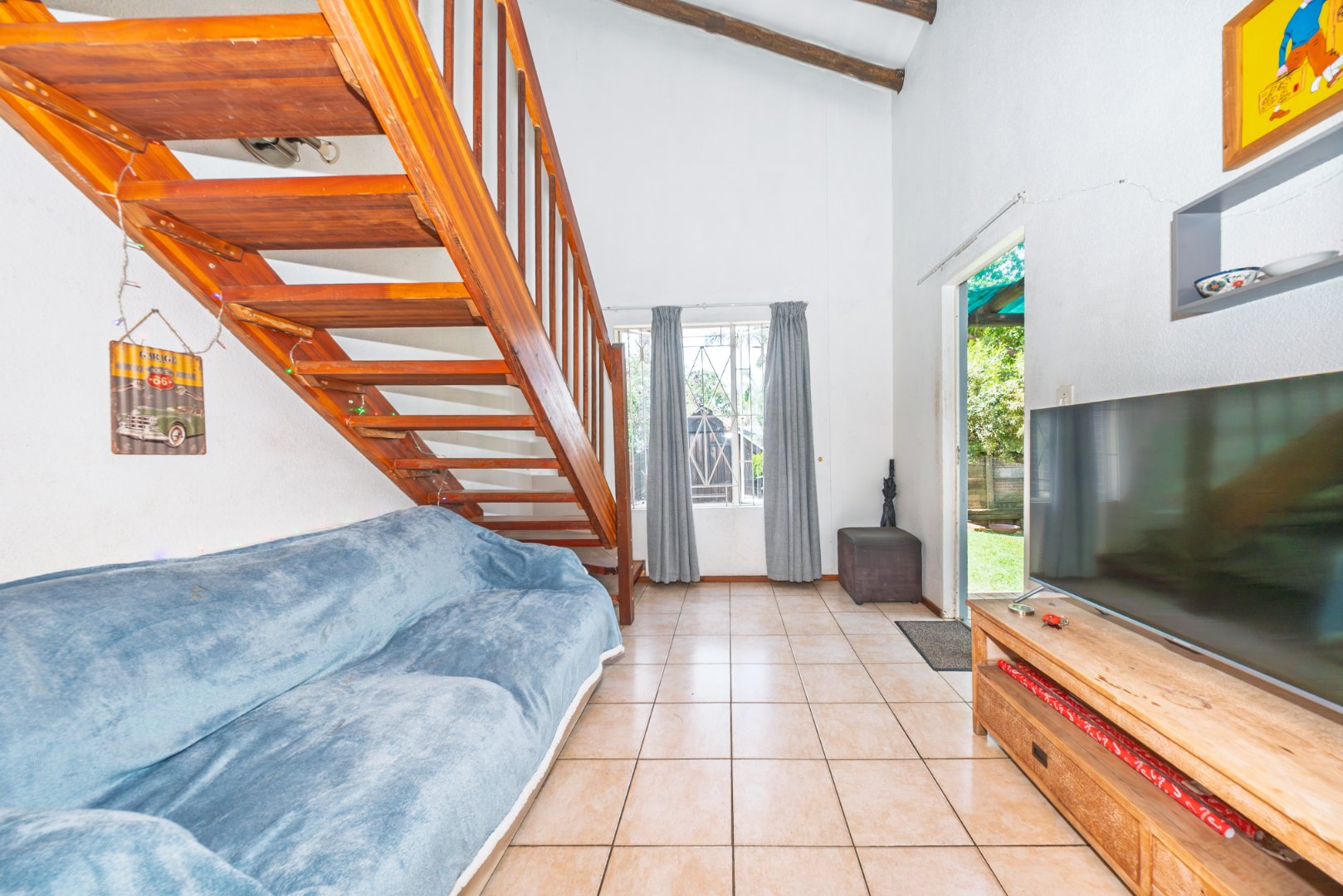 The living area flows effortlessly onto a covered patio and into a lovely private garden. Being positioned on the boundary the garden is larger than average providing extra outdoor space that is ideal for entertaining relaxing or letting pets enjoy the outdoors. Additional extras include a wooden Wendy house for storage and a neatly installed wash line adding everyday practicality.