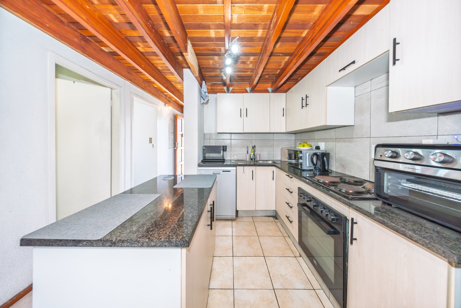 The ground floor welcomes you into a light filled open plan living space anchored by a beautifully designed kitchen with granite countertops a central island and ample cabinetry. There is space for a dishwasher in the kitchen while the washing machine is neatly plumbed upstairs allowing the main living area to remain uncluttered and streamlined. The two bedrooms downstairs have beautiful wood laminate floors and built in cupboards. The ground floor bathroom is a full bathroom fitted with both a bath and shower offering everyday convenience and comfort.