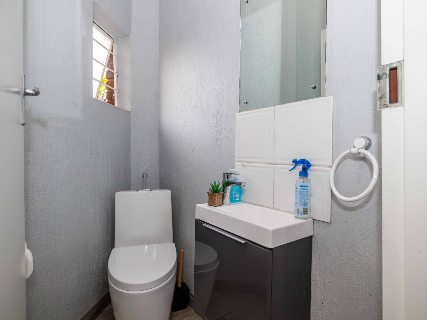 The kitchen is well-appointed, featuring ample cupboard space and room for two under-counter appliances, a fridge, and a microwave, blending practicality with style. From the kitchen, you’ll find a tiled courtyard leading to a versatile outside room with its own shower and toilet, perfect as a helper’s room, fourth bedroom, or even a third bathroom. A convenient guest toilet is also on the ground floor.