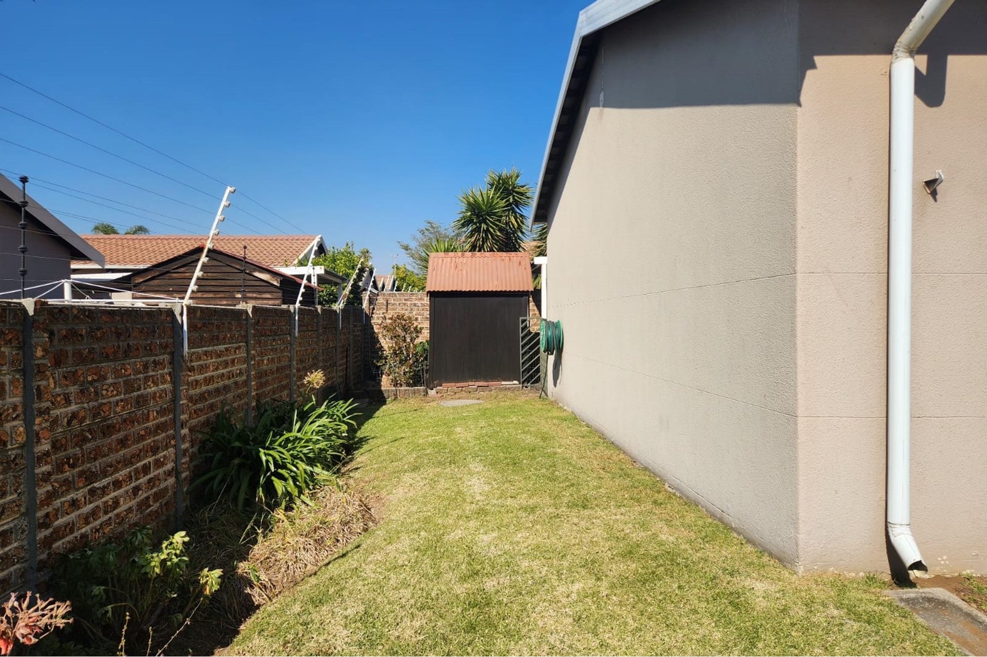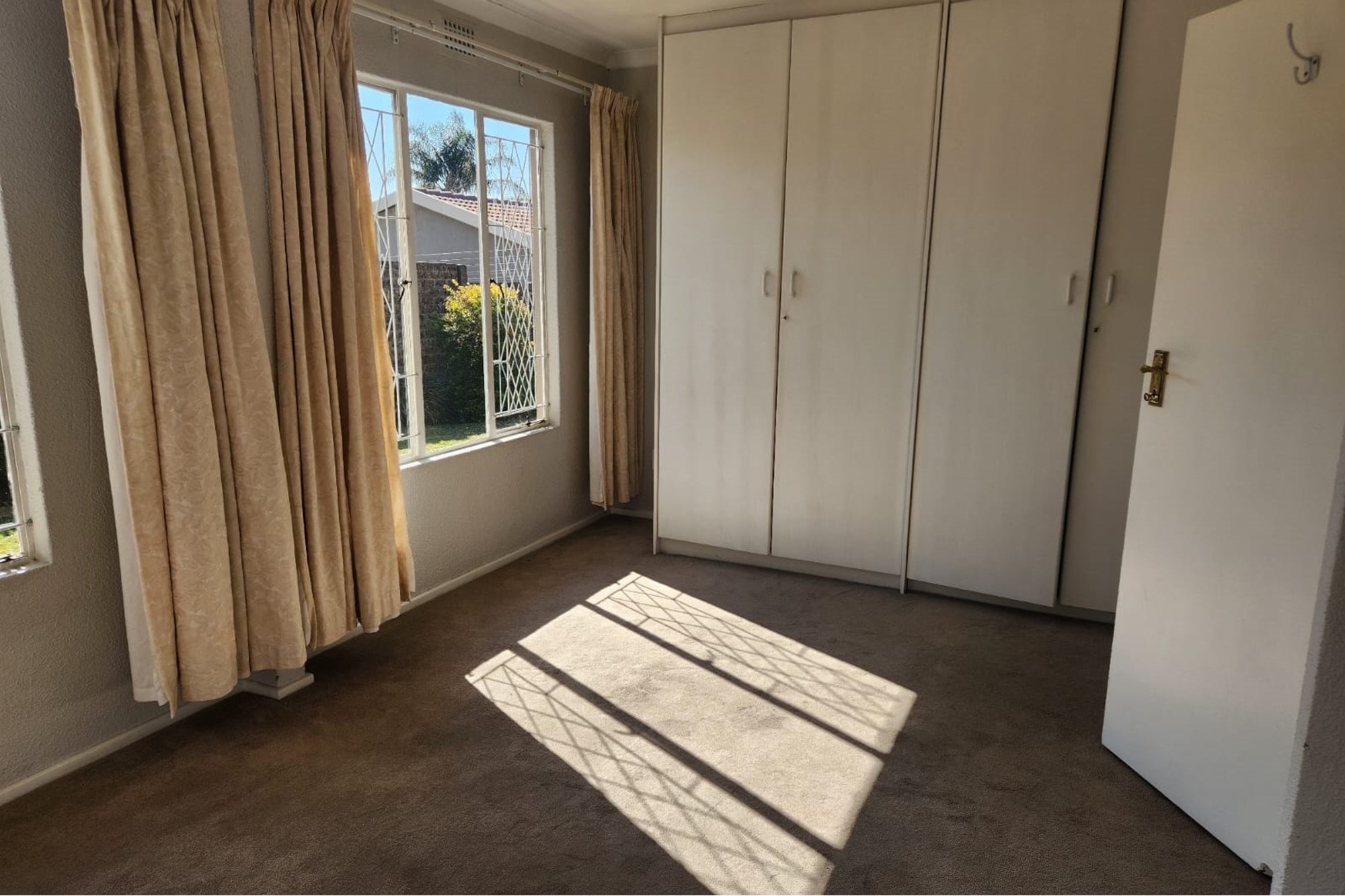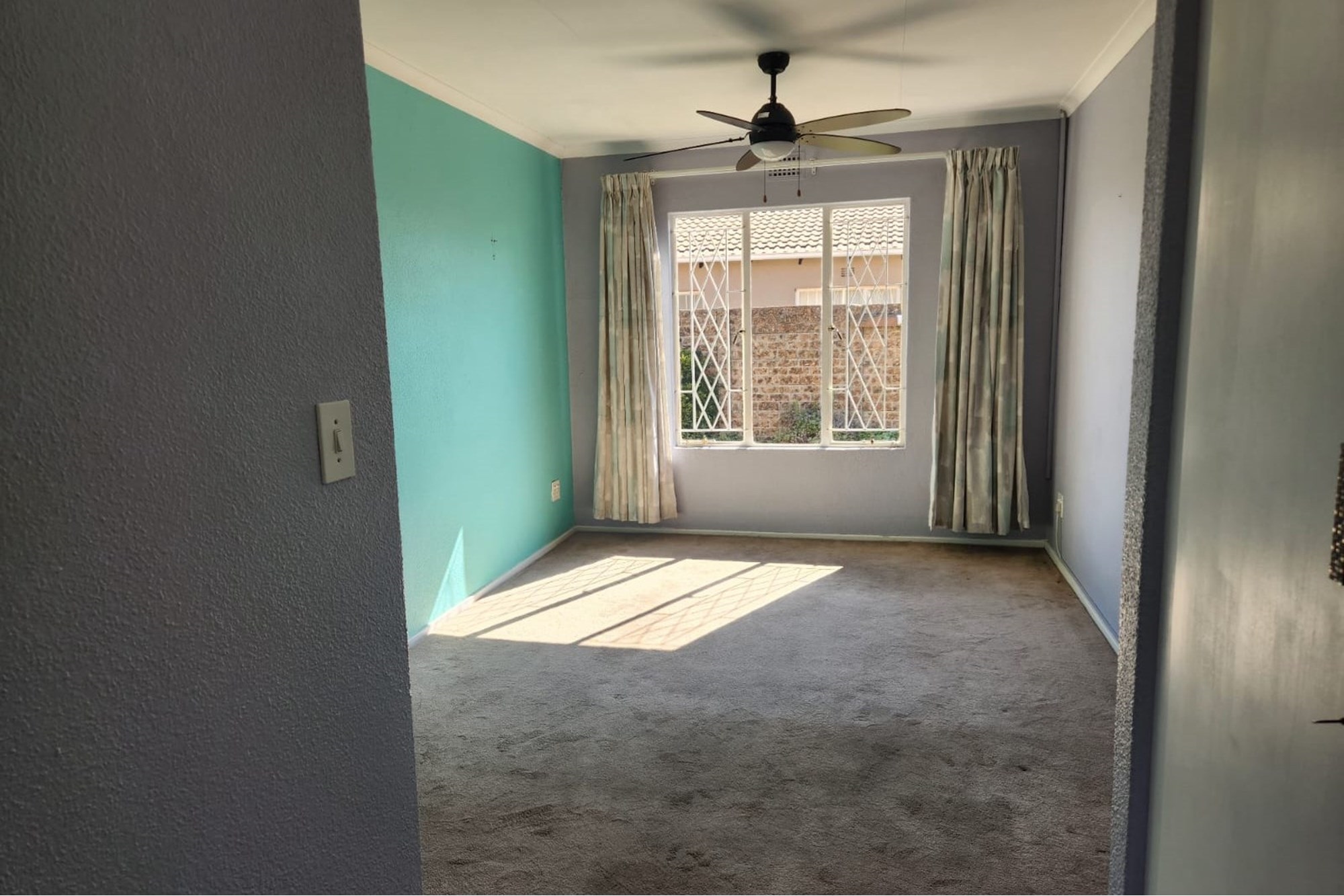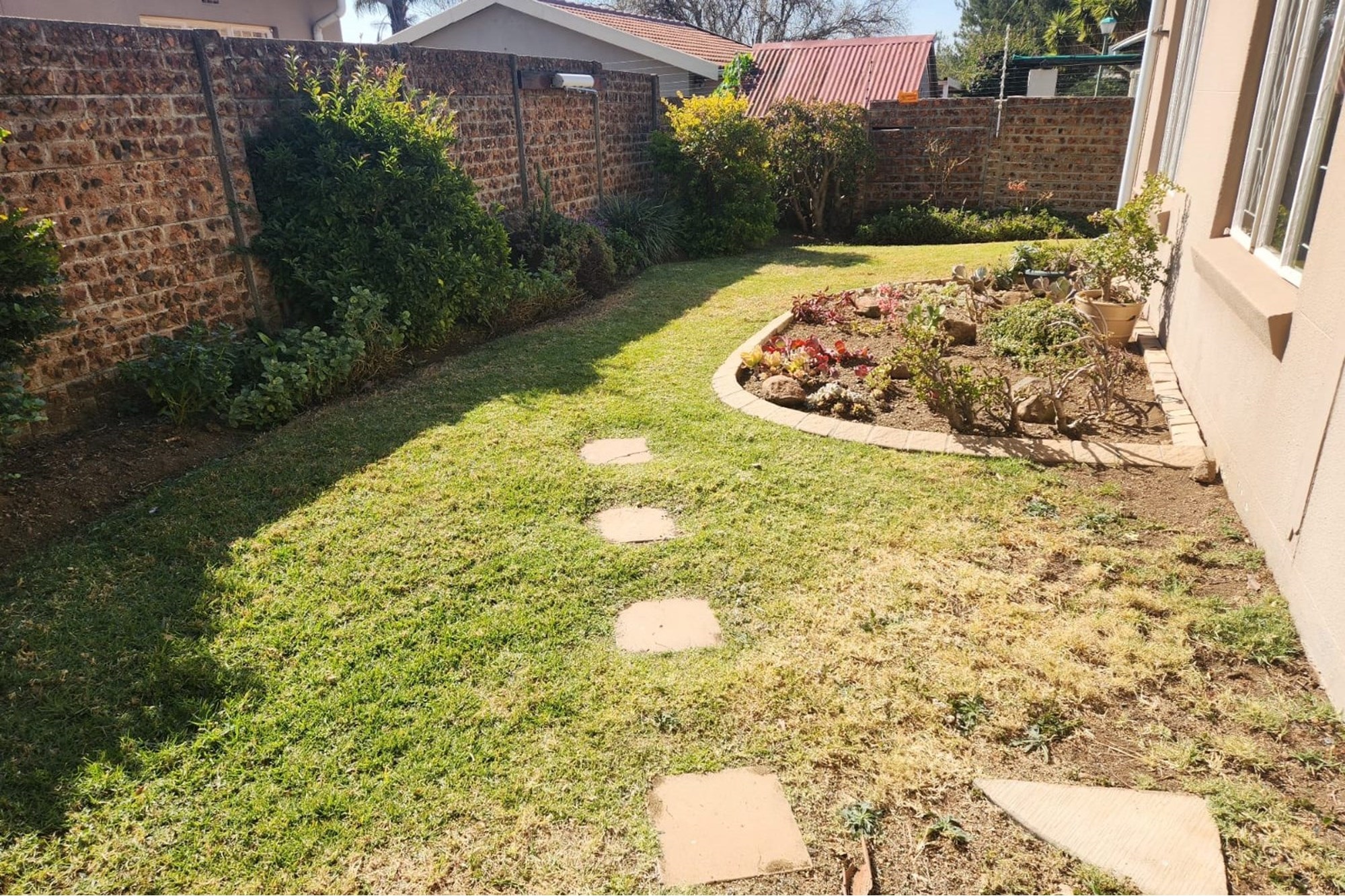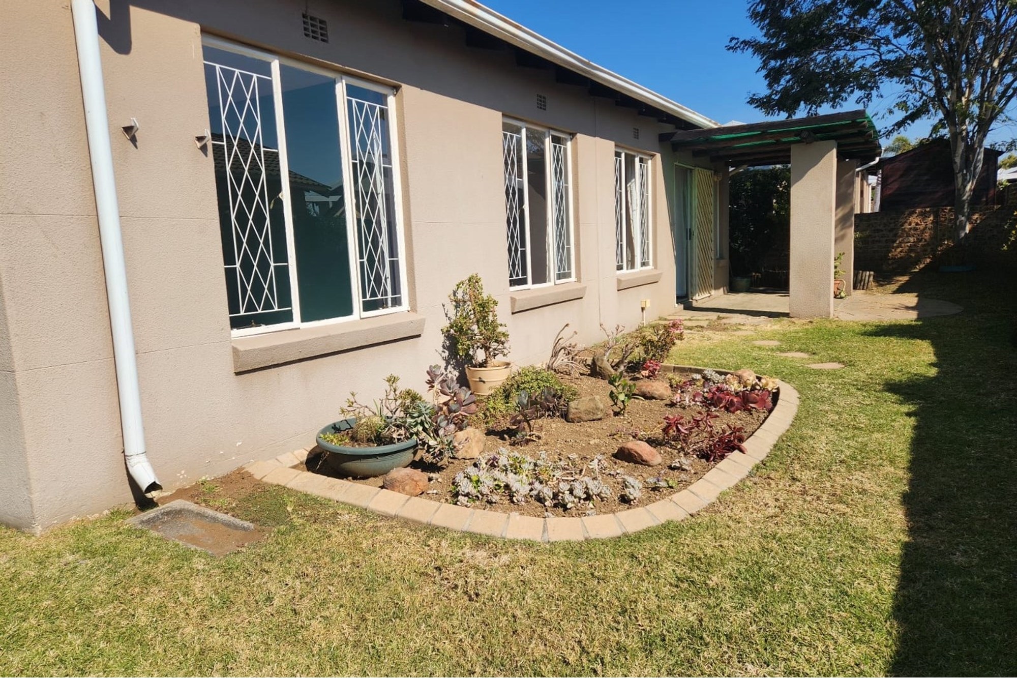 A quaint simplex set in a lovely garden setting. Front and back garden and tandem carport for two cars. This very neat home is waiting for the next family to move in and call this home. Perfect as a starter home or for a family downscaling. One large open plan living area with a lounge area overlooking the garden. Sliding doors offer access to a covered front patio. Ideal for entertaining or just enjoying the peaceful garden. The kitchen has white melamine cupboards and laminated counter tops. A free standing stove, space for the fridge and washing machine, and a large corner pantry cupboard. The two bedrooms are carpeted in a pale neutral beige colour. Plenty of white melamine cupboards. The Family bathroom has a corner bath, toilet and basin. The main bedroom has a dedicated dressing area with plenty of cupboards leading the way to the MES bathroom. This bathroom has the shower, toilet and basin. This cottagey style home is perfect for a young family. It is clean and neat and has excellent security with burglar proofing and gates on all the outside doors. The garden is big enough for children and one pet to romp around on the lawn and the complex offers a swimming pool and a braai area. If you are looking for a great lifestyle, comfort, security and peace of mind, this simplex is for you.