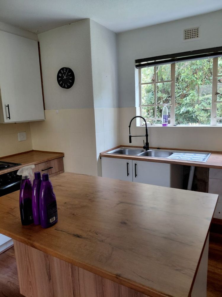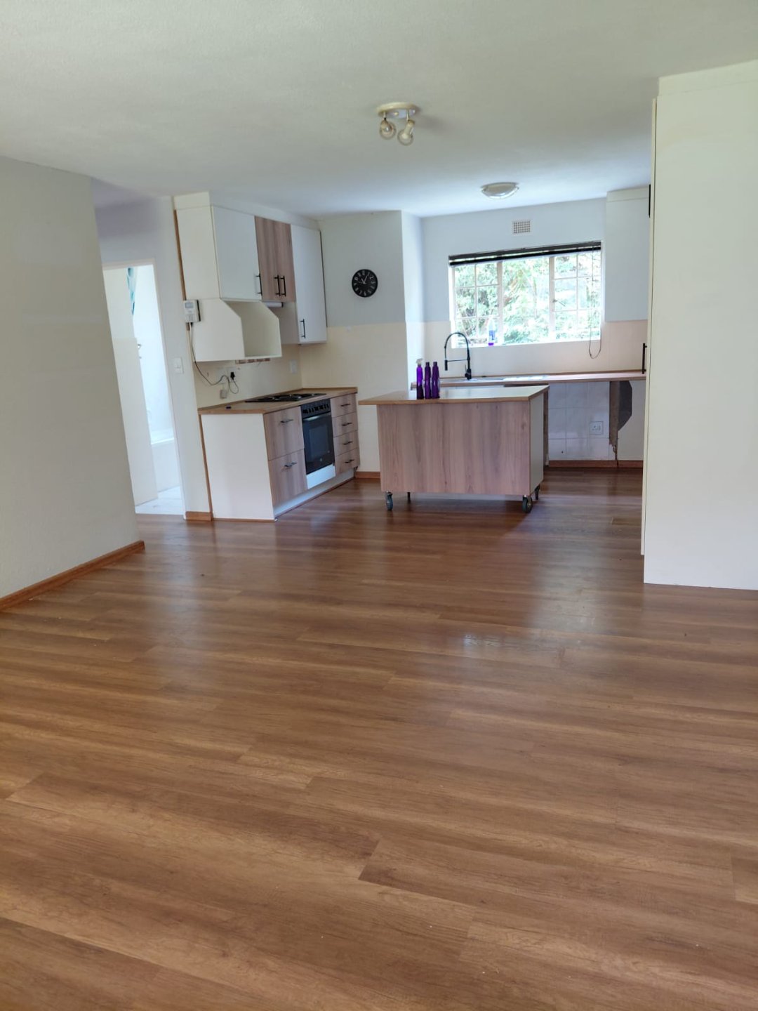 The kitchen is fitted with modern built-in cupboards, a centre island, and space for appliances.