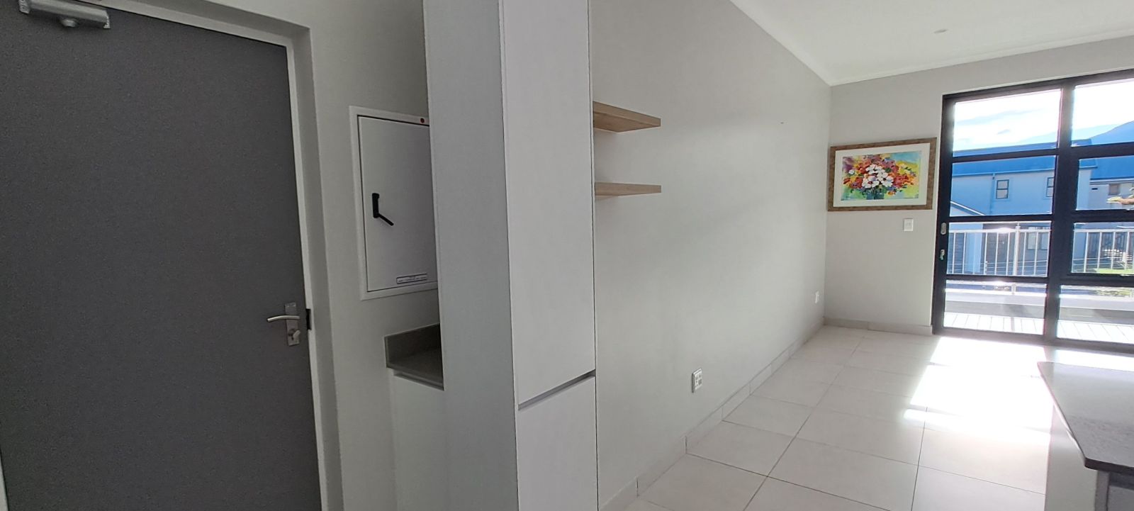 This sunny, north-facing apartment boasts a stylish open-plan kitchen and living area that flows onto a private balcony with built-in braai – perfect for enjoying breathtaking Outeniqua Mountain views.
