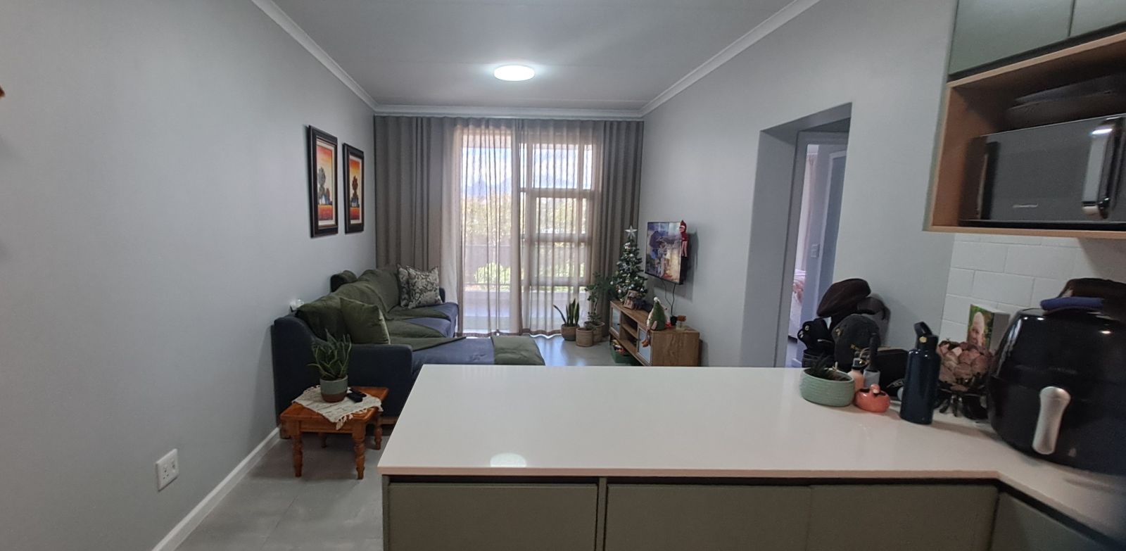 This sunny, north facing apartment boasts a stylish open plan kitchen and living area that flows onto a private balcony with built in braai, perfect for enjoying breathtaking Outeniqua Mountain views.