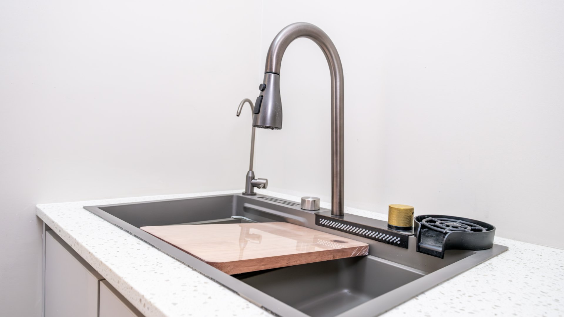 Thoughtful details set this home apart – from aesthetic lighting and unique taps to a statement multifunction kitchen sink – all chosen to create a space that’s as stylish as it is functional.