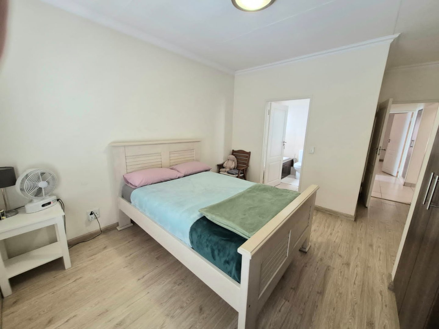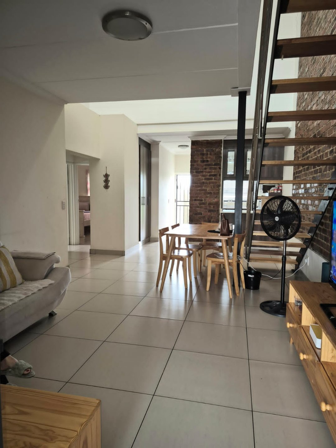 This property boasts an array of attractive features that make it stand out. The flooring consists of maintenance, while the bedrooms are adorned with elegant laminate wooden flooring, adding a touch of warmth the home, complemented by a trendy facebrick interior wall that serves as a striking feature.
