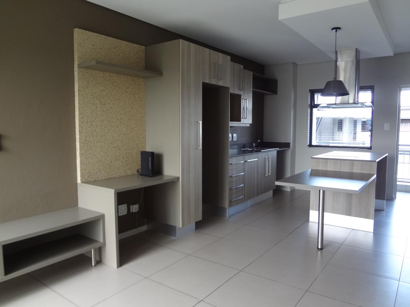 The unit is a 1 bedroom top floor unit with a balcony which has a view over Bryanston. The property has a modern, open plan kitchen, ample cupboard and counter space with a fitted dining table. The spacious living area has a built-in TV stand and workstation. The bedroom has built in cupboards with a lovely views of Bryanston . The bathroom is fitted with a good size shower.
