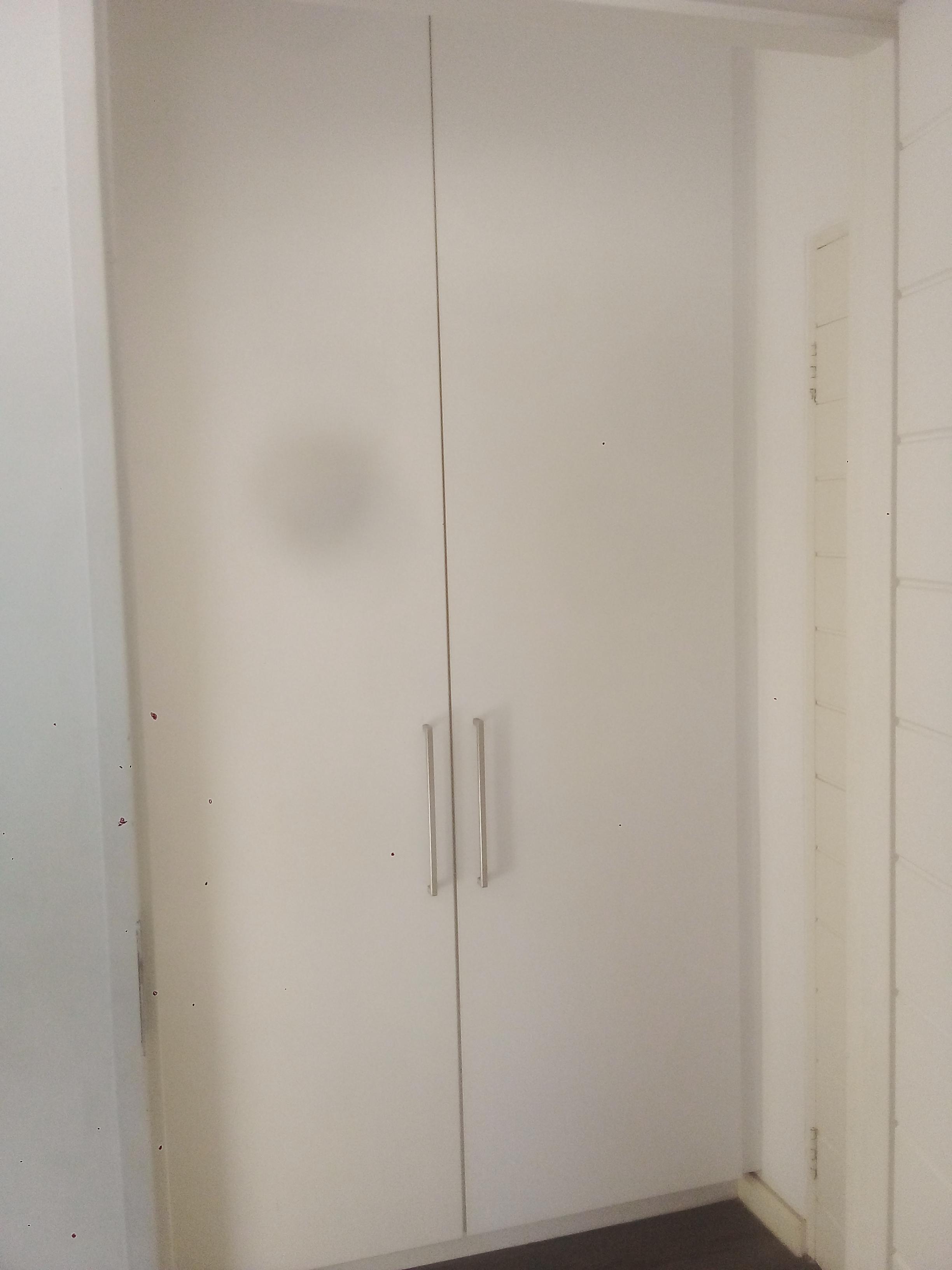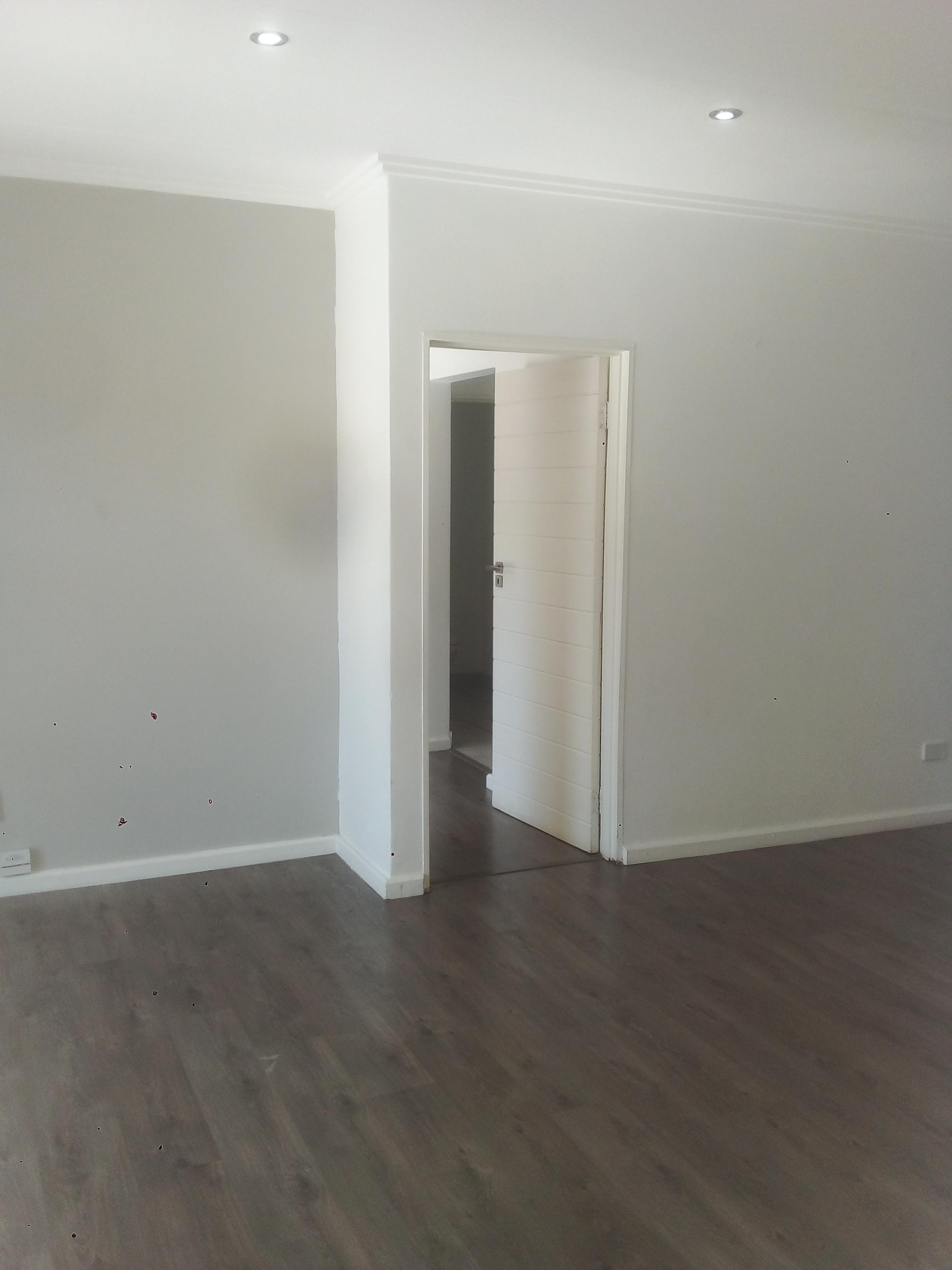The bedrooms and lounge feature laminated flooring, while the kitchen and bathroom have tiled flooring. The midsection of the apartment allows for a large L-shaped couch and a big dining room table.