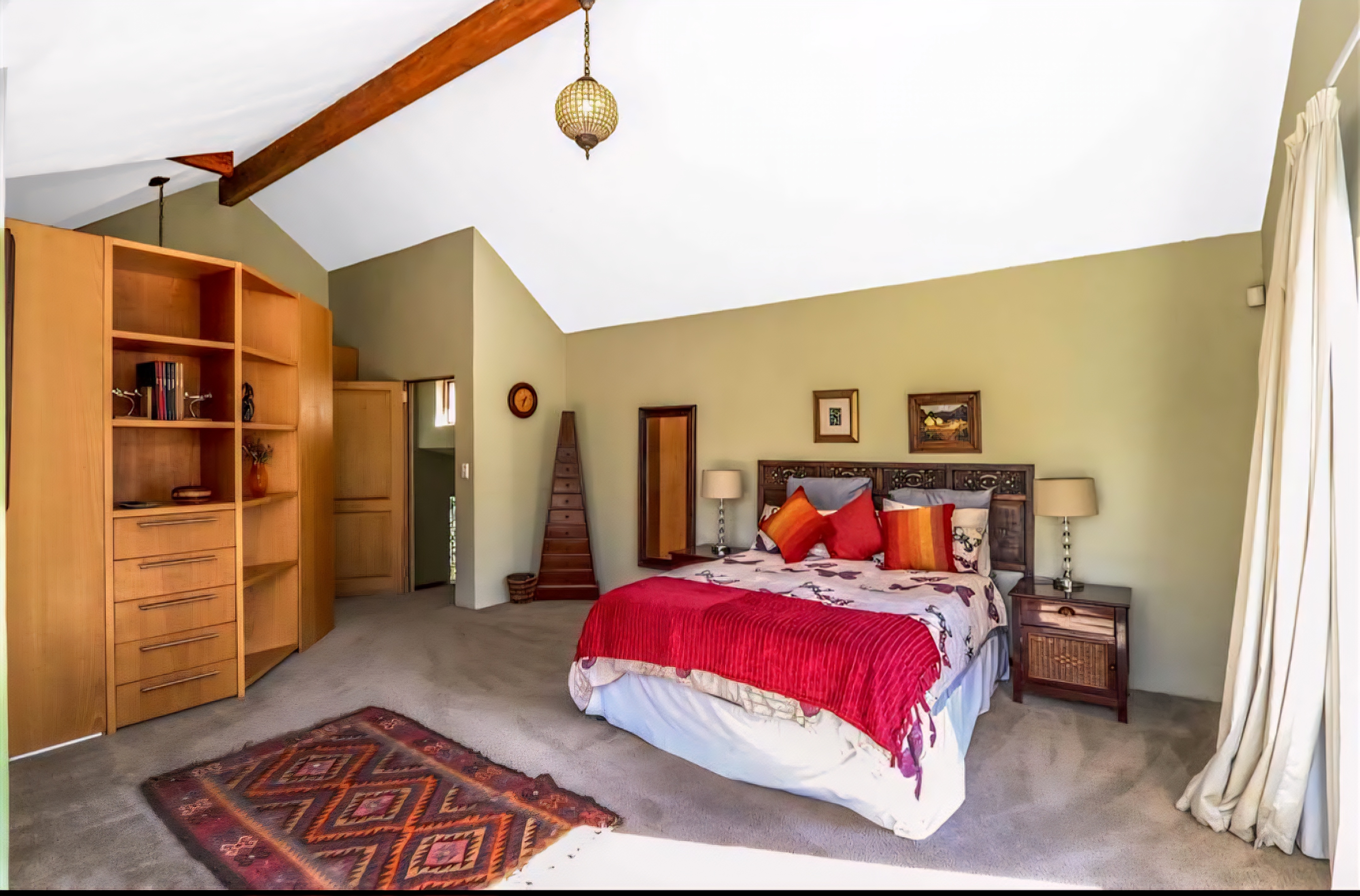 Some of the flooring in the home is solid wood, some of it, sandstone tiles, and the bedrooms are carpeted.
