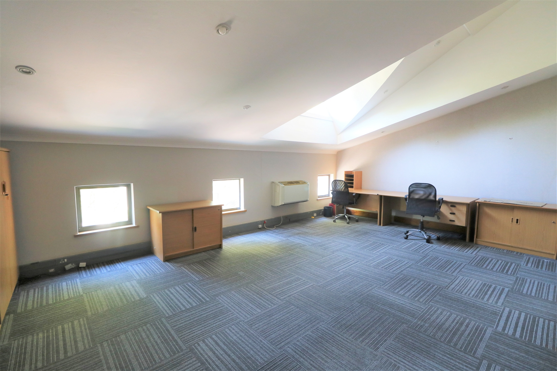 Both rooms open out onto a private, secluded patio, offering a peaceful outdoor extension of the workspace.