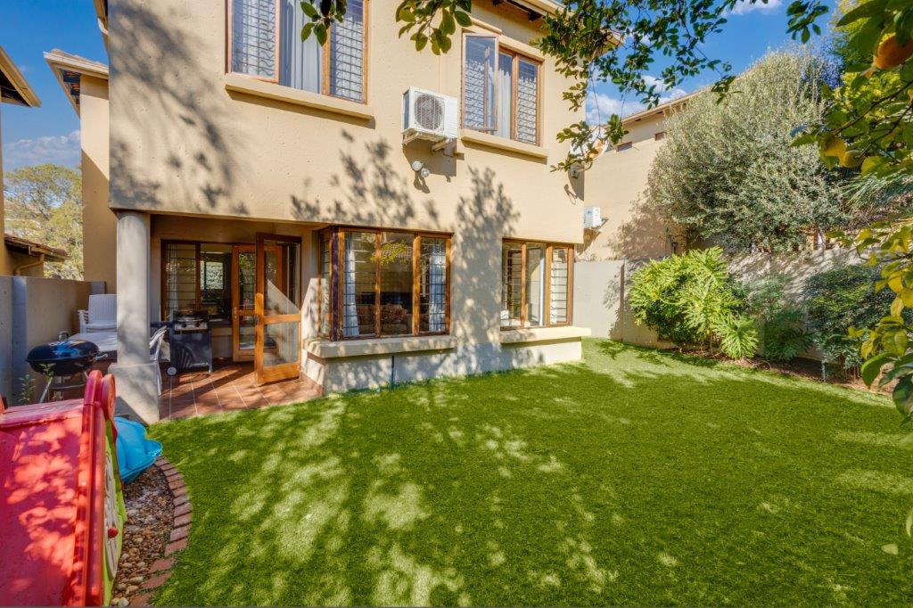 Fabulous light and bright townhouse offering the discerning buyer a luxurious lock up and go lifestyle with easy access to popular amenities and good schools. Only 10 minutes to Sandton City. It's an ideal space for children to explore, play and create lifelong memories. The entrance leads to a well appointed kitchen with ample cupboards and space for two wet appliances. The free- flowing lounge and dining area open up to a covered patio and private garden an ideal spot for relaxing with a book or enjoying a casual meal with friends and familly. Upstairs you have 3 sized bedrooms, 2 baths main en-suite. Double garage and 24/7 security.