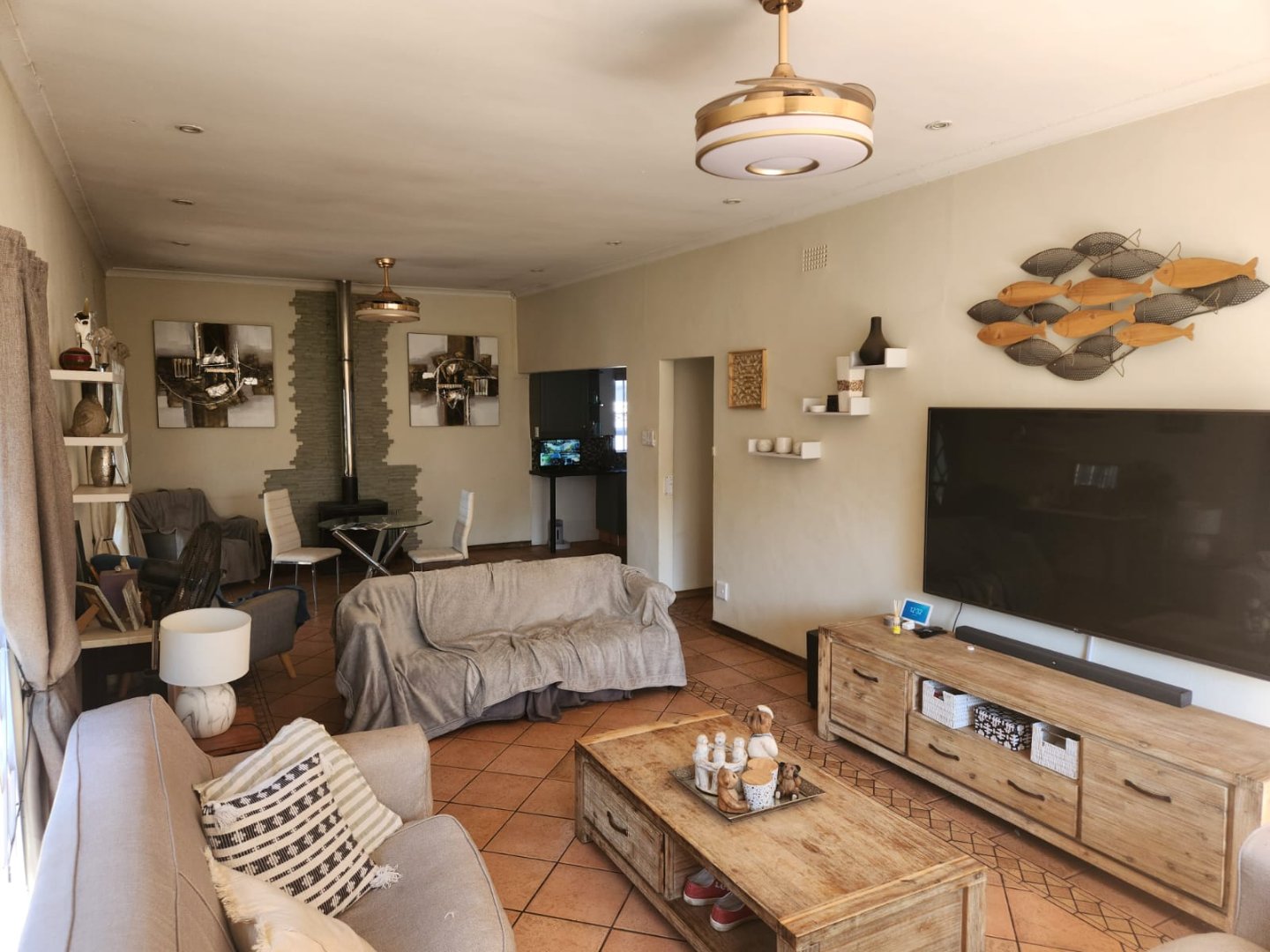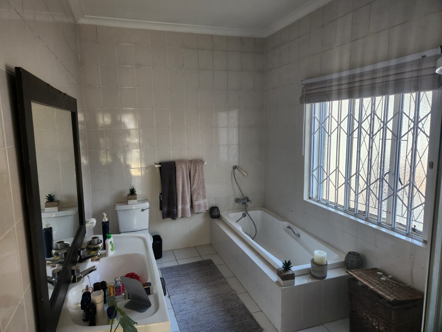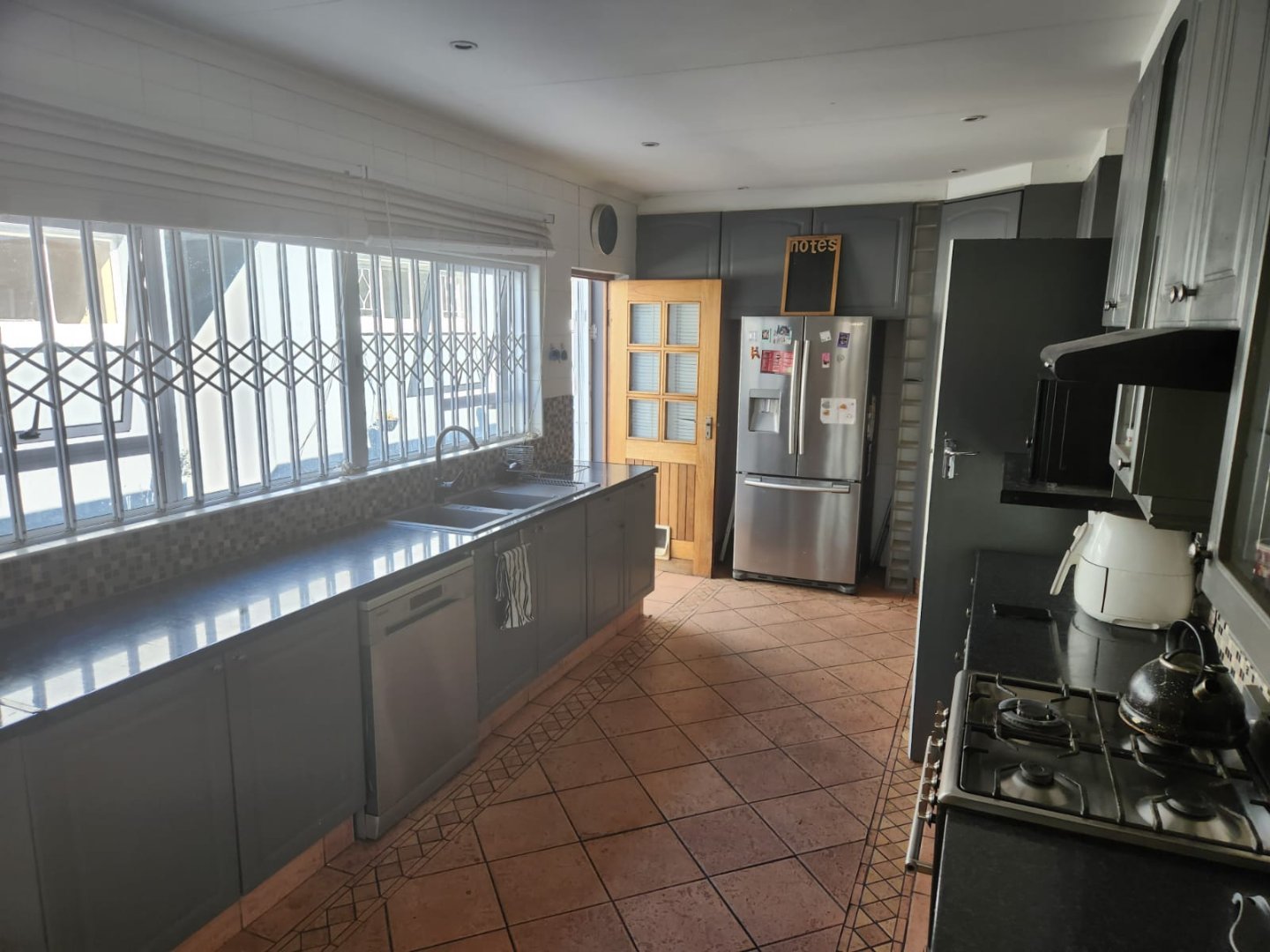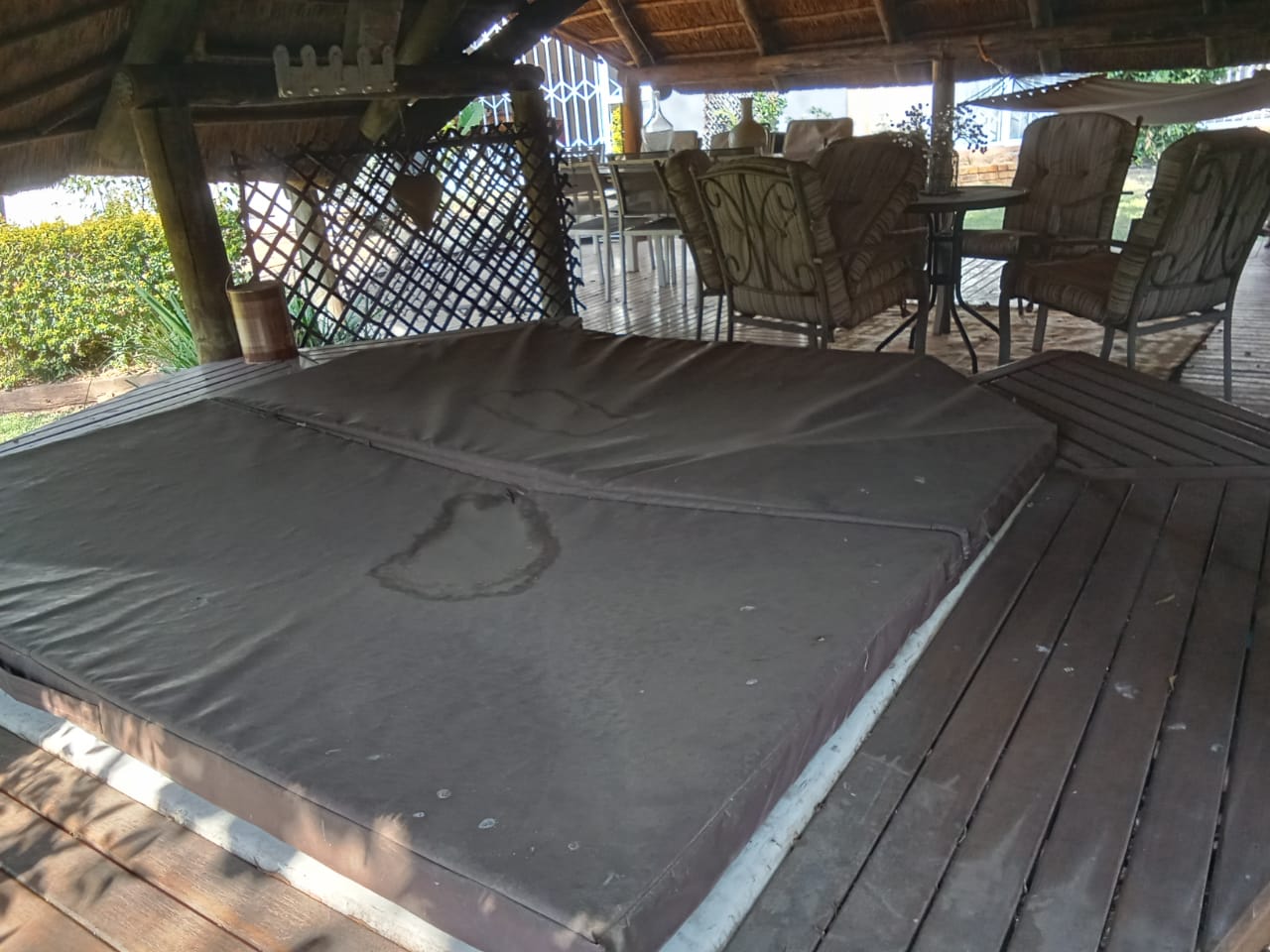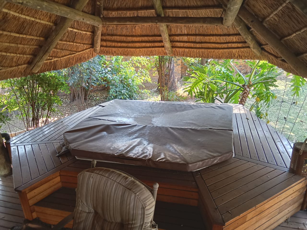 This beautiful home offers four bedrooms and two bathrooms, with the main bedroom has an en-suite bathroom. The spacious, open plan, kitchen offers plenty cupboards with enough storage. The kitchen offers enough work space for the aspiring chef. The kitchen leads into the dining room and lounge. The dining room and lounge is the perfect place to enjoy the benefit of the modern wood burning fireplace. The home offers a sunroom that can be used as a multipurpose area for relaxation or exercise. The home offers a large cottage that consists of a kitchen, lounge, bedroom and bathroom with an attached laundry. The lapa with decking and attached Jacuzzi is an entertainer’s delight. The home offers ample parking with a double automated garage and attached double carport. If more parking is required there is secure off street parking. For the caravan l lover the home offers a second entrance with a caravan bay with shade netting to house a caravan. Security is not a problem as the home offers automated gate access on both entrances as well as trellie doors throughout the home. The home offers Harvey tile roof.