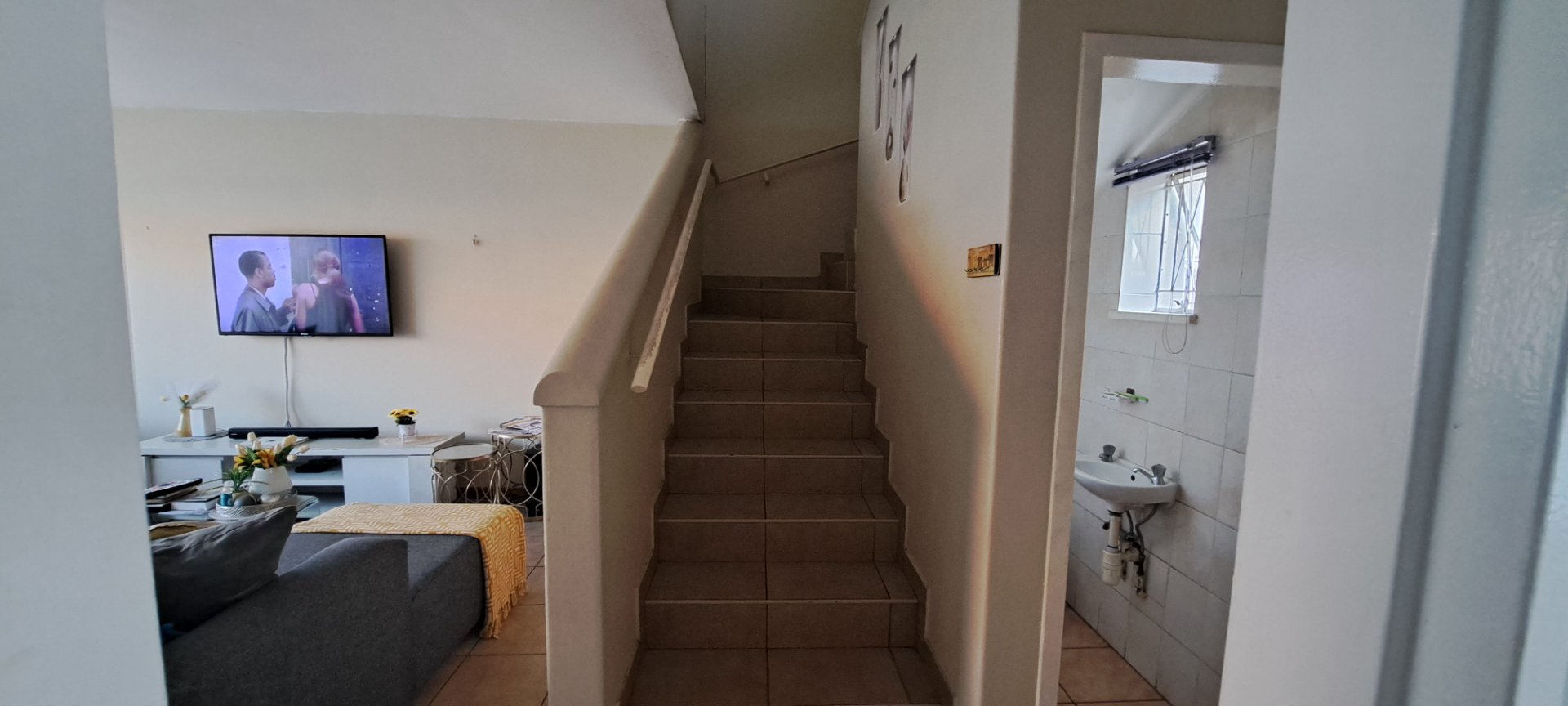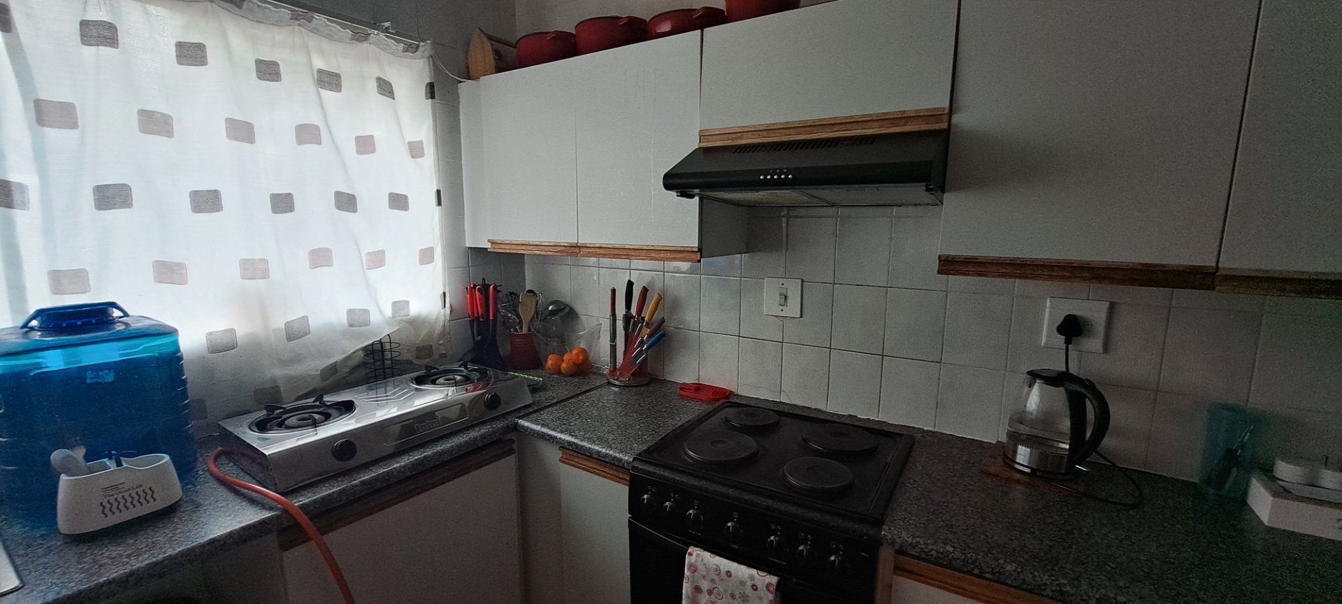 It features two bedrooms, one full bathroom, a guest toilet, a separate kitchen, and a spacious lounge and dining area that opens onto a private enclosed garden. Additional conveniences include prepaid electricity, a covered carport, and a prime location within walking distance of all local shops.