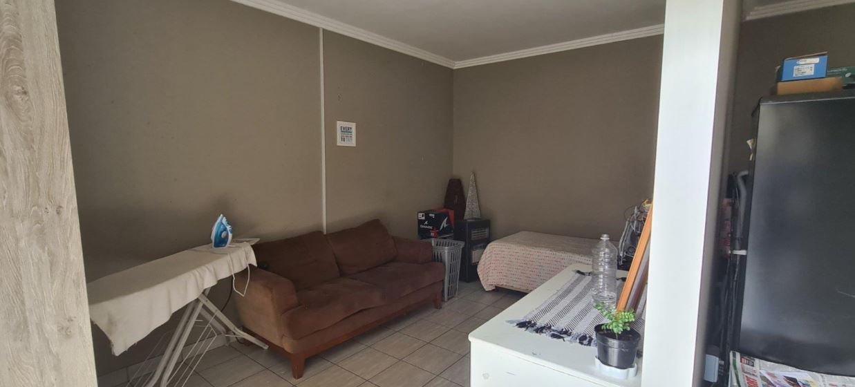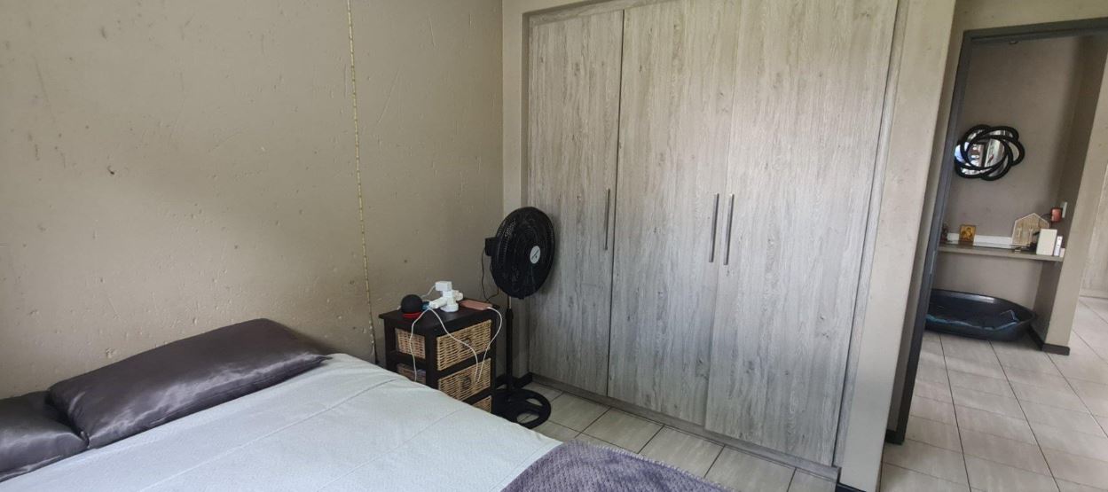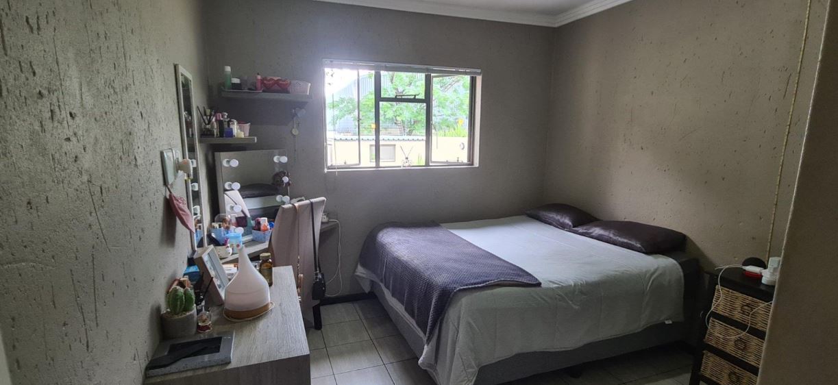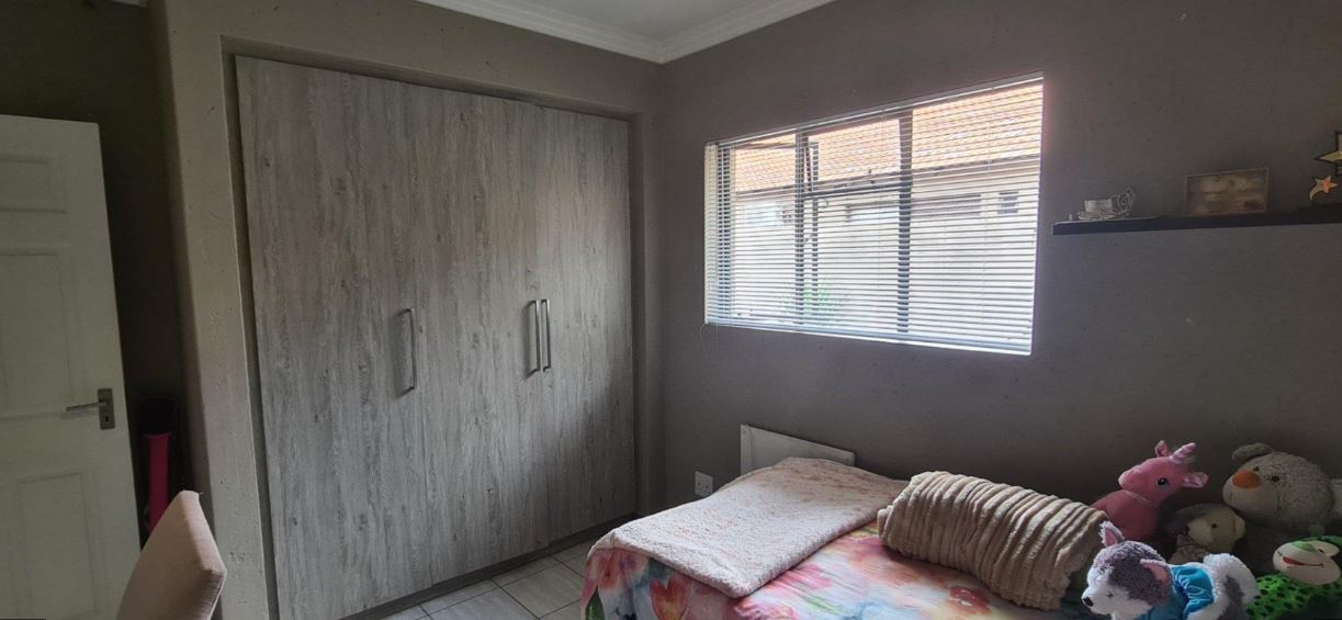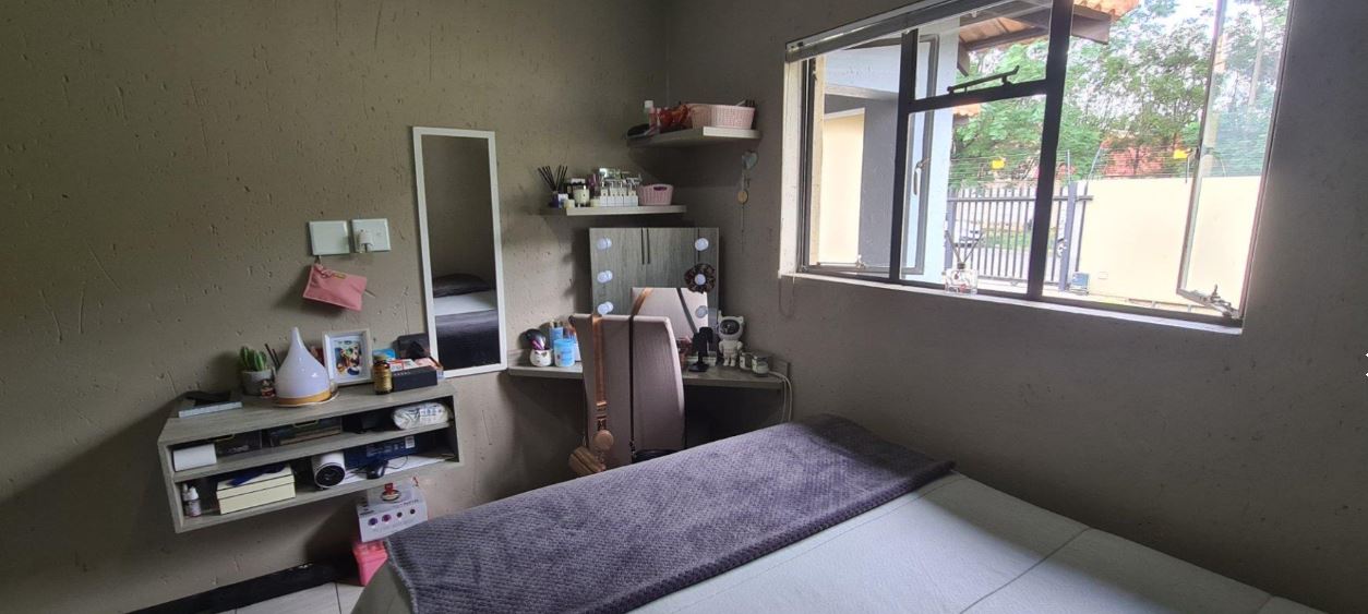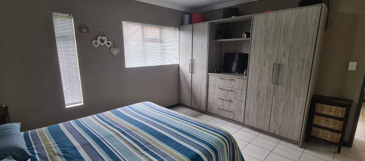 The kitchen is a chef's dream, featuring beautiful quartz countertops, ample cupboards, space for three appliances, a gas hob, stove, and extractor fan! The main bedroom offers tiled floors, built-in cupboards, and air conditioning, plus a tiled ensuite bathroom! Two additional bedrooms, also tiled and with built-in cupboards, share a modern family bathroom! A covered, enclosed patio with blinds extends from the lounge, creating an ideal space for entertaining, while the garden features a built-in braai and a splash pool for those hot summer days! A double garage has been cleverly converted to include a laundry room and spare room, while still offering ample driveway parking, plus a storage room! Security is paramount with electric fencing, beams, an alarm, cameras, and a motorized gate!