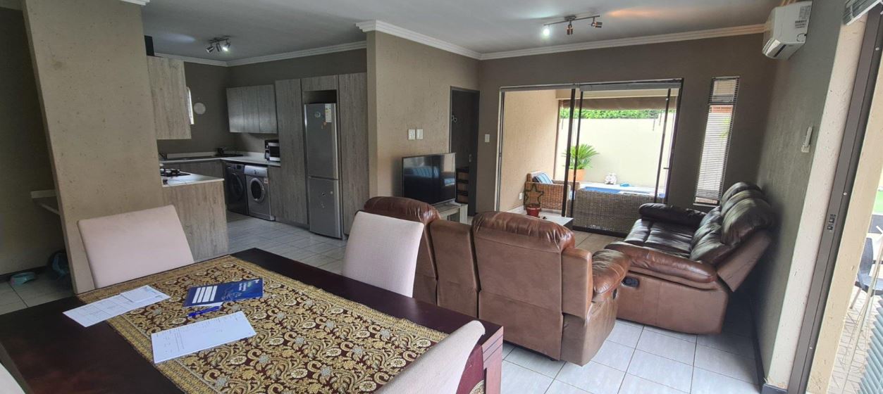 This stunning, move-in-ready family home in Edenvale, situated on a manageable 496 sqm stand, is perfect for those seeking a garden without the burden of extensive upkeep! This modern residence boasts an open-plan tiled lounge with air conditioning, seamlessly flowing into the tiled dining area!