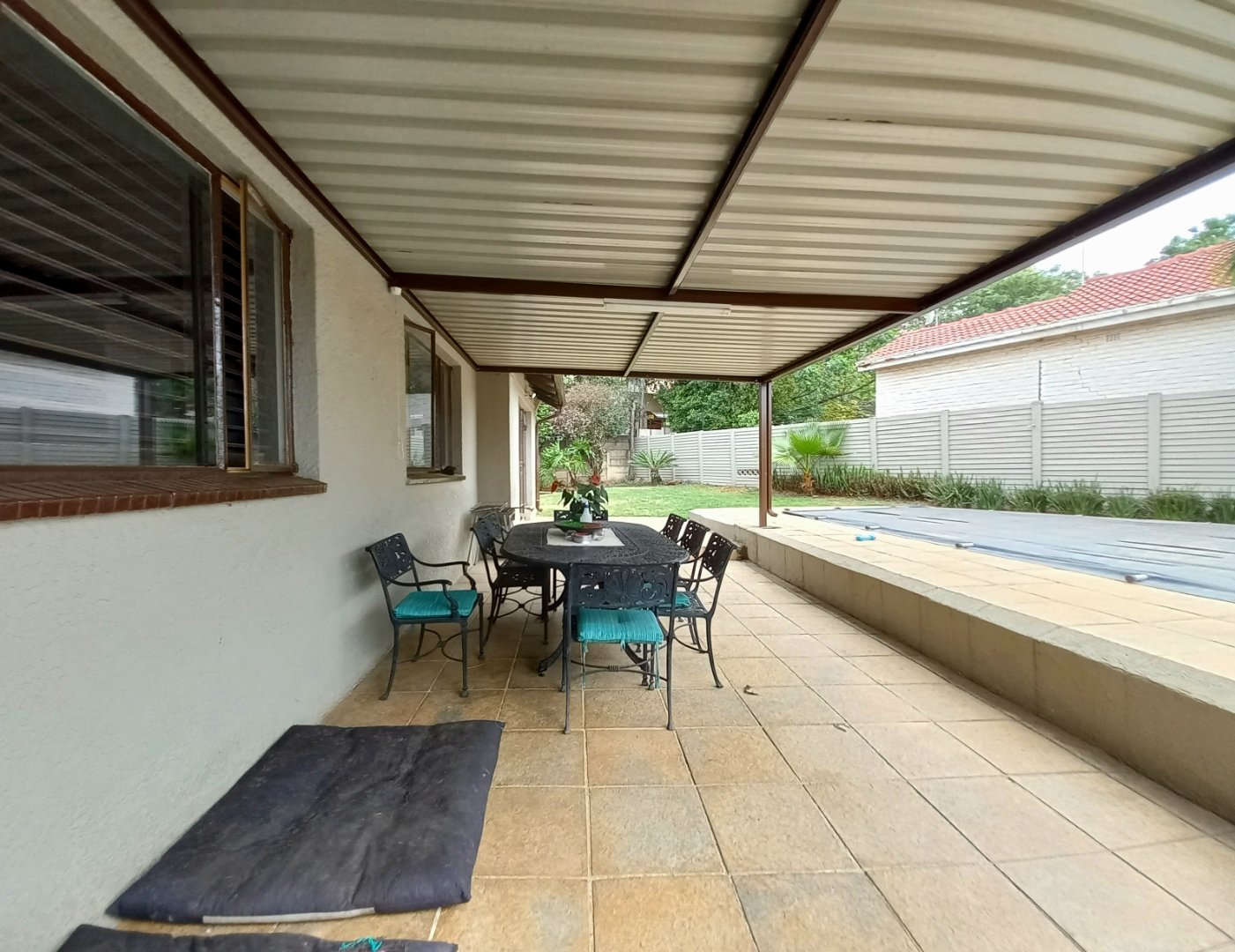 Entertainment patio overlooking the garden and swimming pool