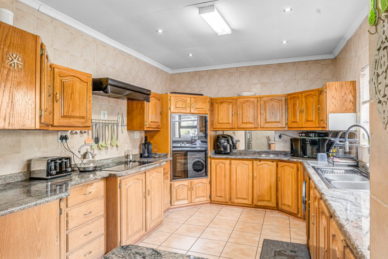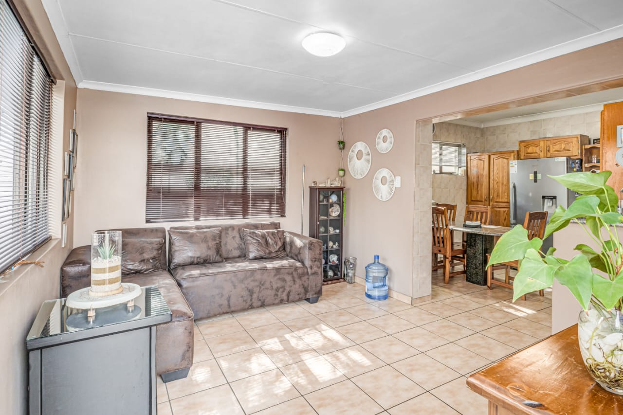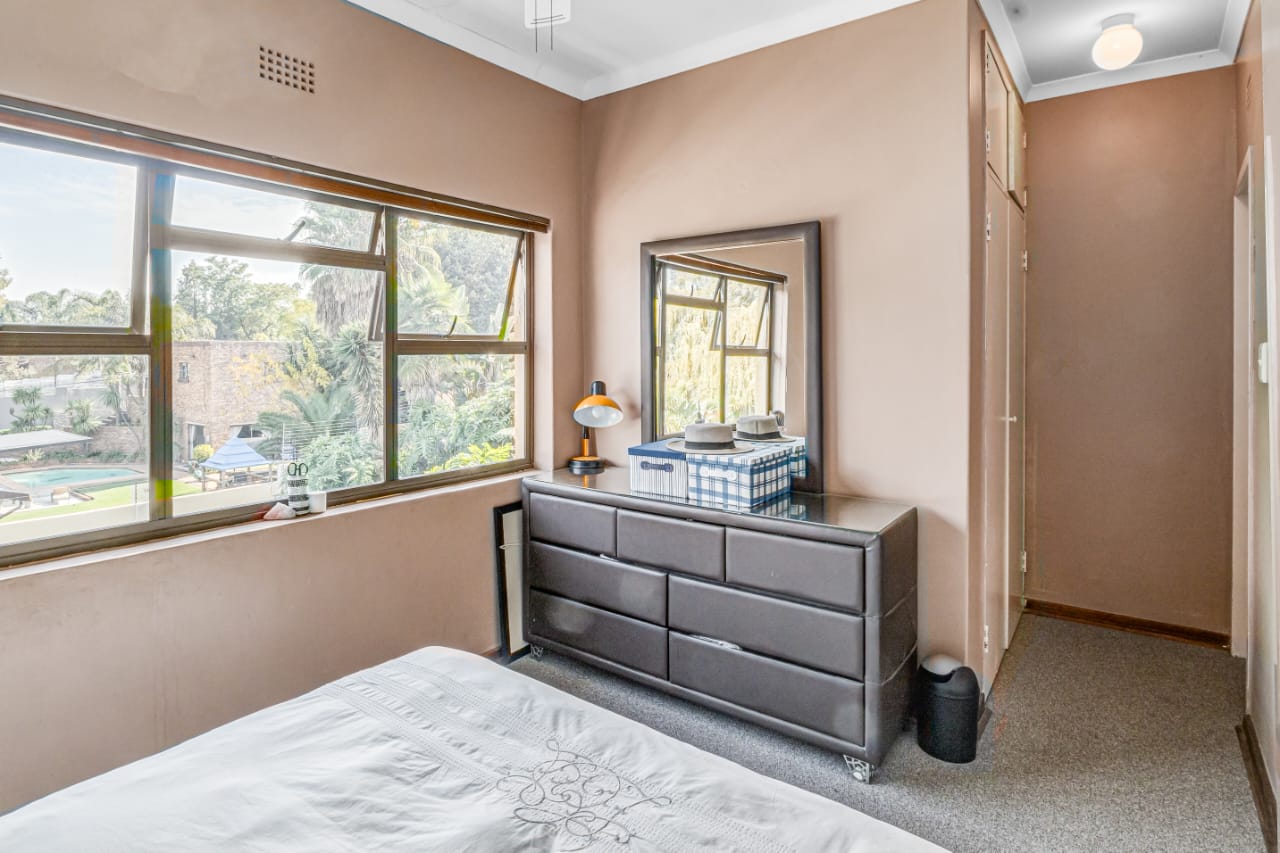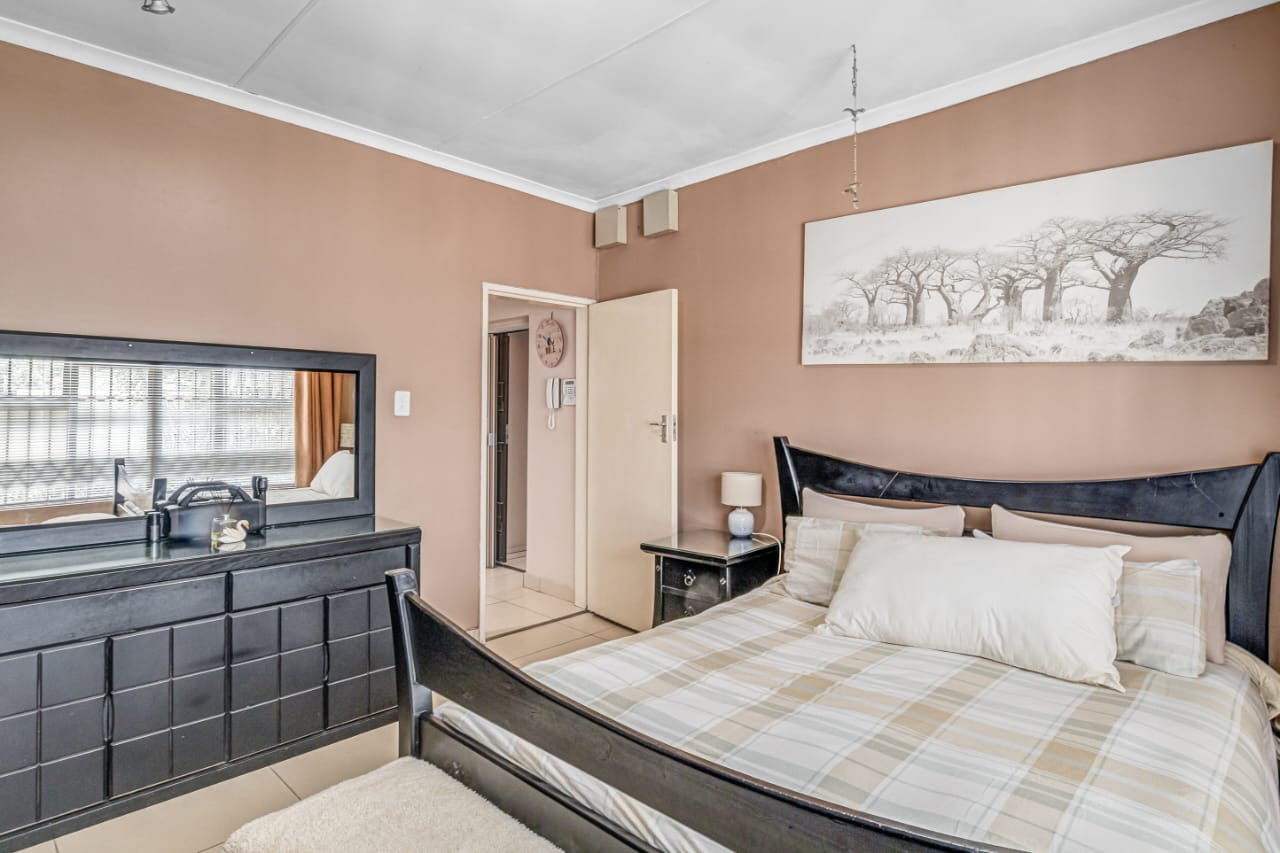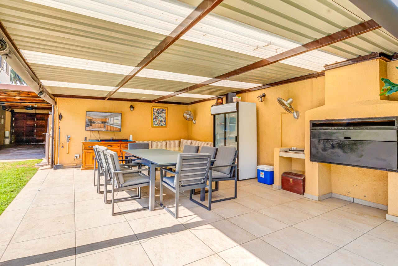 This gem offers you 3 bedrooms, 2 bathrooms (main-en-suite). On entering this unique house you have the first tiled lounge (with a gas fireplace) which is currently used as an office that also boasts a balcony and an extra room which could serve as a study. Moving on up the stairs you have the first bedroom plus a full bathroom. Another few stairs and you have the main bedroom with bathroom en-suite and a third bedroom. This home also boasts a second lounge with an outside private patio. This lounge leads into the kitchen that offers granite tops, breakfast nook and a super sunroom which opens out onto the serene and beautiful garden, pool and an enclosed braai area, an absolute entertainers delight!