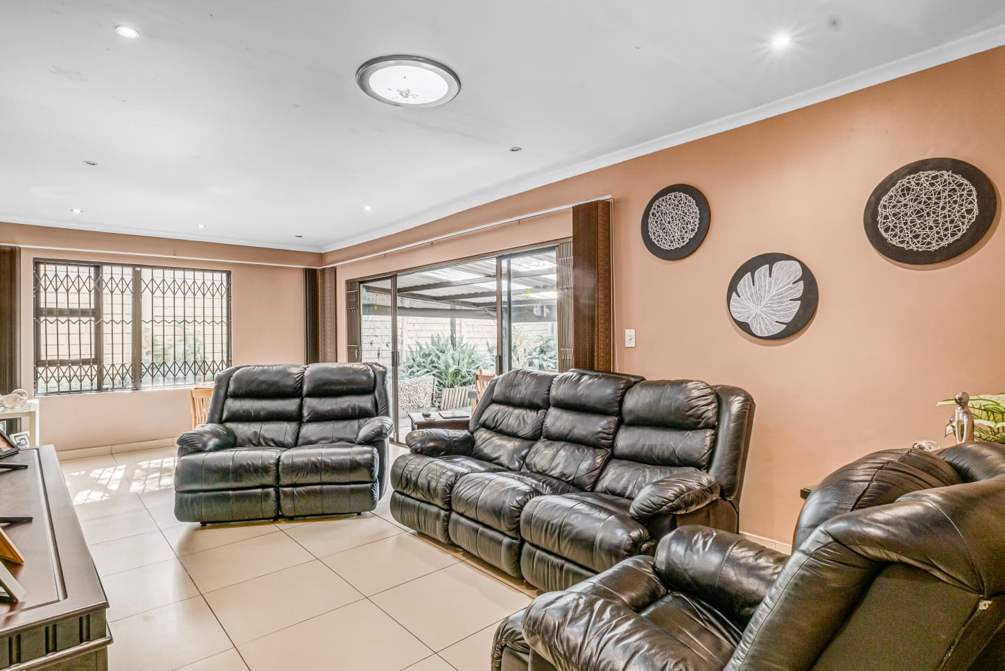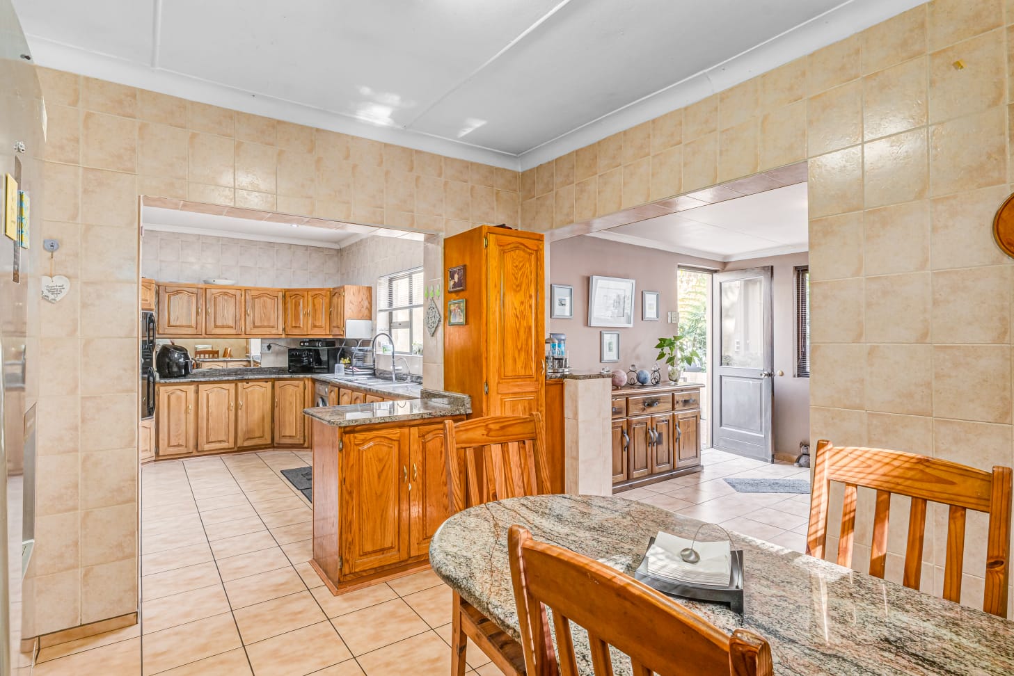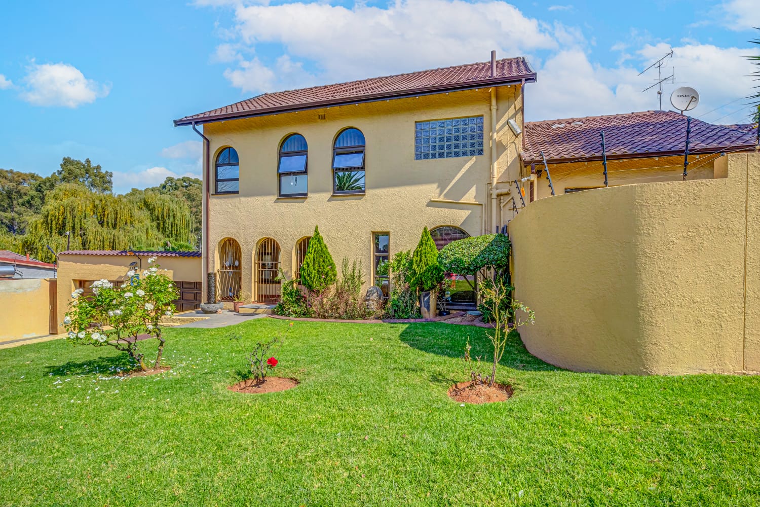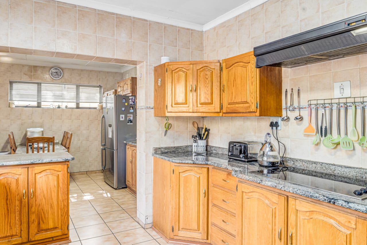 This gem offers you 3 bedrooms, 2 bathrooms (main-en-suite). On entering this unique house you have the first tiled lounge (with a gas fireplace) which is currently used as an office that also boasts a balcony and an extra room which could serve as a study. Moving on up the stairs you have the first bedroom plus a full bathroom. Another few stairs and you have the main bedroom with bathroom en-suite and a third bedroom. This home also boasts a second lounge with an outside private patio. This lounge leads into the kitchen that offers granite tops, breakfast nook and a super sunroom which opens out onto the serene and beautiful garden, pool and an enclosed braai area, an absolute entertainers delight!