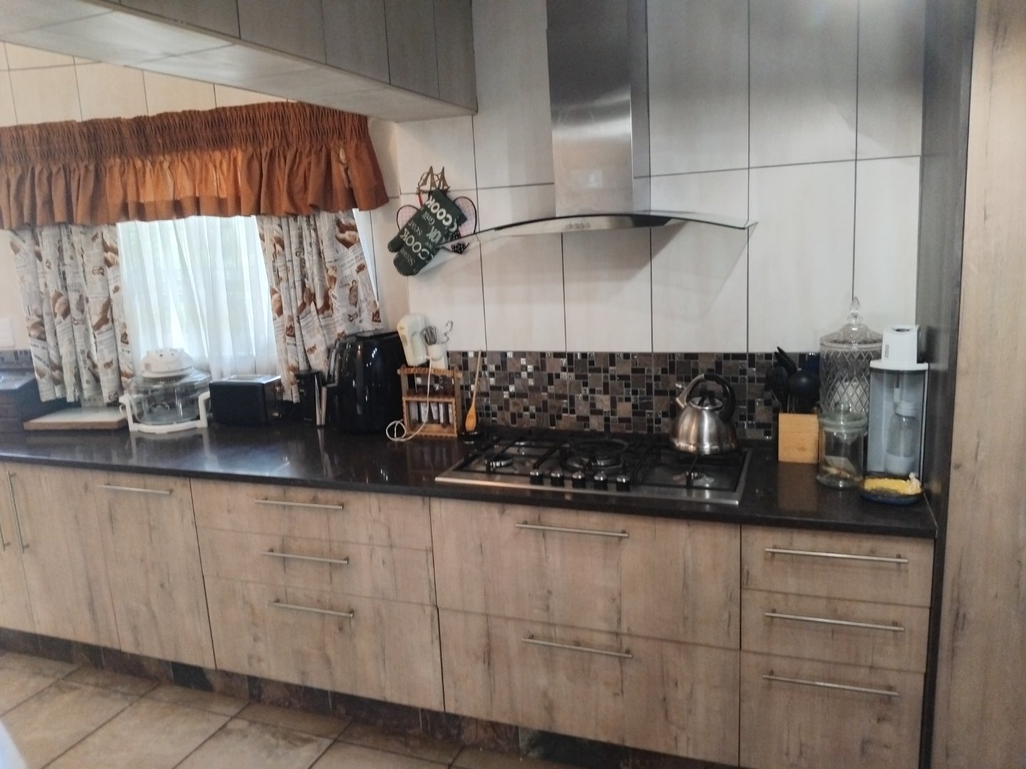 This spacious and well-maintained 4-bedroom home offers everything a family could need. Featuring tiled flooring throughout, the home boasts a welcoming lounge, a TV room, and a separate dining area. The kitchen is designed for convenience with granite countertops, ample cupboard space, and gas plates with double ovens. A breakfast nook adds to its charm.