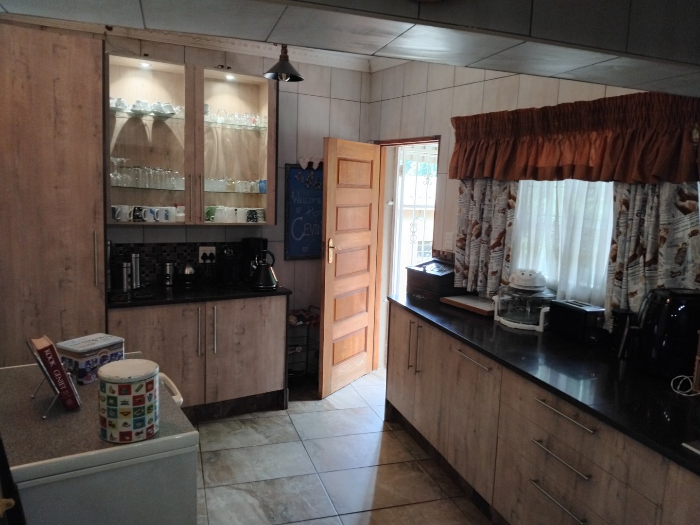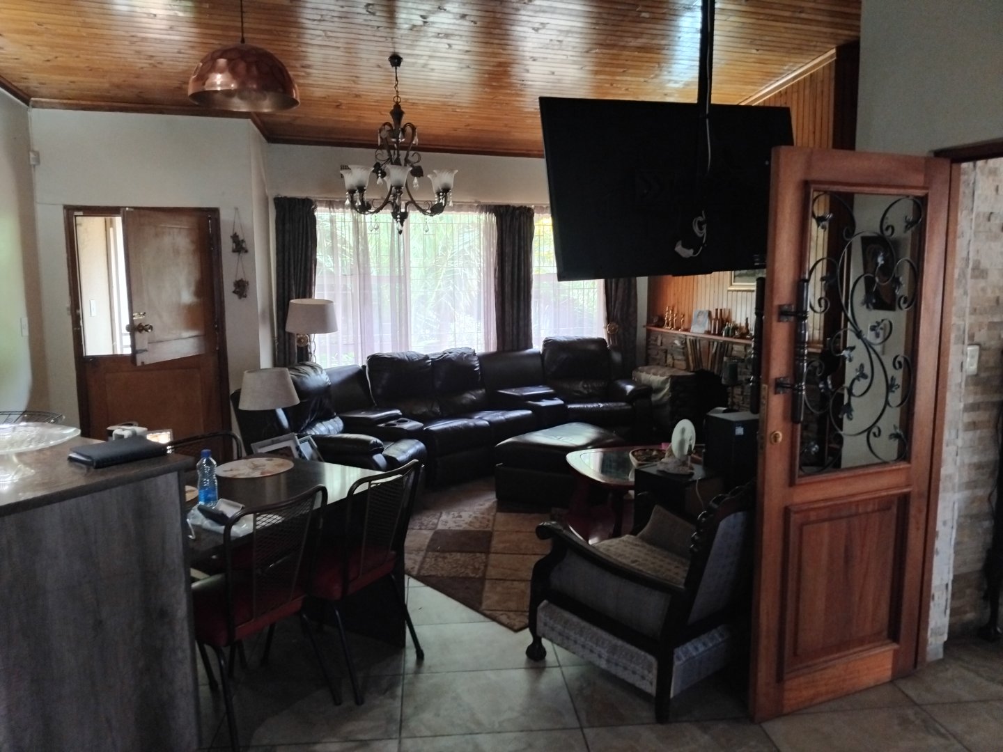The property includes two bathrooms, with the main bedroom offering an en-suite. Outdoor entertainment is well catered for with a lapa, a built-in braai area, and a sparkling pool. Additional features include a granny flat, a double garage, and three carports, ensuring ample parking. Security is top-notch with an alarm system and beams for added peace of mind. Don't miss out on this fantastic home—contact us today to arrange a viewing!