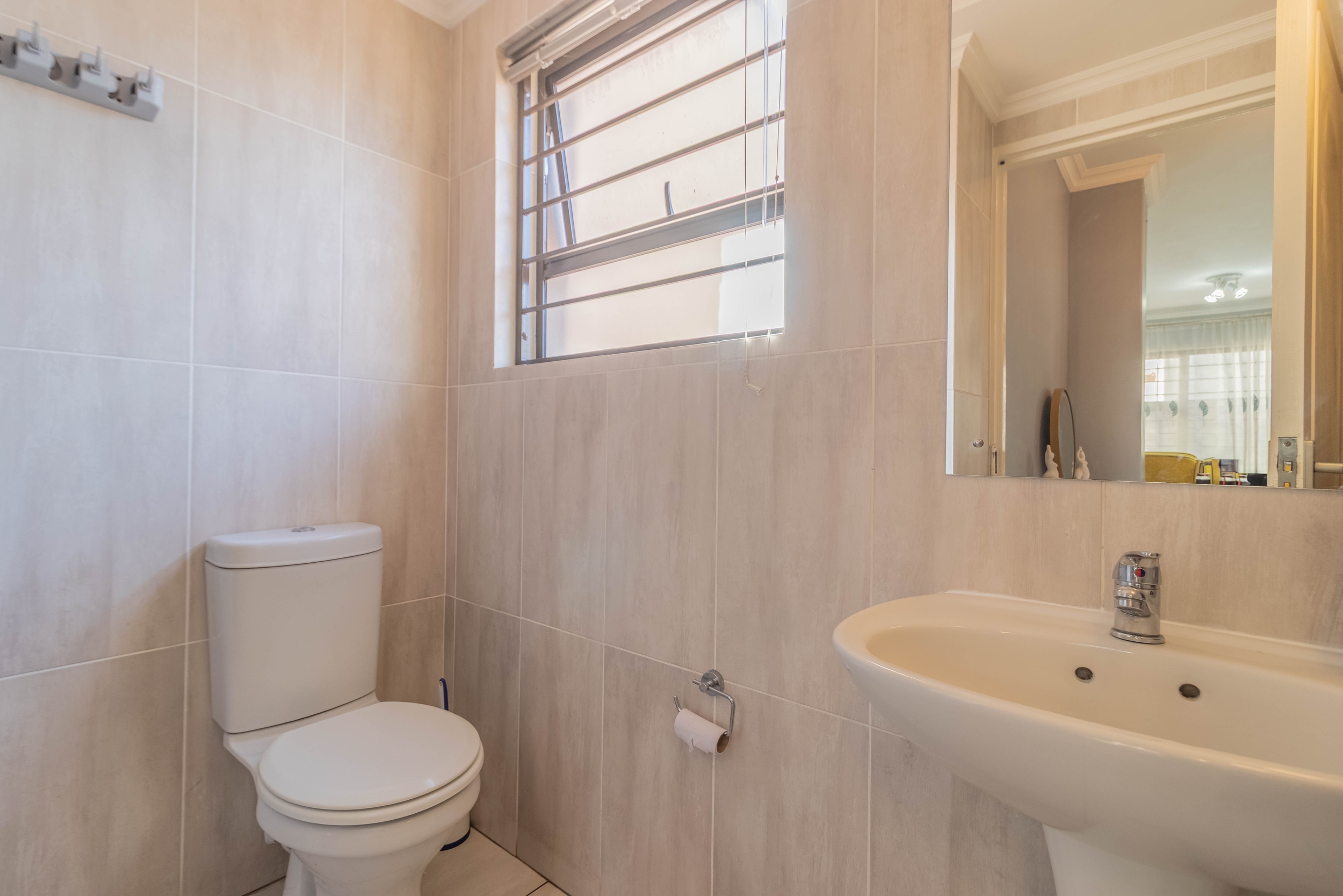 Explore this charming 3-bedroom, 2.5-bathroom duplex, situated in a peaceful and secure complex comprising only four units. All bedrooms are conveniently located on the upper level, featuring a generous main bedroom with an en-suite bathroom, along with a full family bathroom. The ground floor offers a separate kitchen equipped with a gas stove and gas geyser, leading to a bright open-plan dining and lounge area, ideal for contemporary living.