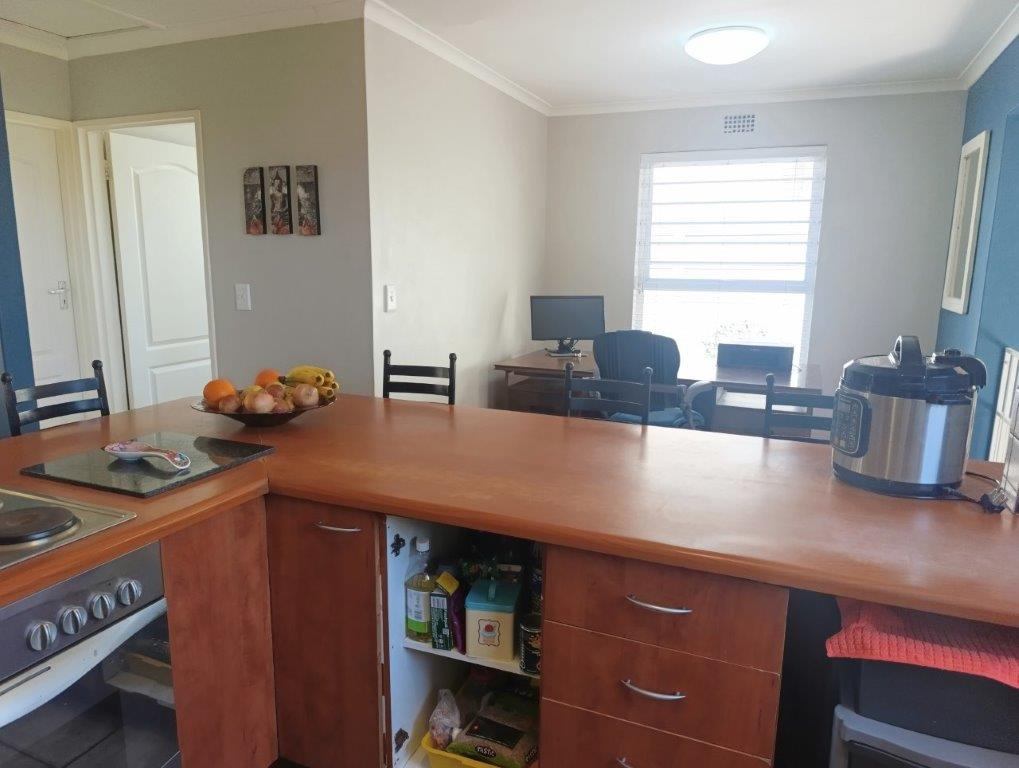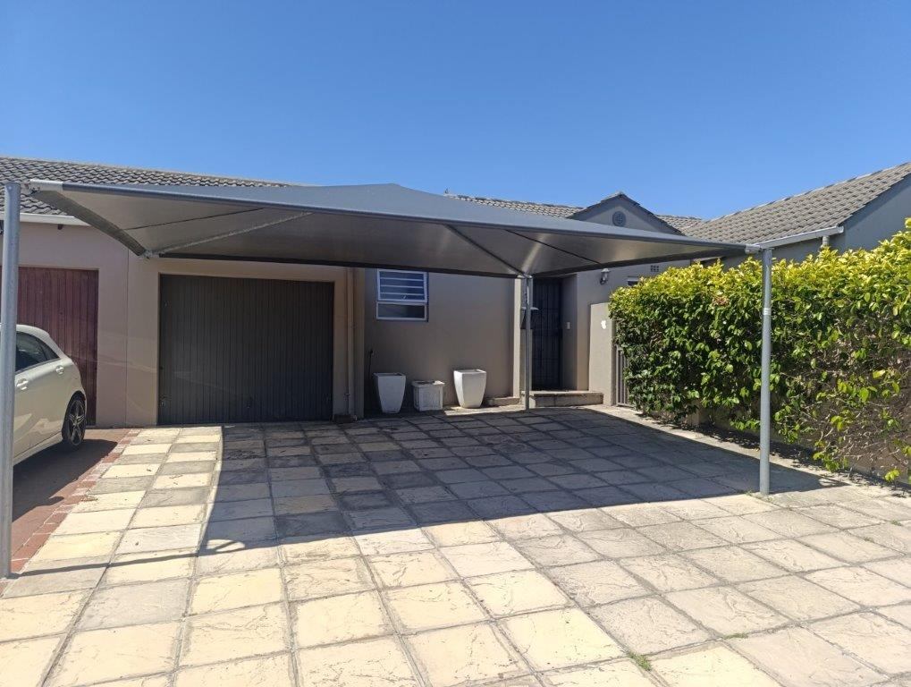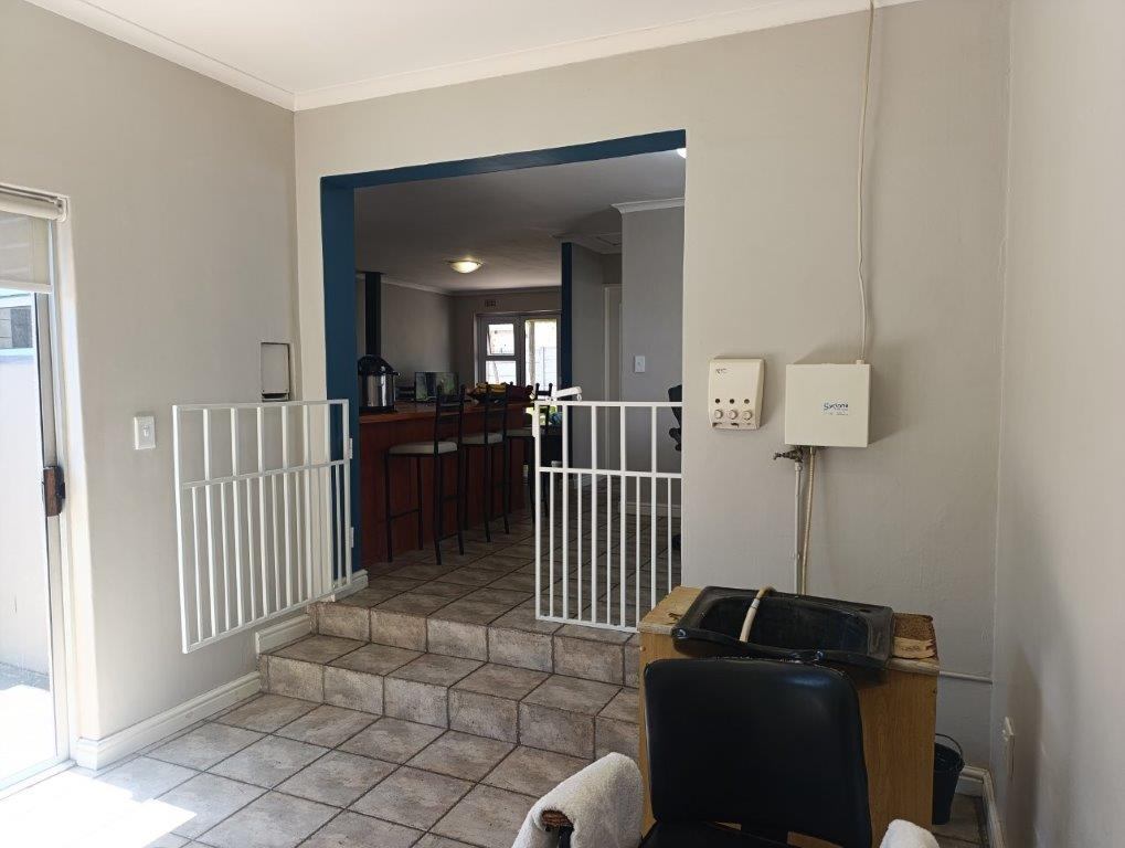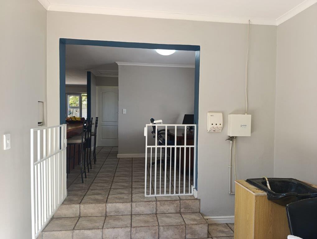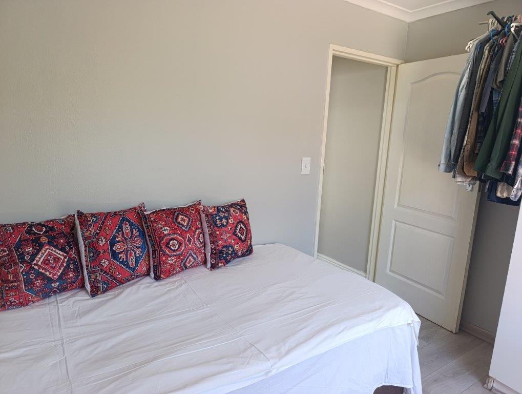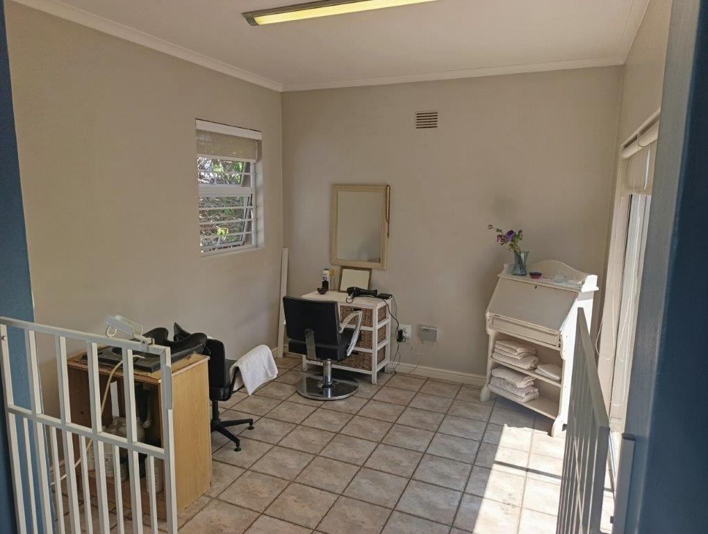 The main bedroom features an en-suite bathroom and air-conditioning for added comfort. A second bedroom, guest bathroom, and a dedicated home office provide flexibility and practical living. All windows have been upgraded to aluminium, and burglar bars offer peace of mind.