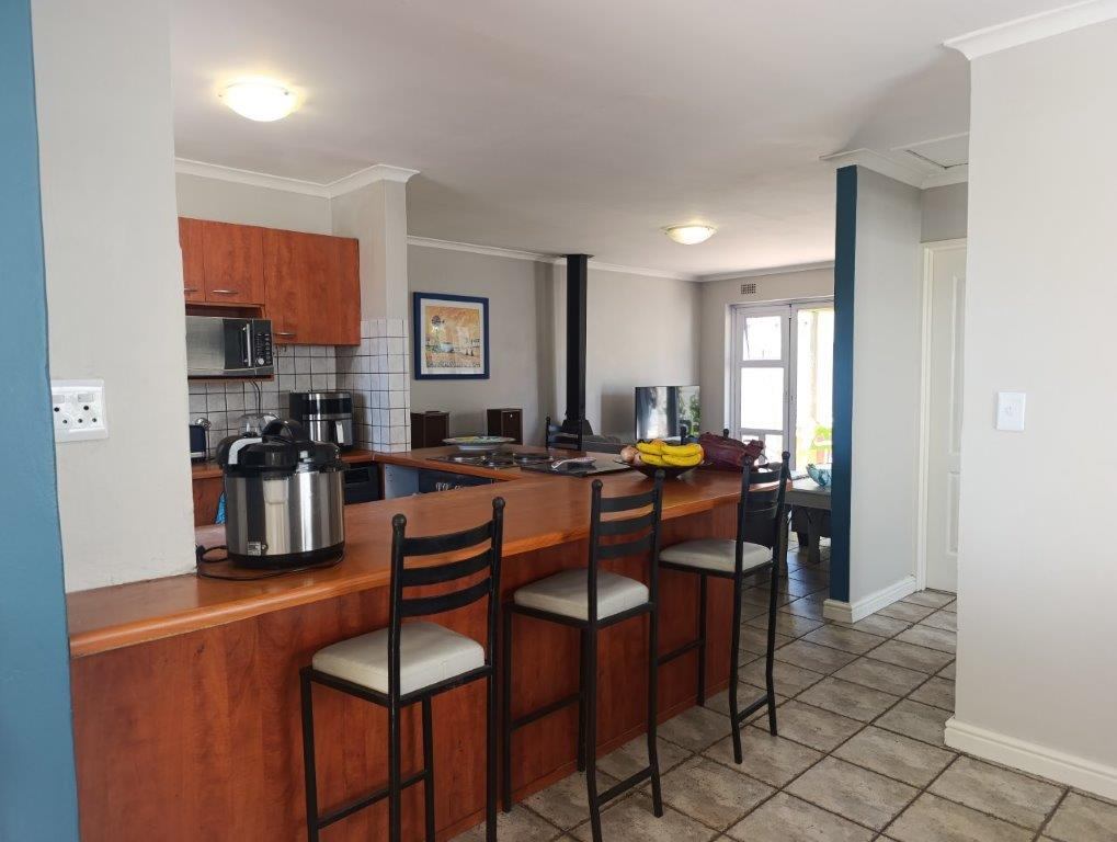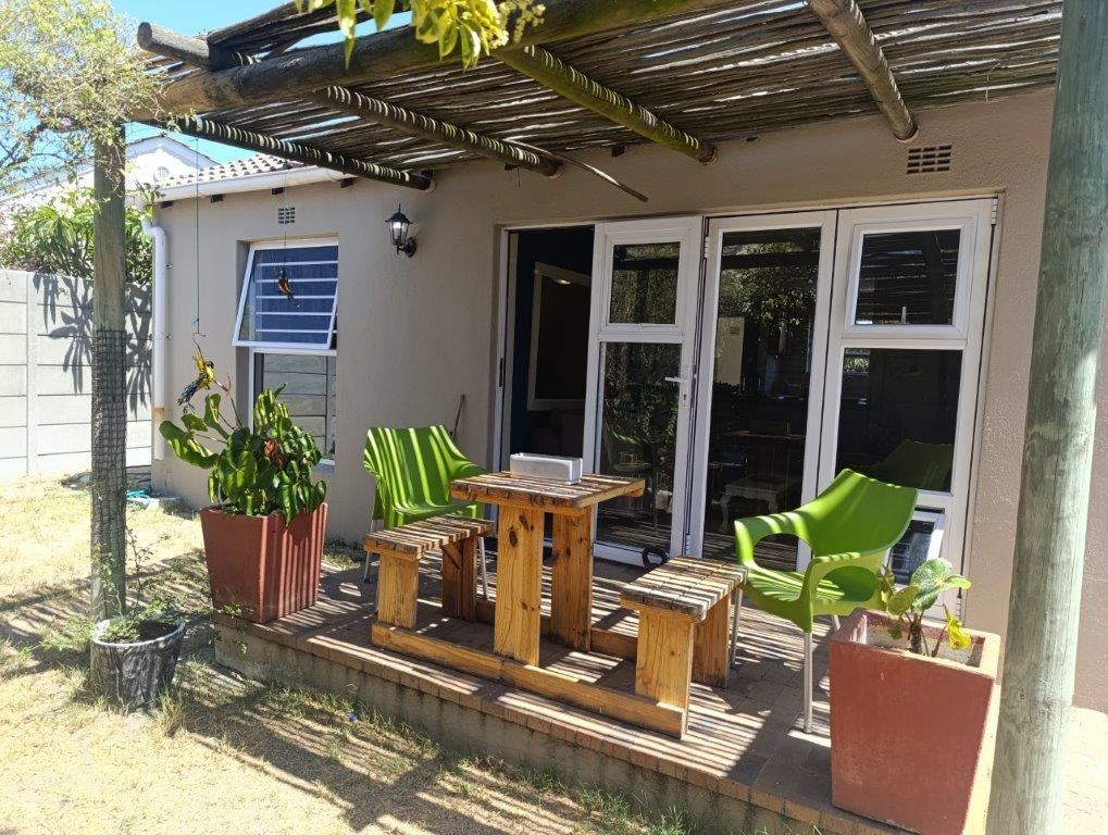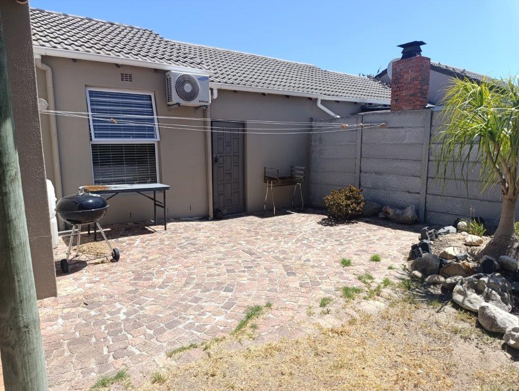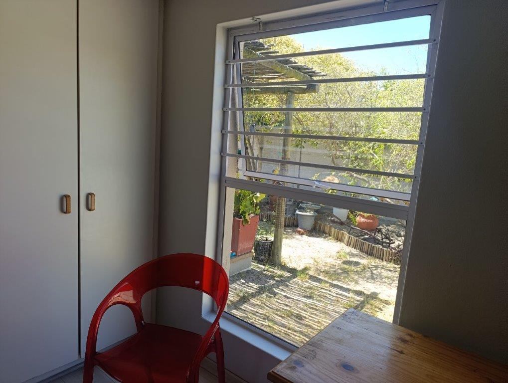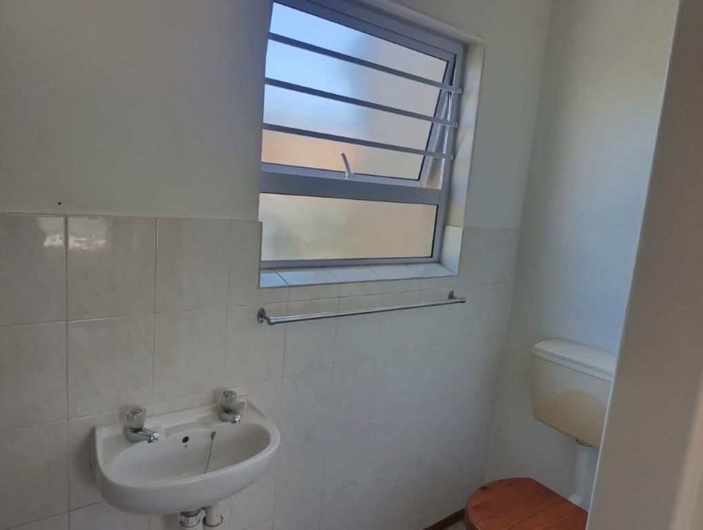 The main bedroom features an en-suite bathroom and air-conditioning for added comfort. A second bedroom, guest bathroom, and a dedicated home office provide flexibility and practical living. All windows have been upgraded to aluminium, and burglar bars offer peace of mind.