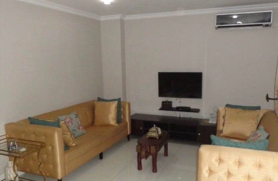 The living and dining areas are spacious and welcoming, ideal for both everyday living and entertaining. The property is semi-furnished, including a lounge suite, dining room suite, and televisions, allowing tenants to move in with ease.