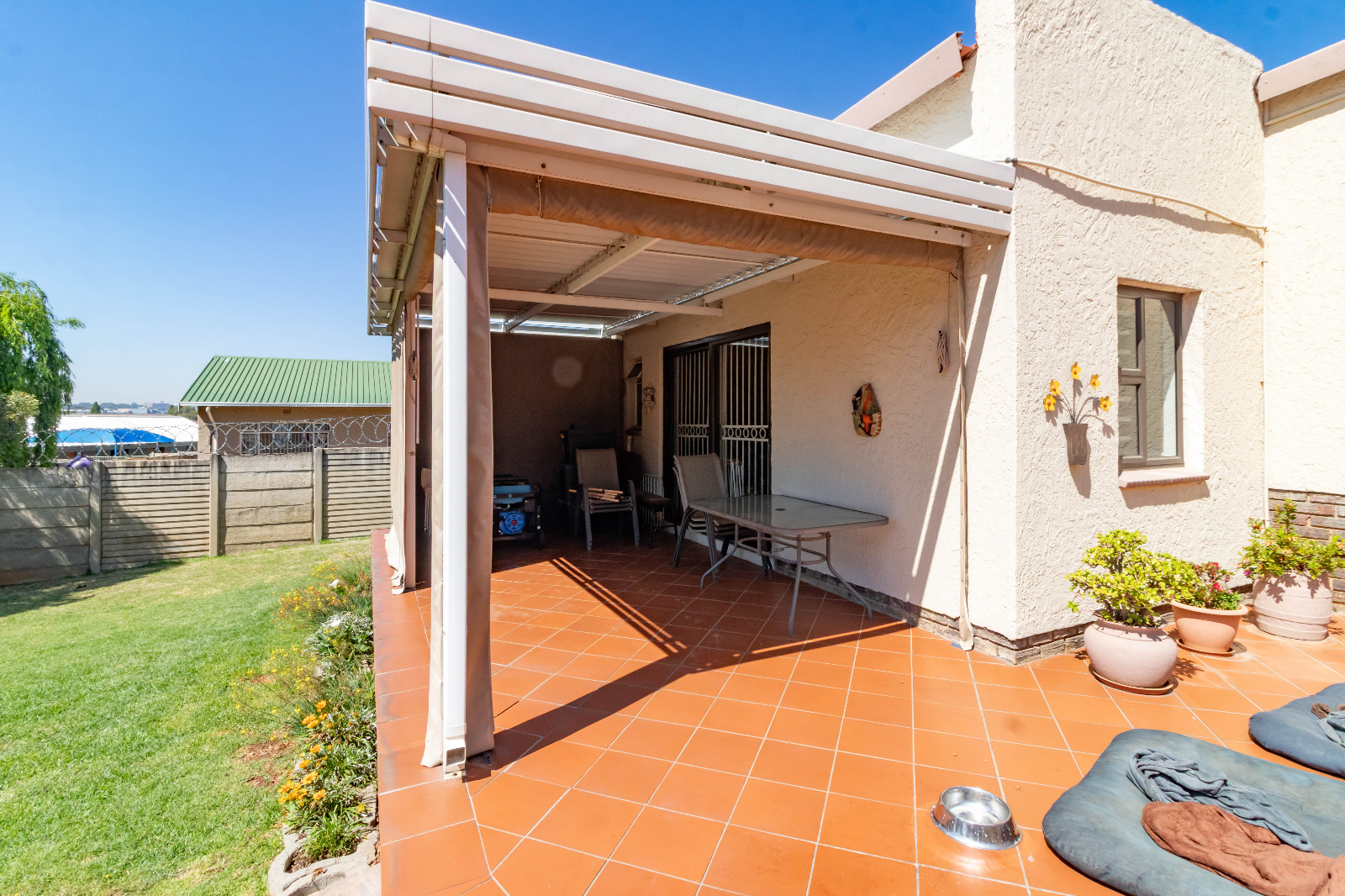 Step outside into the lush, well-maintained garden, where you’ll find a Wendy house and a storeroom that can be converted to an flatlet. Car enthusiasts will appreciate the triple garage, providing ample parking and storage. Plus, with a borehole, you’ll enjoy a sustainable water supply.