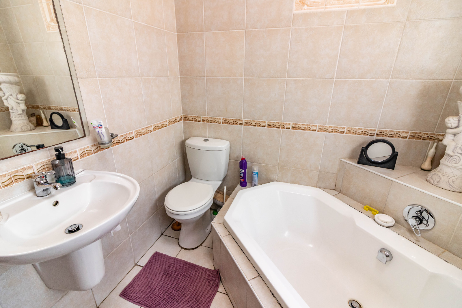 For those who love to entertain, a spacious entertainment room awaits just off the kitchen, perfect for hosting guests or enjoying family time. The home features two well-appointed bathrooms – the first bathroom with a shower, bath, and basin, plus a separate toilet for added convenience. The main bedroom boasts a private en-suite bathroom with a luxurious corner bath for relaxation.