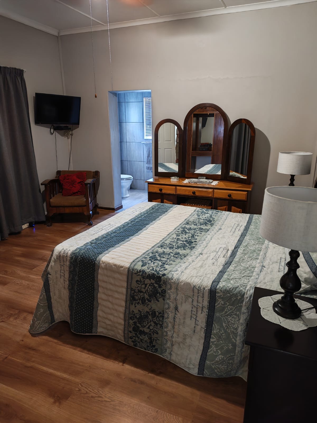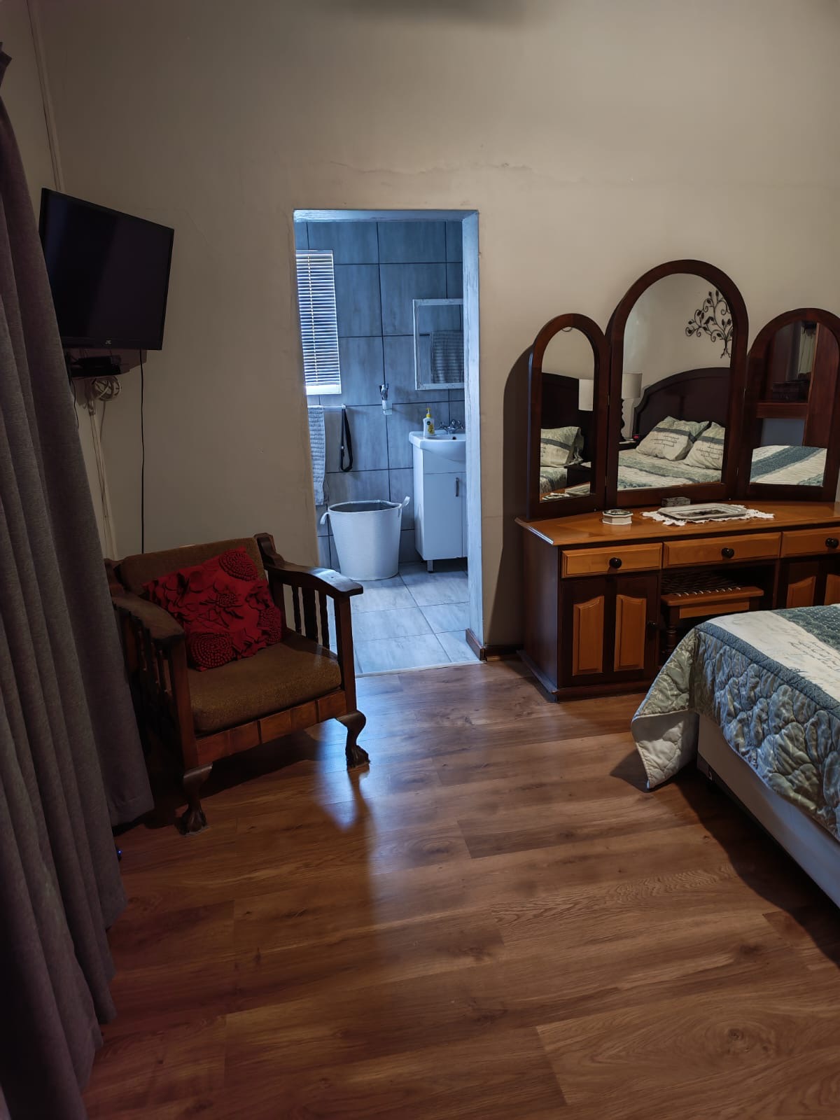 This beautifully maintained three-bedroom residence welcomes you with a sense of calm and abundance. The home features one full family bathroom and a main en-suite, thoughtfully designed for comfortable living. A private study with its own toilet offers the ideal space for working from home, running a small business, or creating a quiet personal retreat.