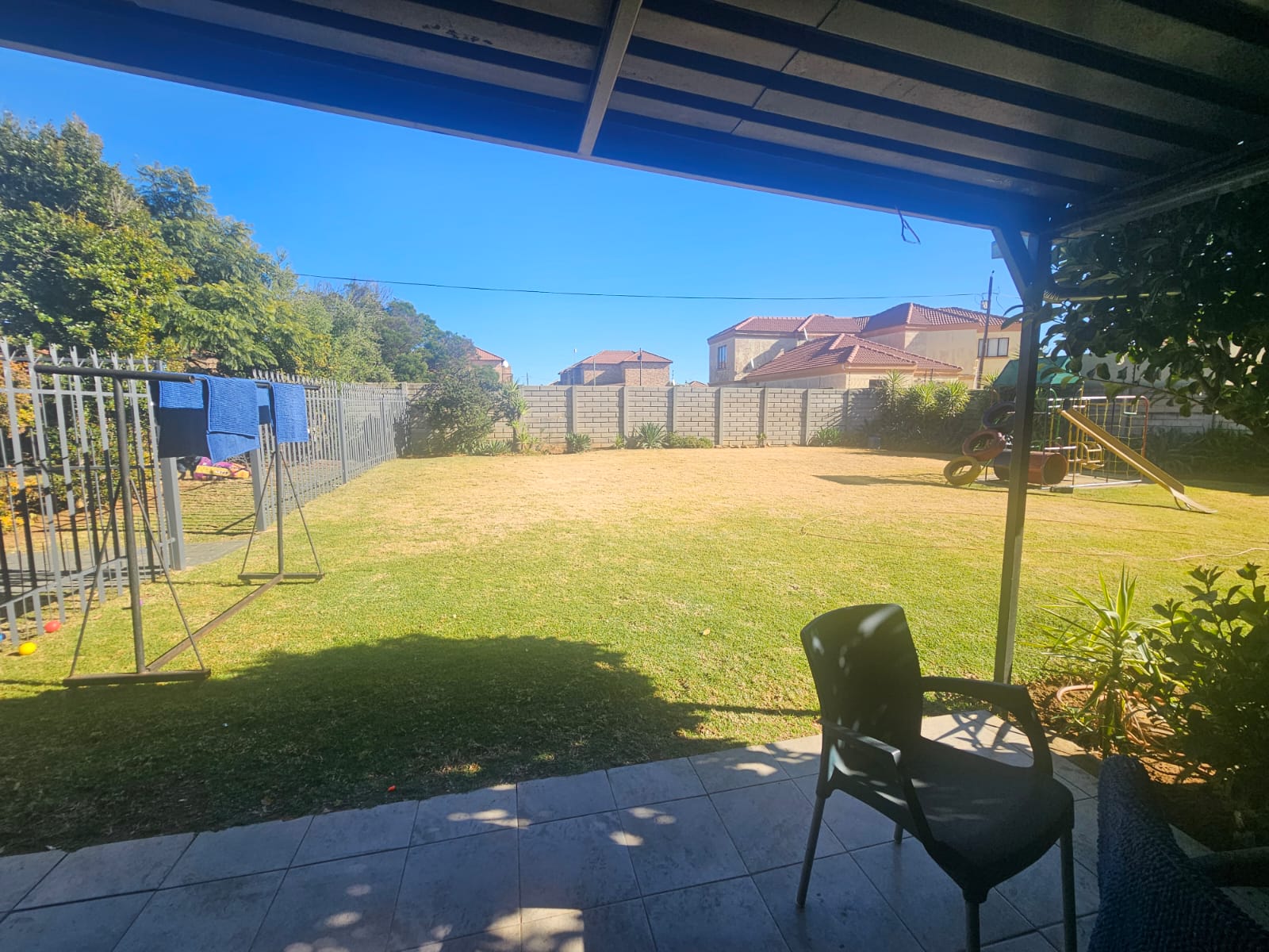 A large yard with plenty of space for kids or pets