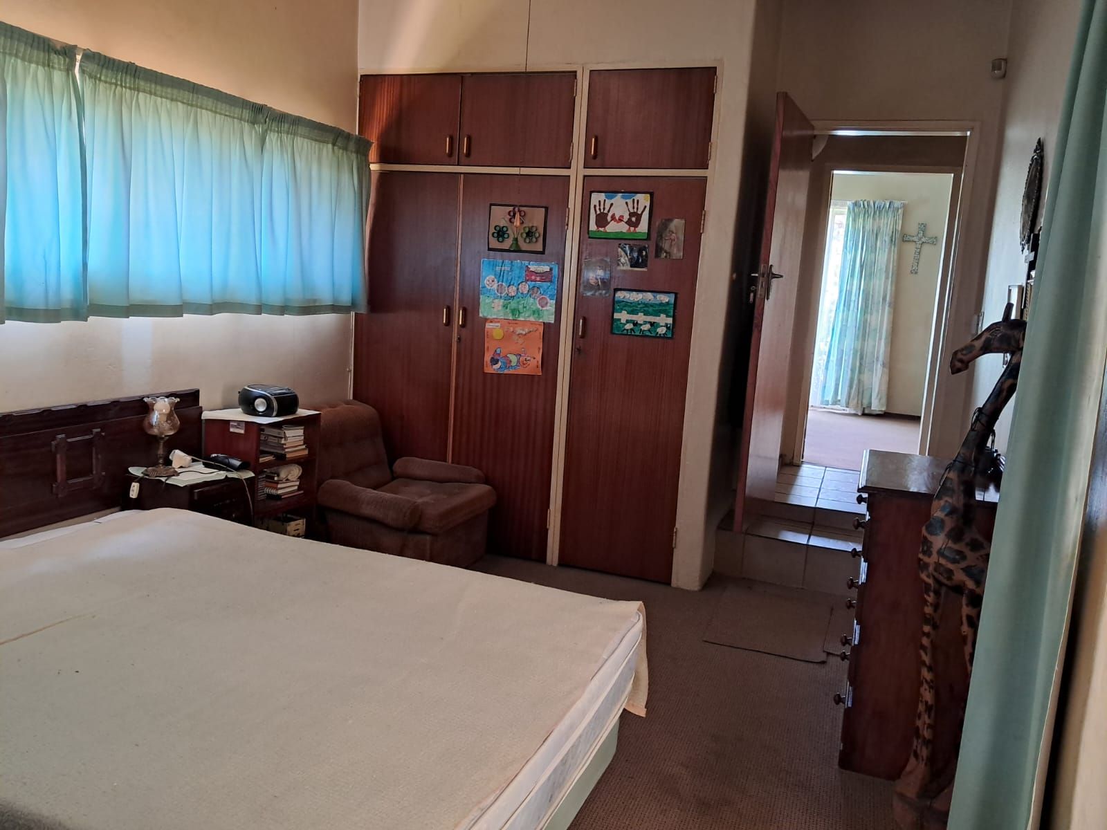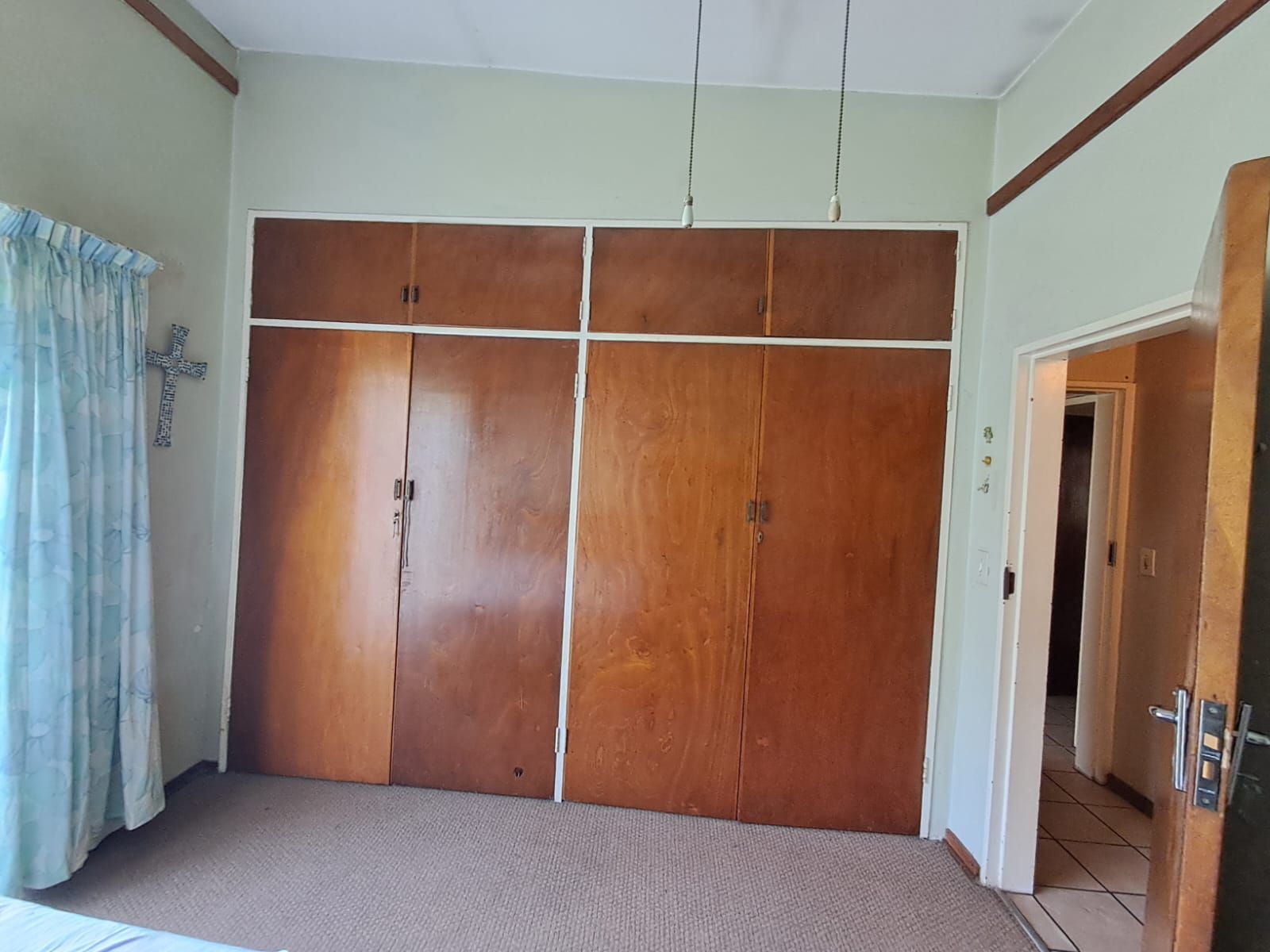 The 4 north-facing bedrooms are bright, airy, and carpeted, each fitted with ceiling fans and built-in cupboards.