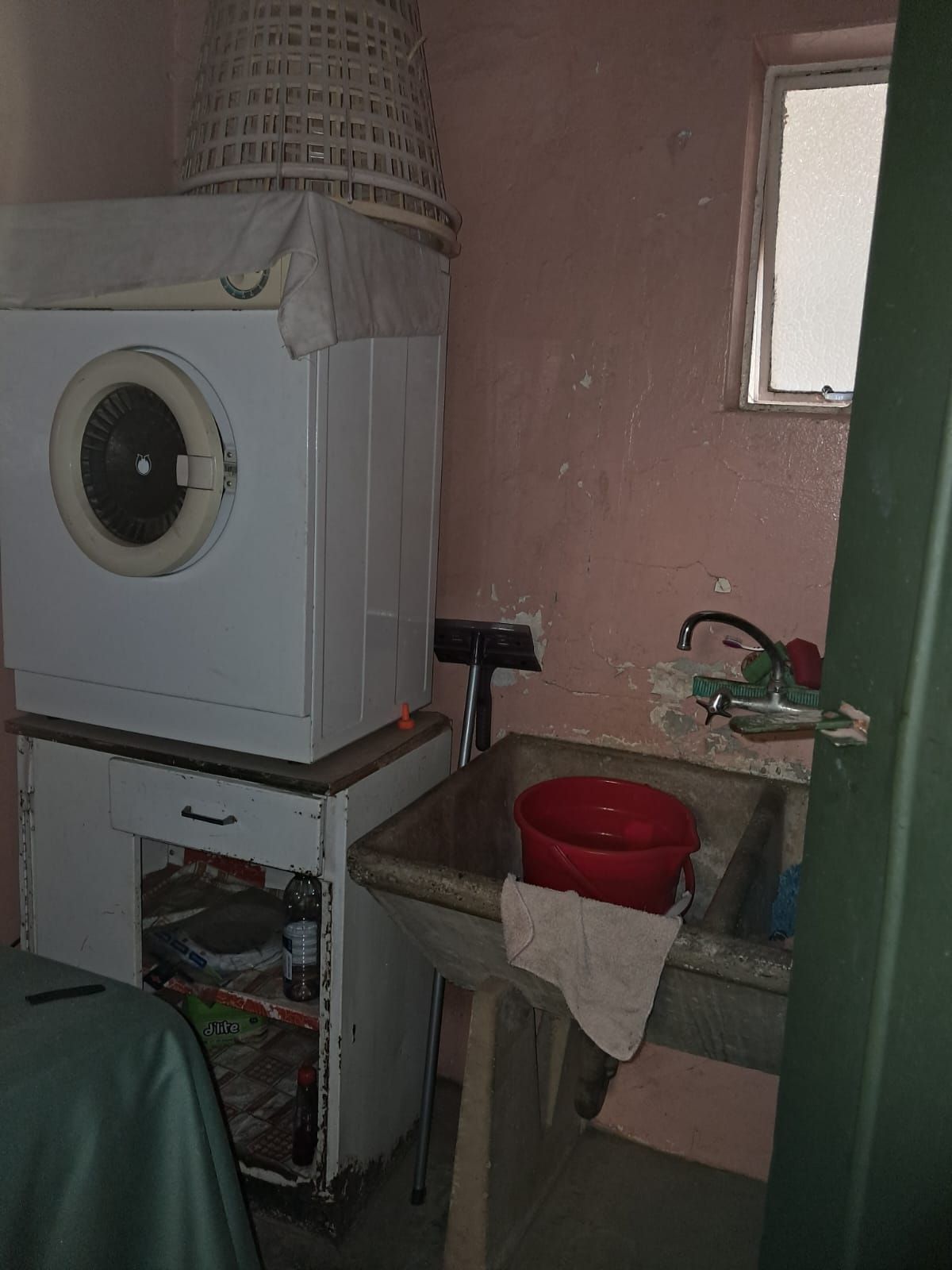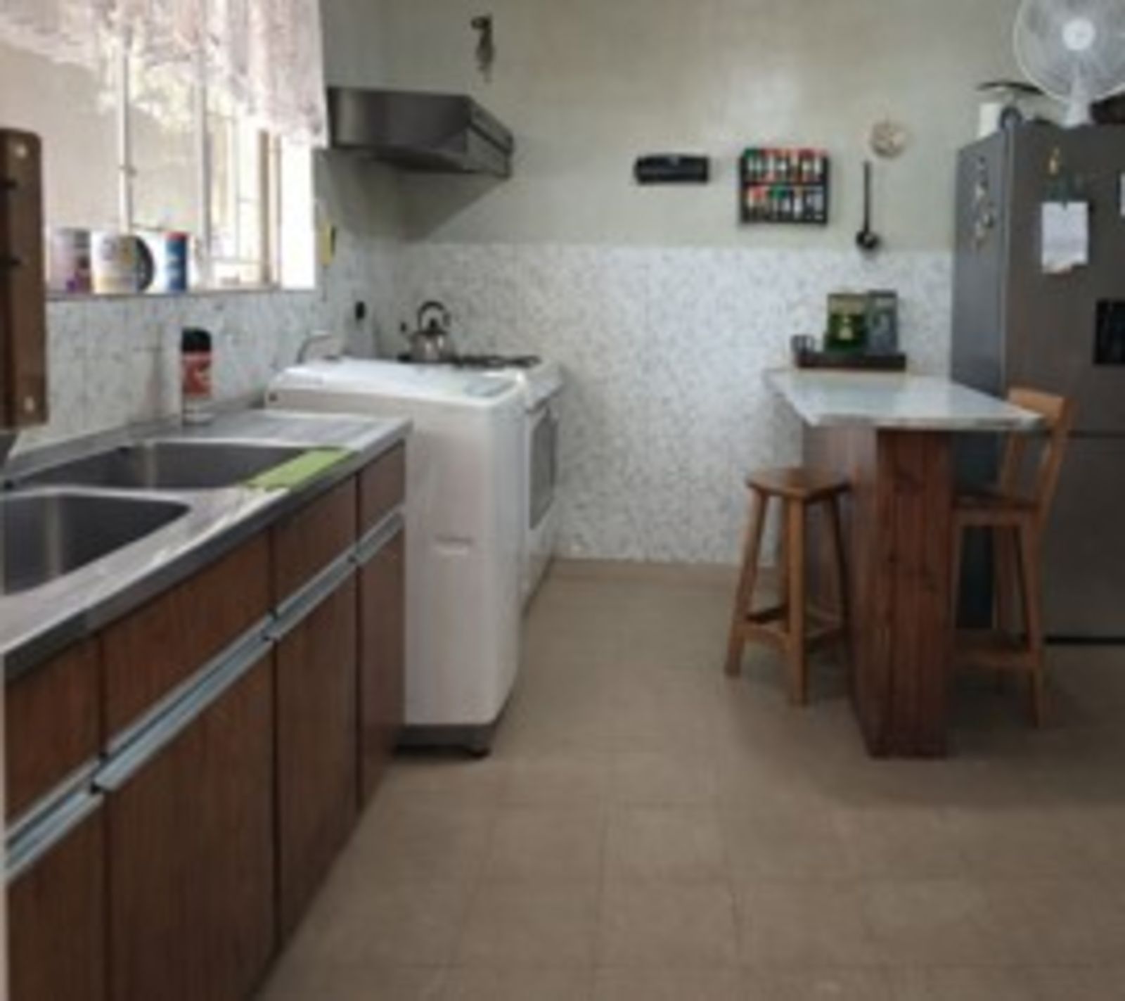 Laundry area with two deep basins and washing machine connections