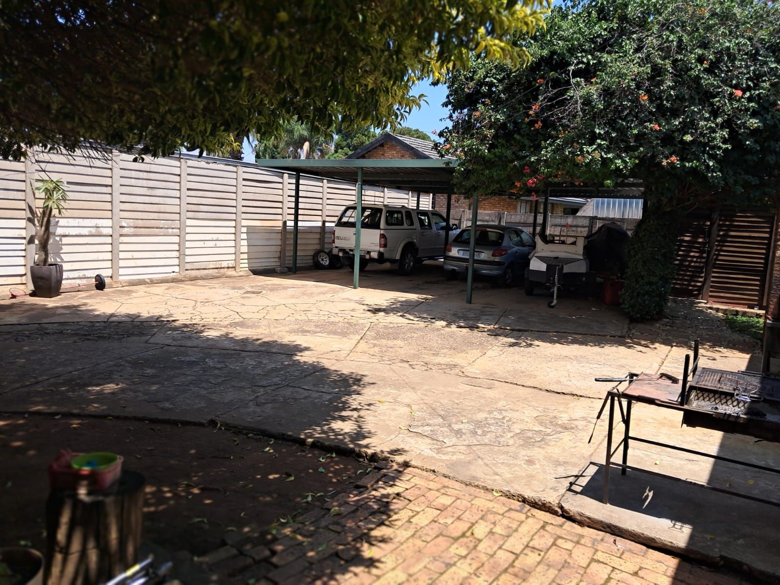 A spacious carport accommodating up to 6 medium vehicles