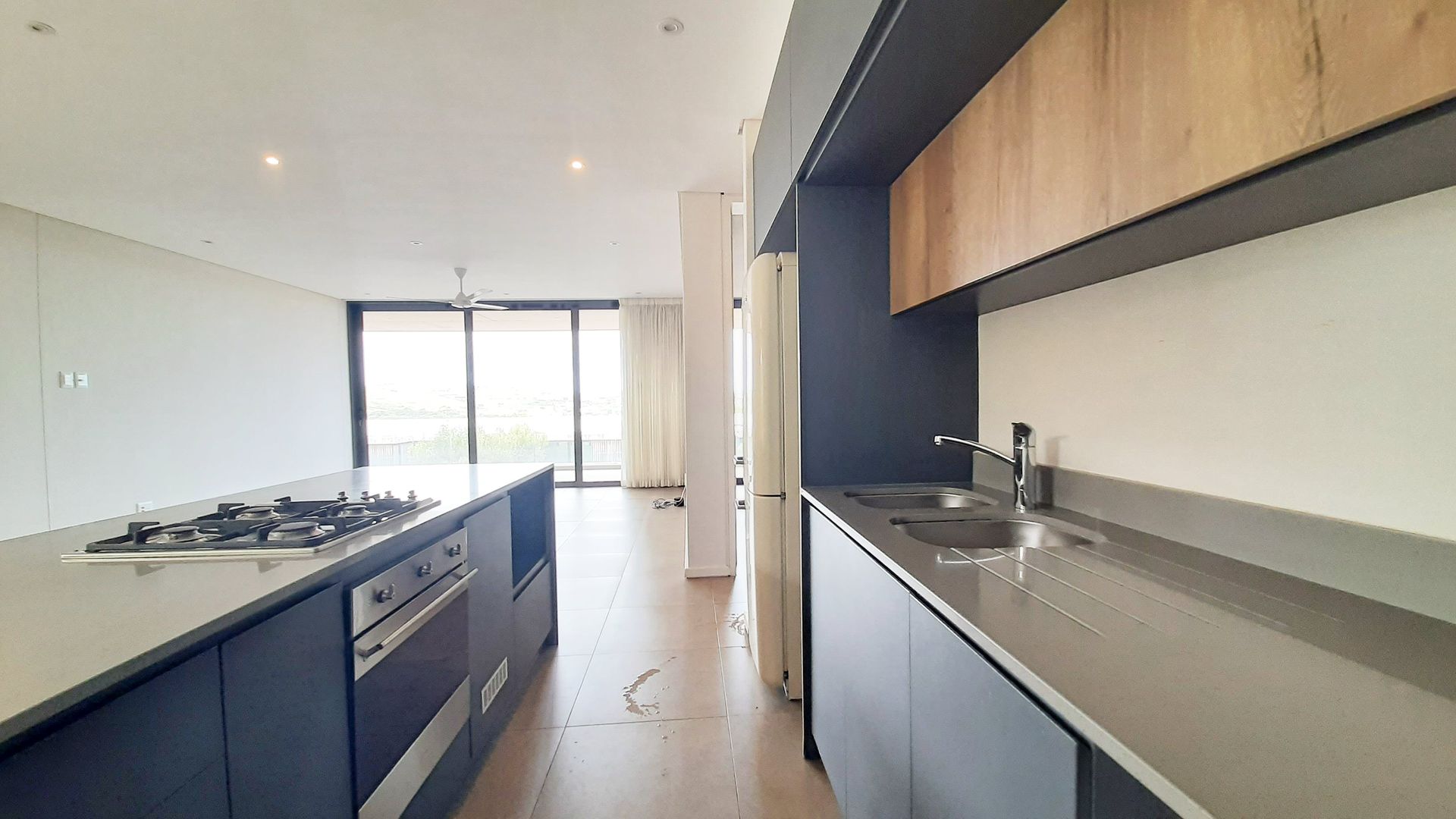 In the captivating embrace of Elaleni Coastal Forest Estate, this sophisticated two-bedroom apartment seamlessly harmonizes modern elegance with a lifestyle deeply rooted in nature. The thoughtfully designed layout effortlessly integrates the kitchen, dining room, and lounge, leading to a covered balcony that offers enchanting views of the distant sea, all bathed in the gentle glow of natural light filtering through expansive floor-to-ceiling glass doors. The kitchen, a testament to luxury and practicality, adds a touch of style to everyday living.