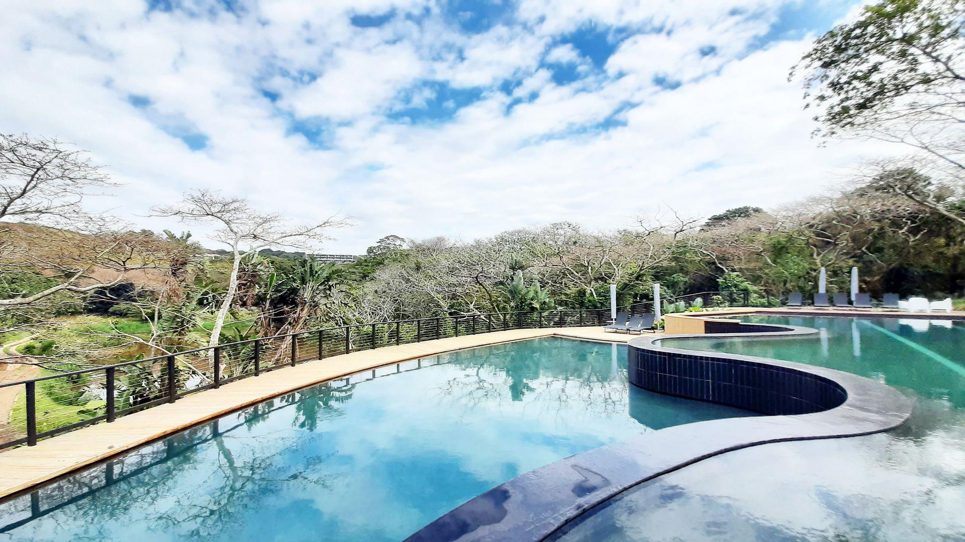 Two meticulously appointed bedrooms, including a main suite with an en-suite bathroom, provide a haven of comfort and convenience. The addition of air conditioning in both bedrooms ensures an optimal and pleasant living experience. Elaleni Coastal Forest Estate offers secure living amidst serene surroundings, boasting two exclusive clubhouses, a lap pool, children's amenities, and picturesque walking trails that wind through the enchanting Elaleni forest.
