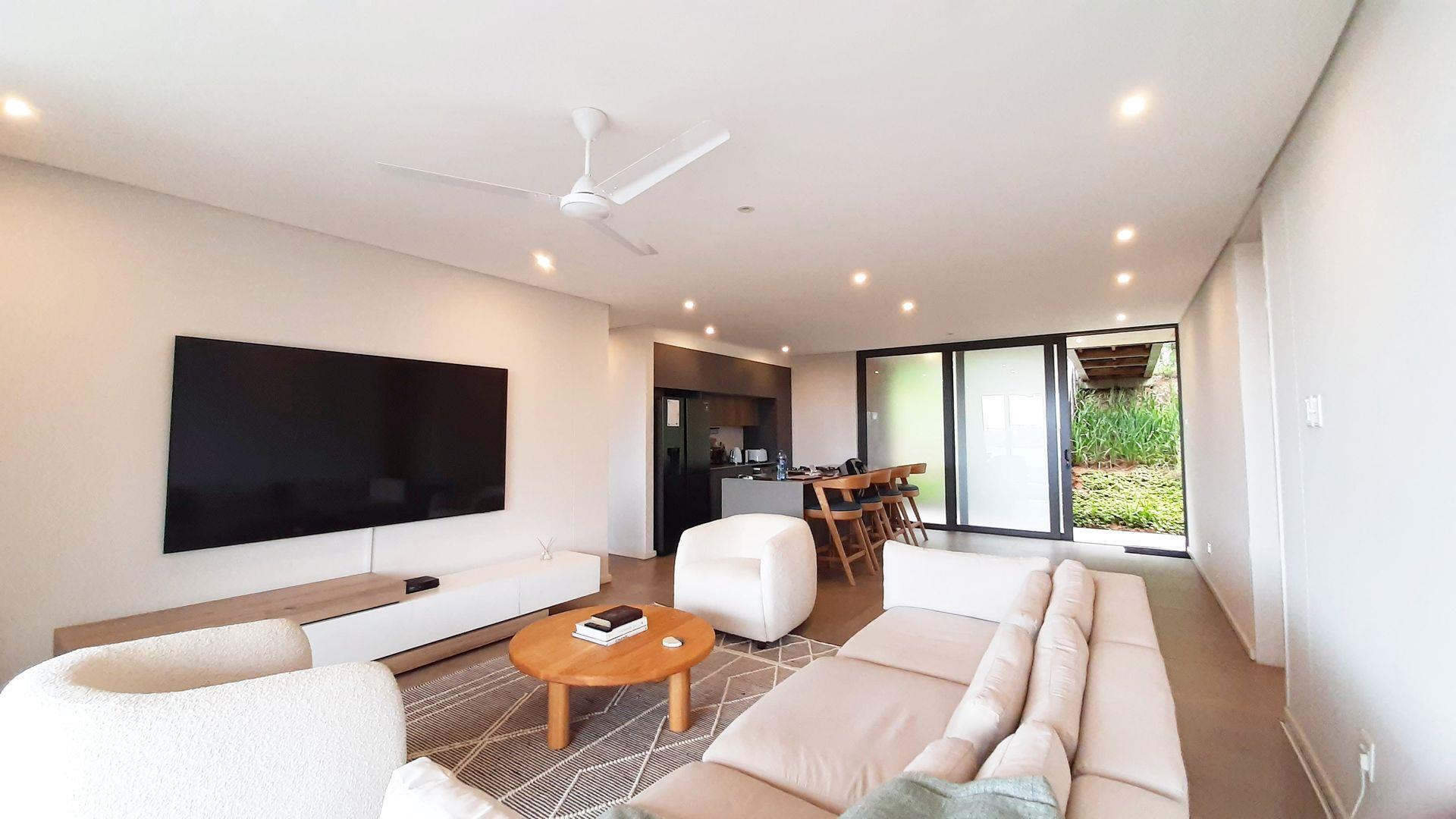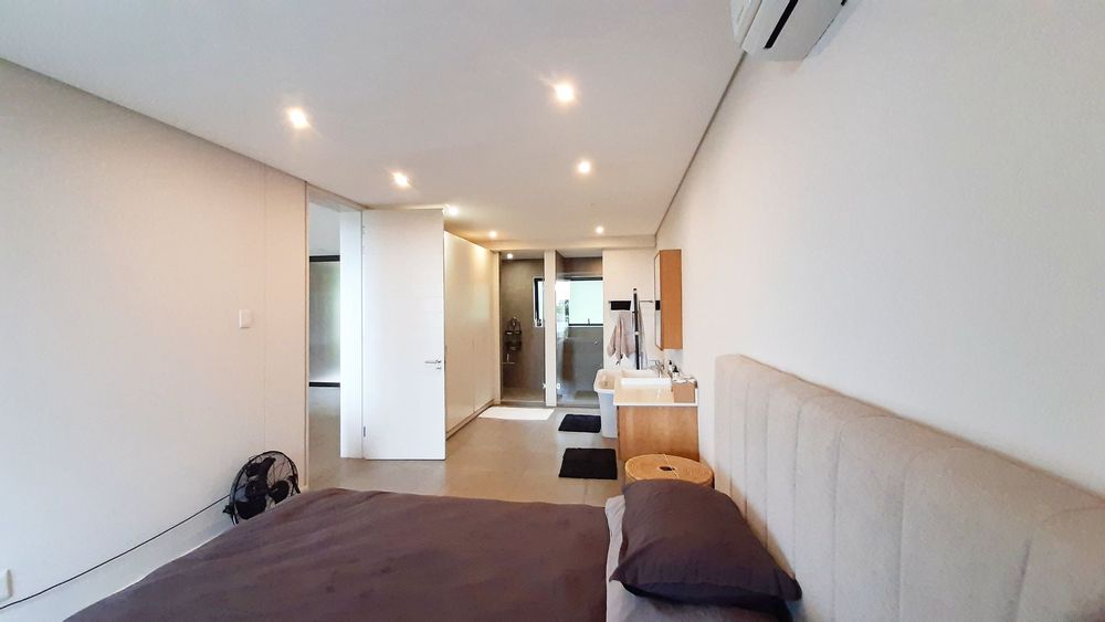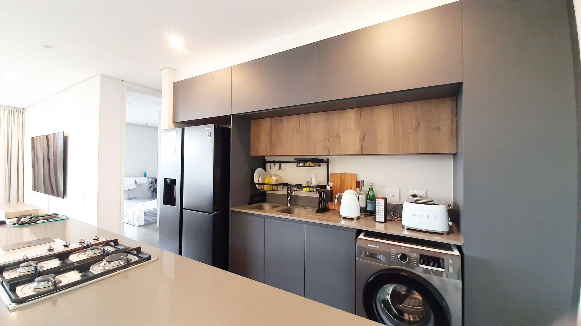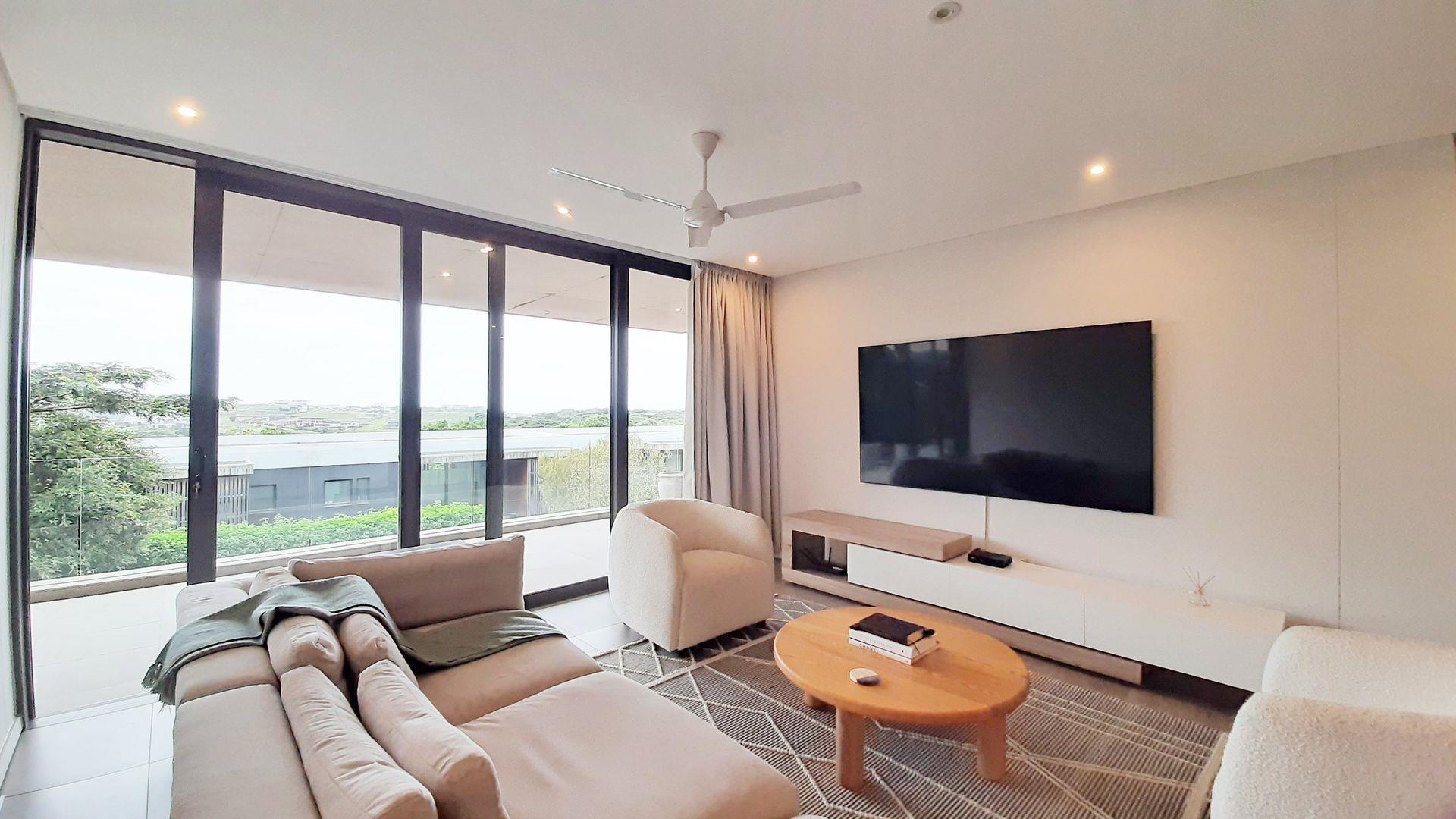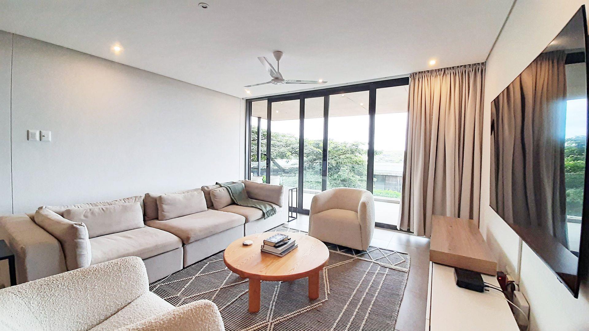 Embraced by the enchanting Elaleni Coastal Forest Estate, this sophisticated two-bedroom apartment seamlessly merges modern elegance with a nature-centric lifestyle. The thoughtfully designed layout effortlessly integrates the kitchen, dining room, and lounge, leading to a covered balcony that reveals captivating views of the distant sea, all bathed in the gentle glow of natural light filtering through expansive floor-to-ceiling glass doors. The kitchen is the embodiment of luxury and practicality, adding a stylish flair to everyday living.
