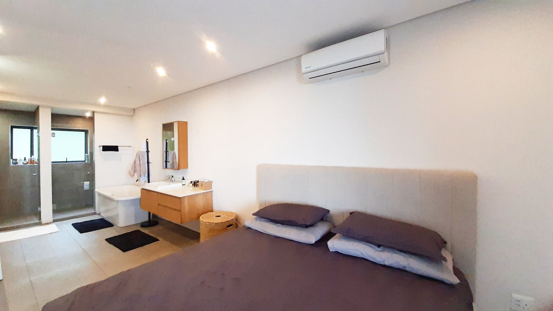 Two meticulously appointed bedrooms, including a main suite with an en-suite bathroom, provide a haven of comfort and convenience. There is air conditioning in both bedrooms that ensures a pleasant living experience. Elaleni Coastal Forest Estate offers secure living amidst serene surroundings, featuring two exclusive clubhouses, a lap pool, children's amenities, and picturesque walking trails that wind through the enchanting Elaleni forest.