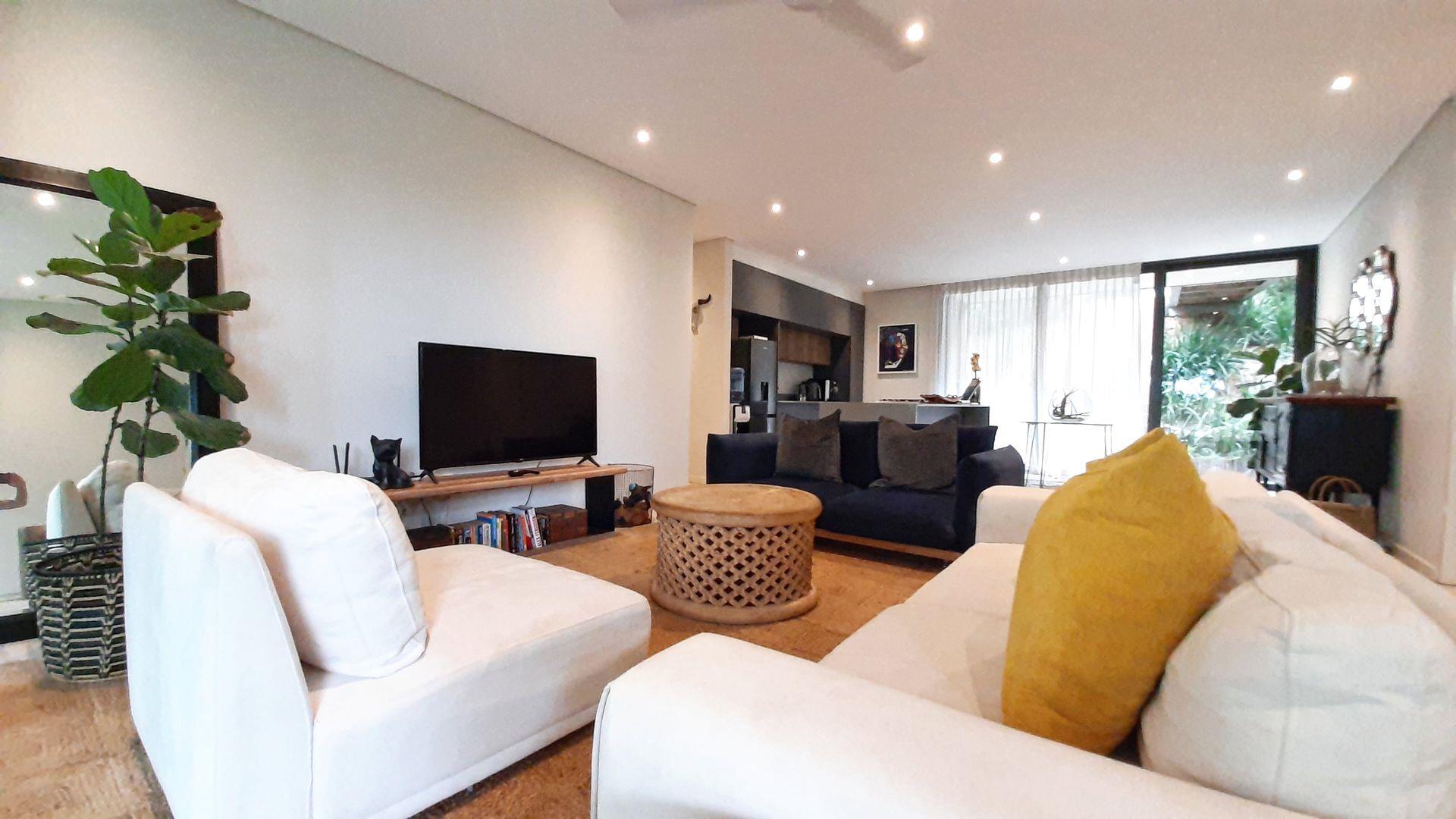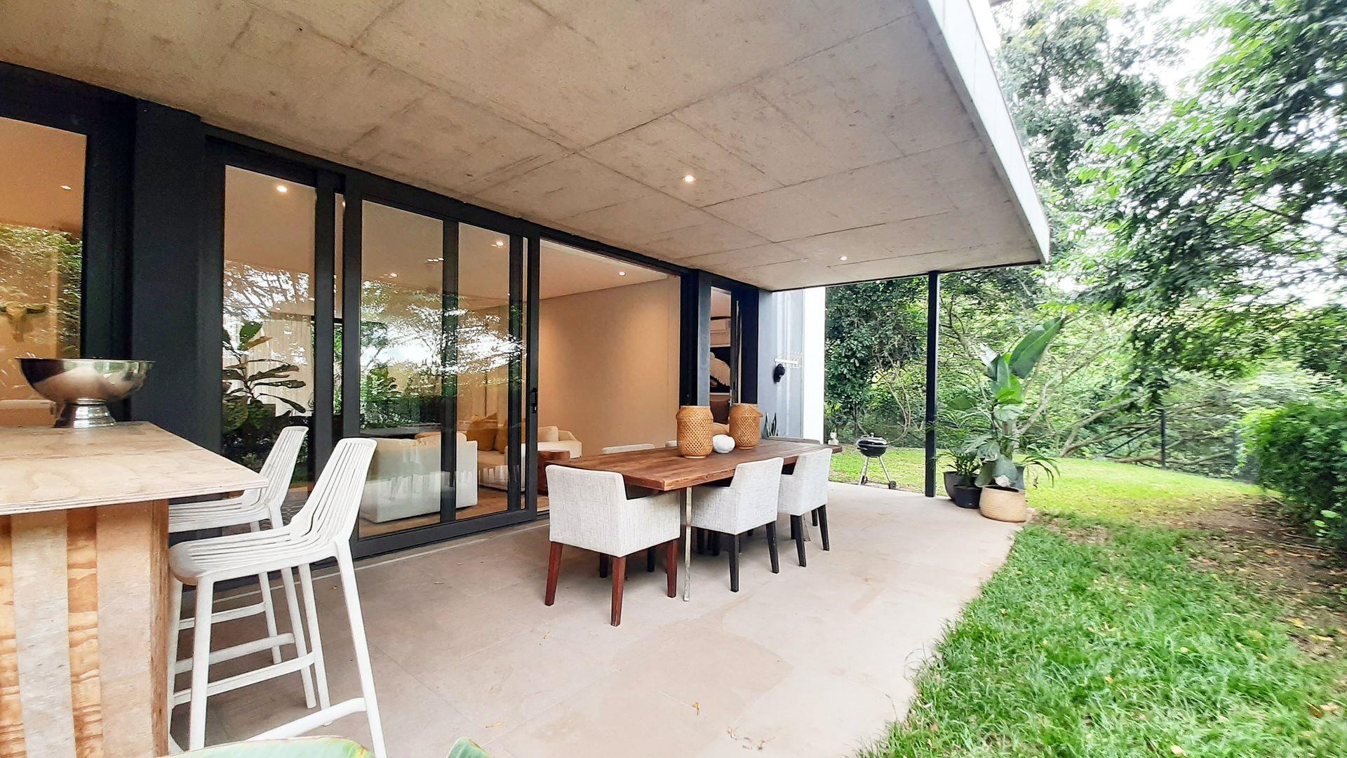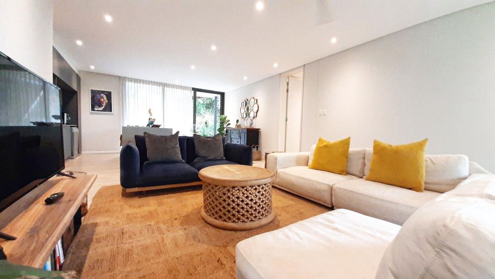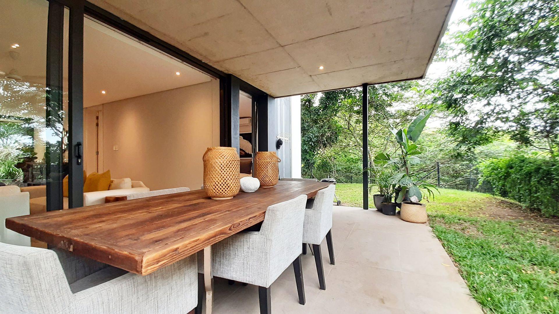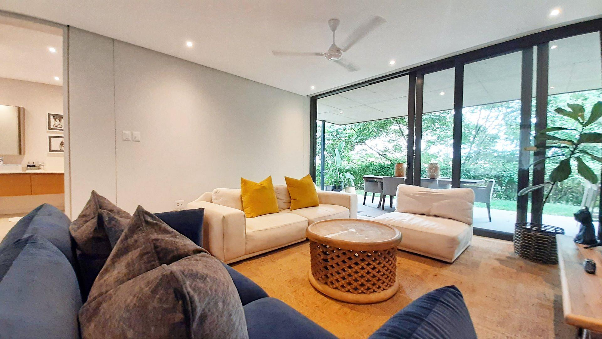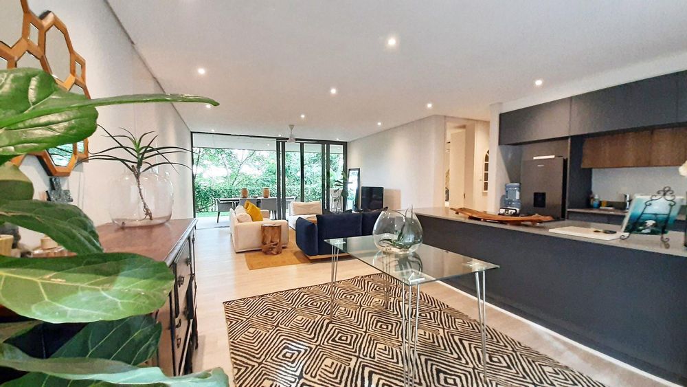 Immersed in the captivating embrace of the Elaleni Coastal Forest Estate, this sophisticated two-bedroom apartment seamlessly blends modern elegance with a nature-centric lifestyle. As you step through the door, you'll greeted by a thoughtfully designed layout where the kitchen, dining area, and lounge flow effortlessly, leading to a covered patio and expansive enclosed garden. Sunlight floods the space through floor-to-ceiling glass doors, creating a warm and inviting atmosphere.
