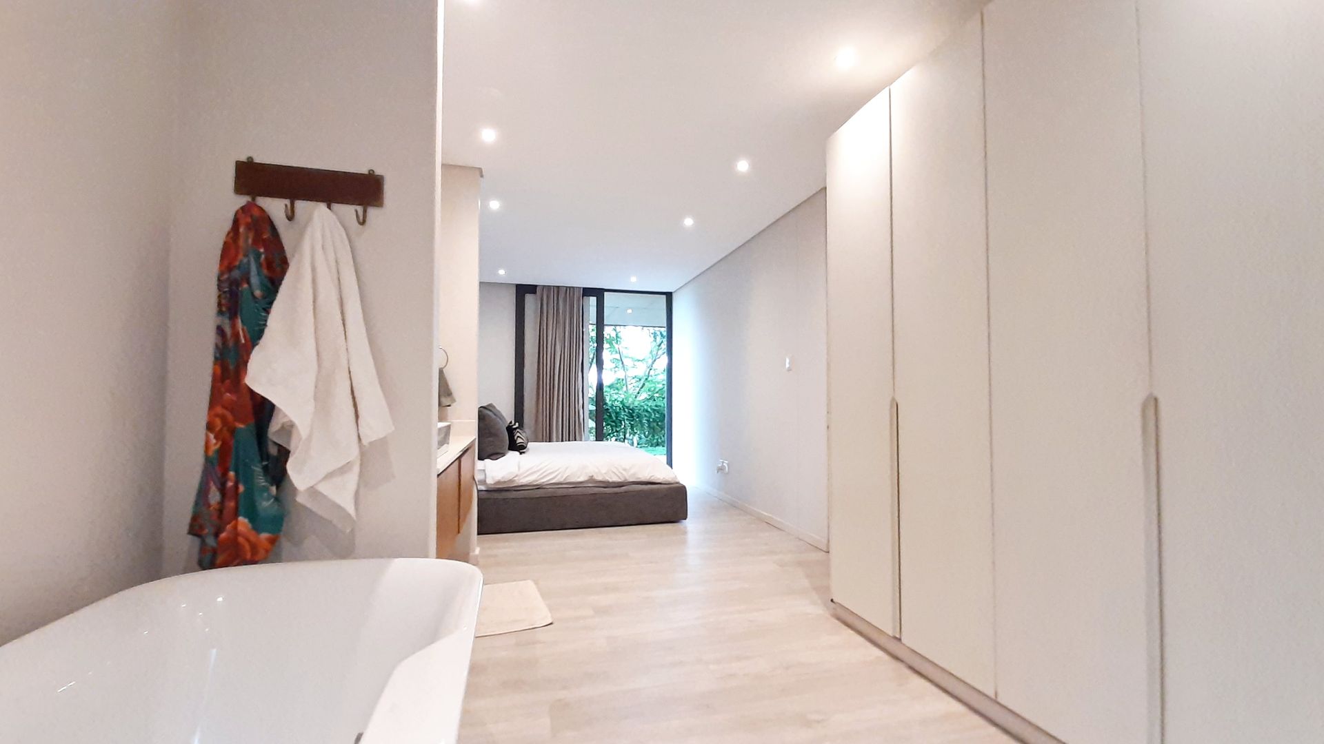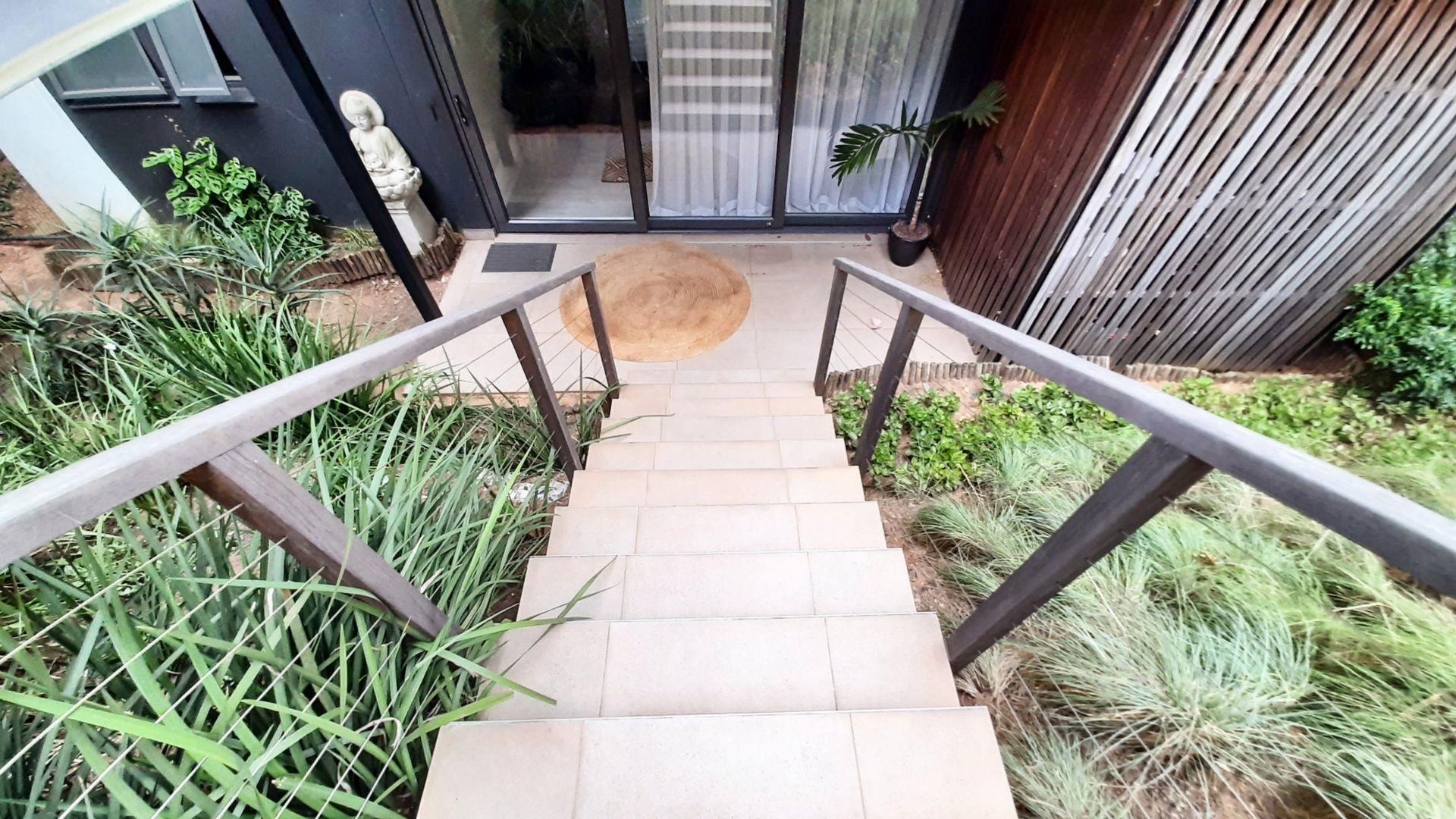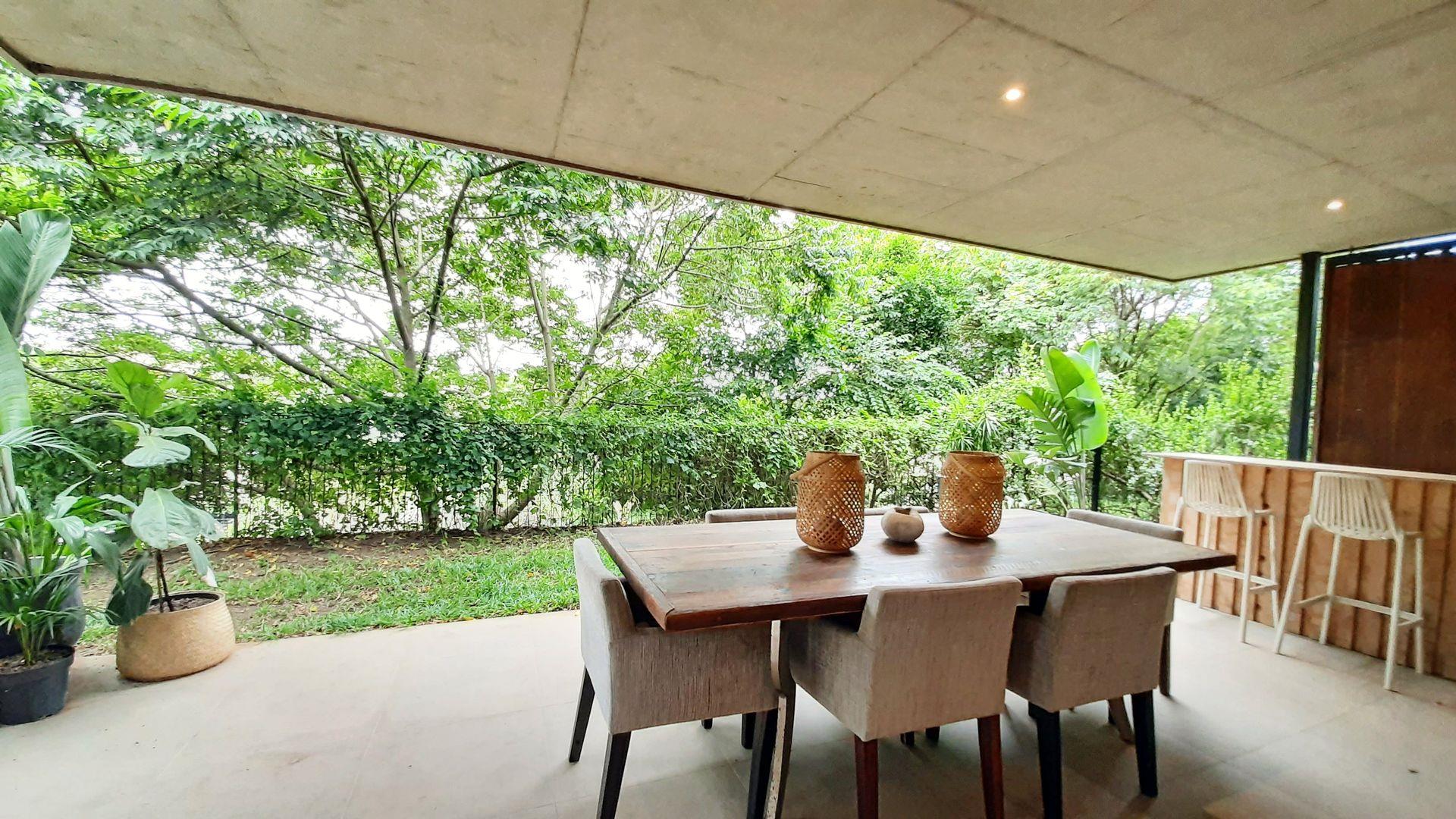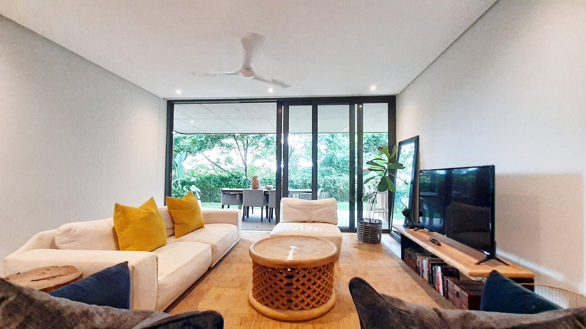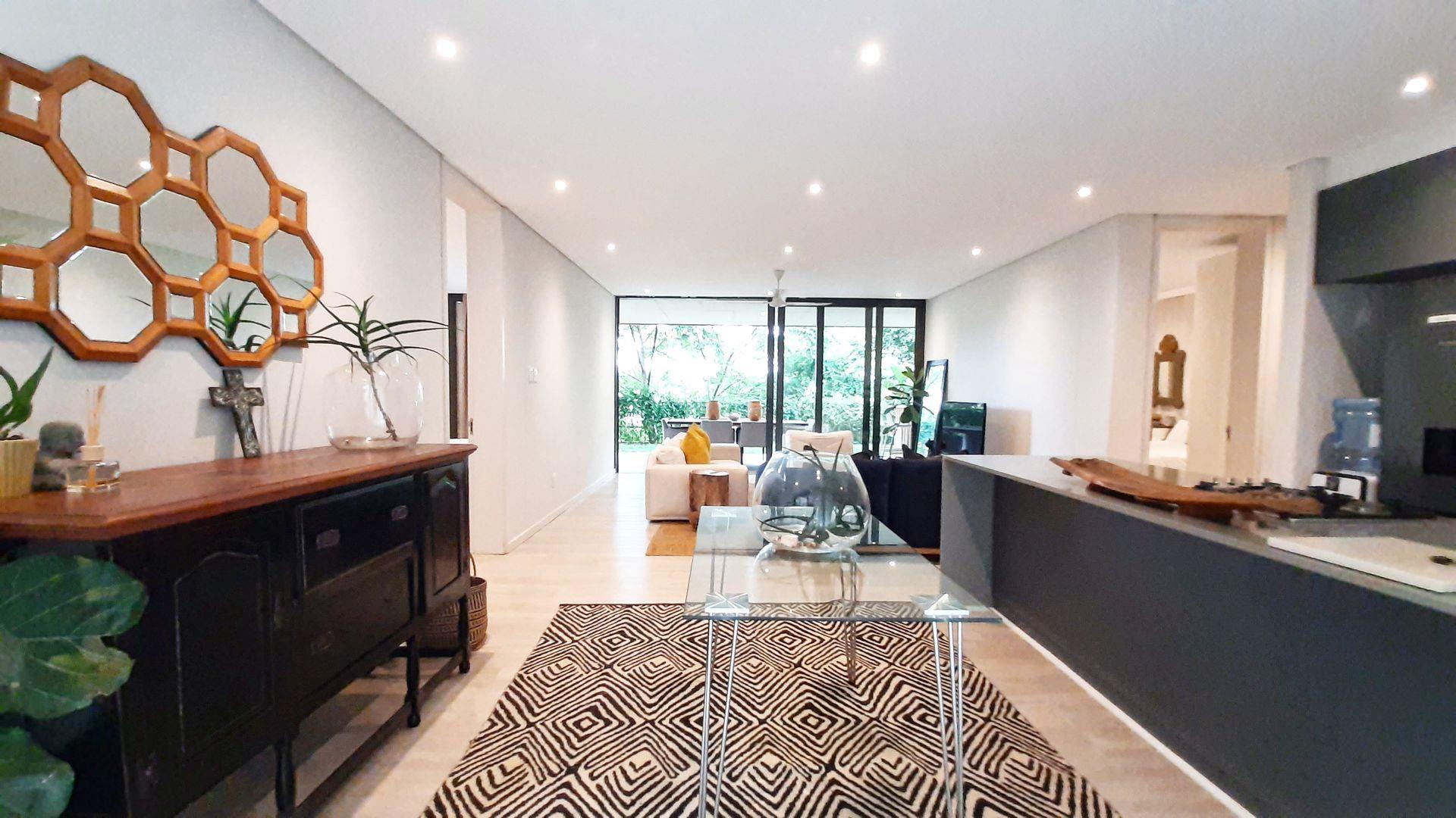 Immersed in the captivating embrace of the Elaleni Coastal Forest Estate, this sophisticated two-bedroom apartment seamlessly blends modern elegance with a nature-centric lifestyle. As you step through the door, you'll greeted by a thoughtfully designed layout where the kitchen, dining area, and lounge flow effortlessly, leading to a covered patio and expansive enclosed garden. Sunlight floods the space through floor-to-ceiling glass doors, creating a warm and inviting atmosphere.