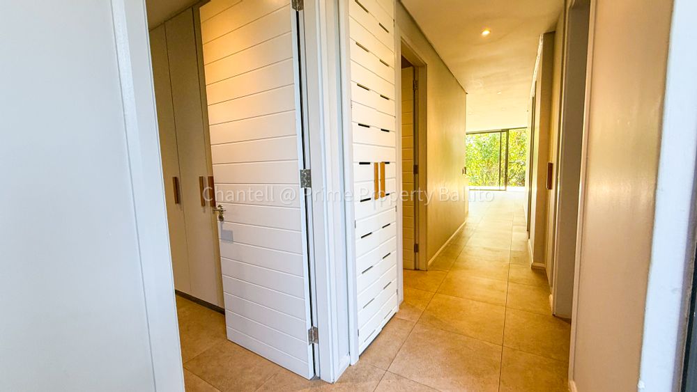 This immaculate residence offers three spacious bedrooms, including a luxurious main en-suite. Two bedrooms and the lounge are equipped with air conditioning for year-round comfort. Additional features include direct access from a secure lock-up garage and an extra open parking bay.