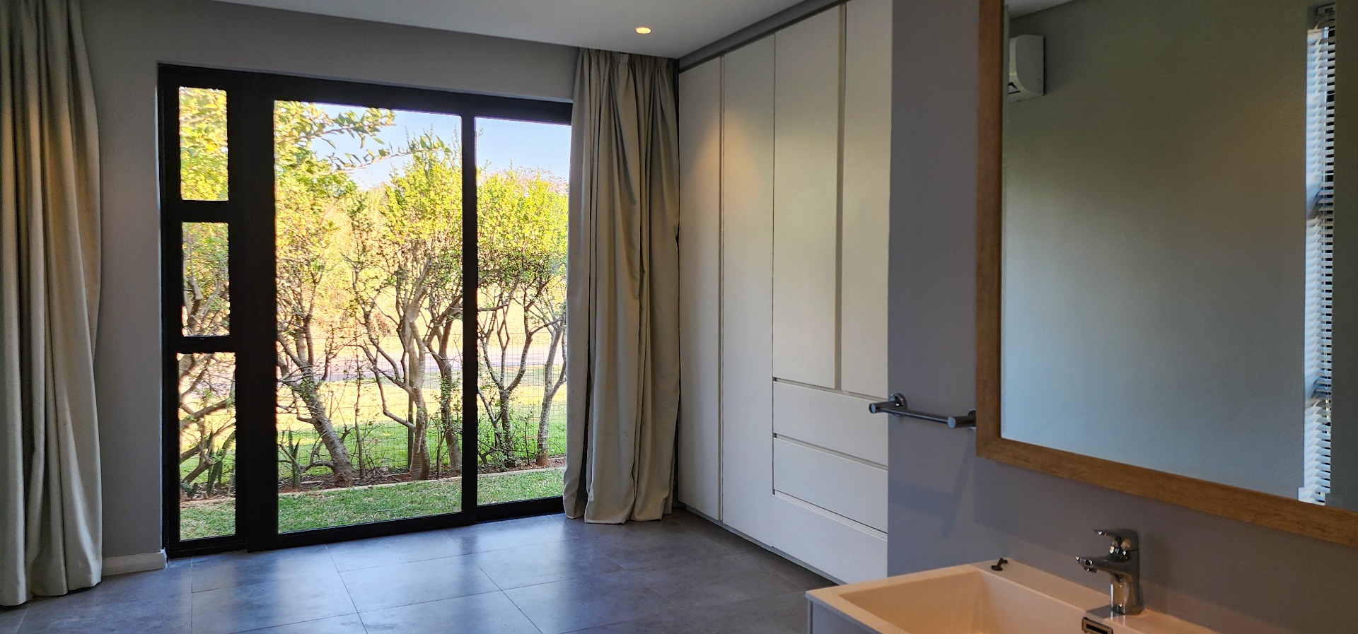 Don't miss out on 122 Plains Loop! This modern single-story home is located in the prestigious Elaleni Coastal Forest Estate. It was designed by renowned Bloc Architects and Union 3 Construction and features luxurious finishes. The pet-friendly property includes three bedrooms, with the main bedroom having an en-suite bathroom and the other two bedrooms sharing a bathroom. Each bedroom has ample built-in cupboards and sliding doors leading to the garden. The living area and main bedroom are air-conditioned for year-round comfort. Bonus features include a single garage, a drying yard, and a combined laundry/pantry area.