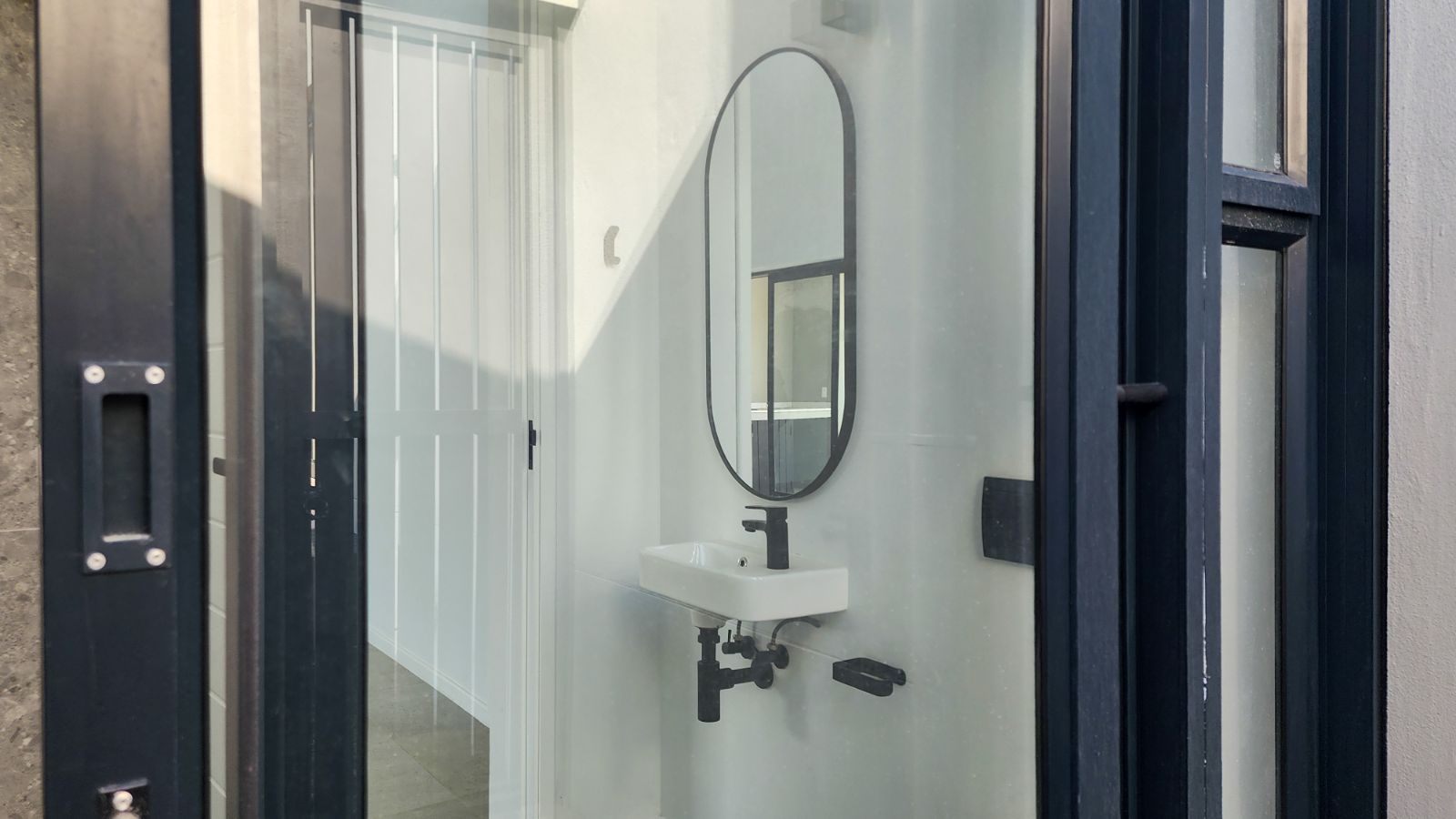 - Bright, open-plan living with plenty of natural light and large sliding doors