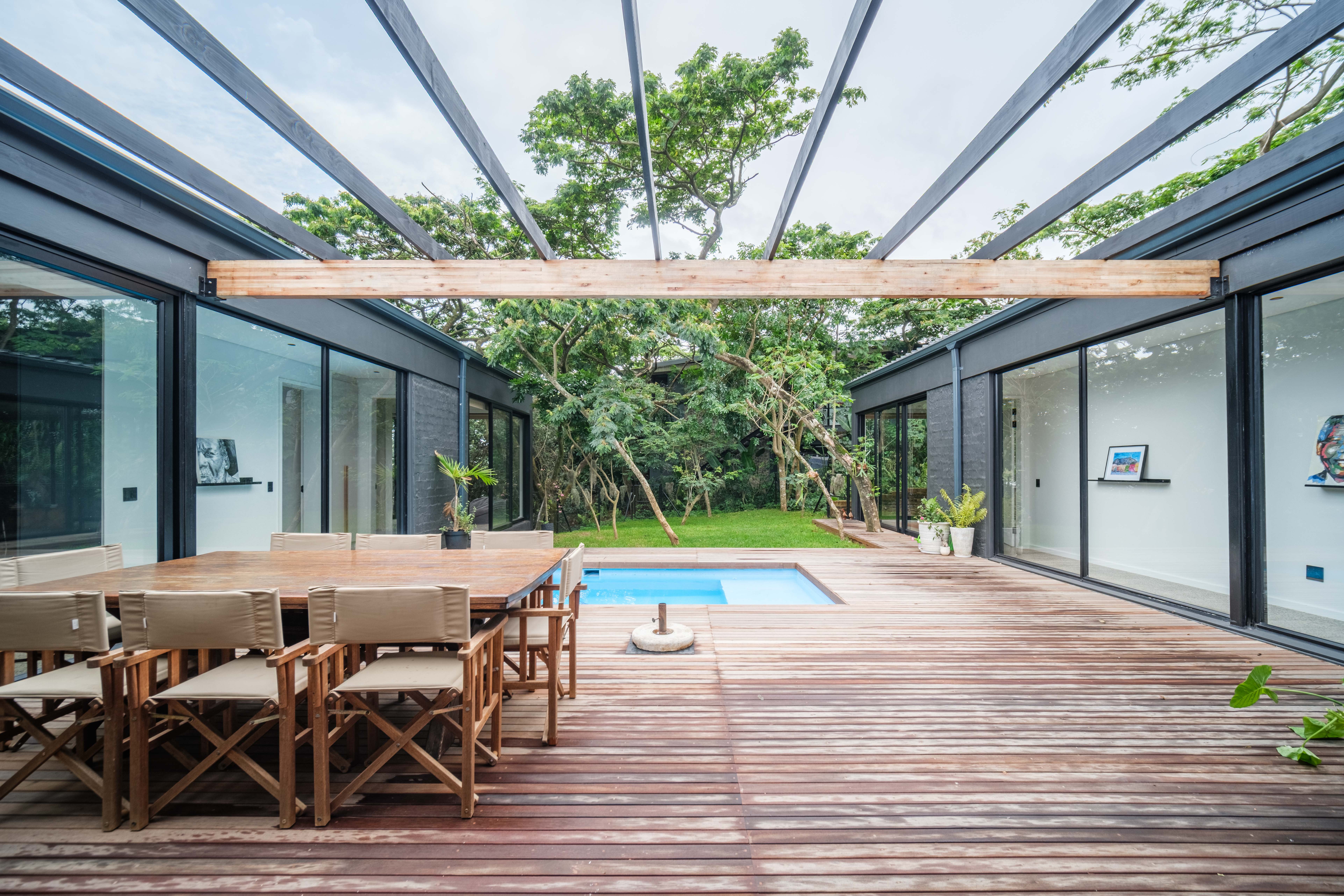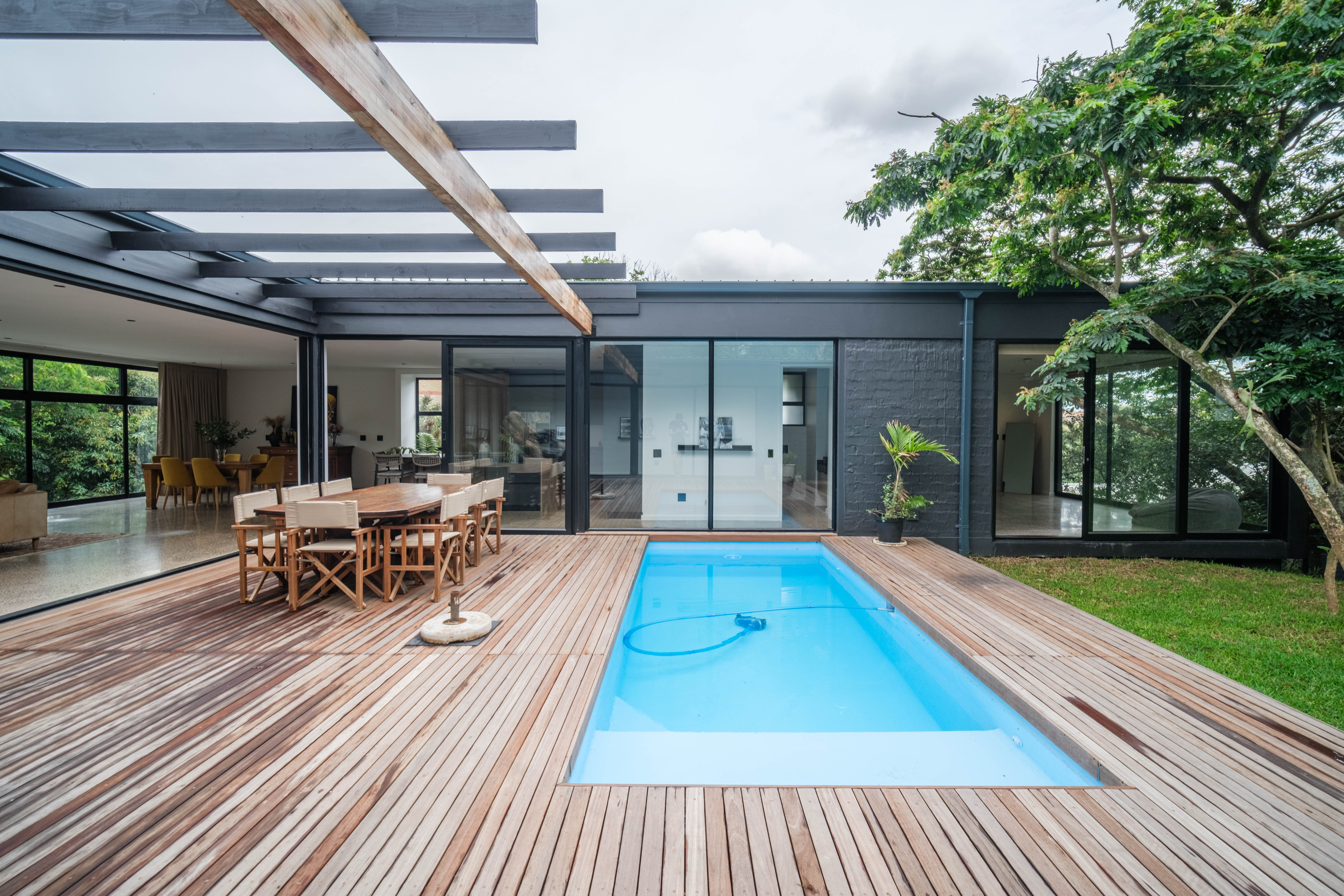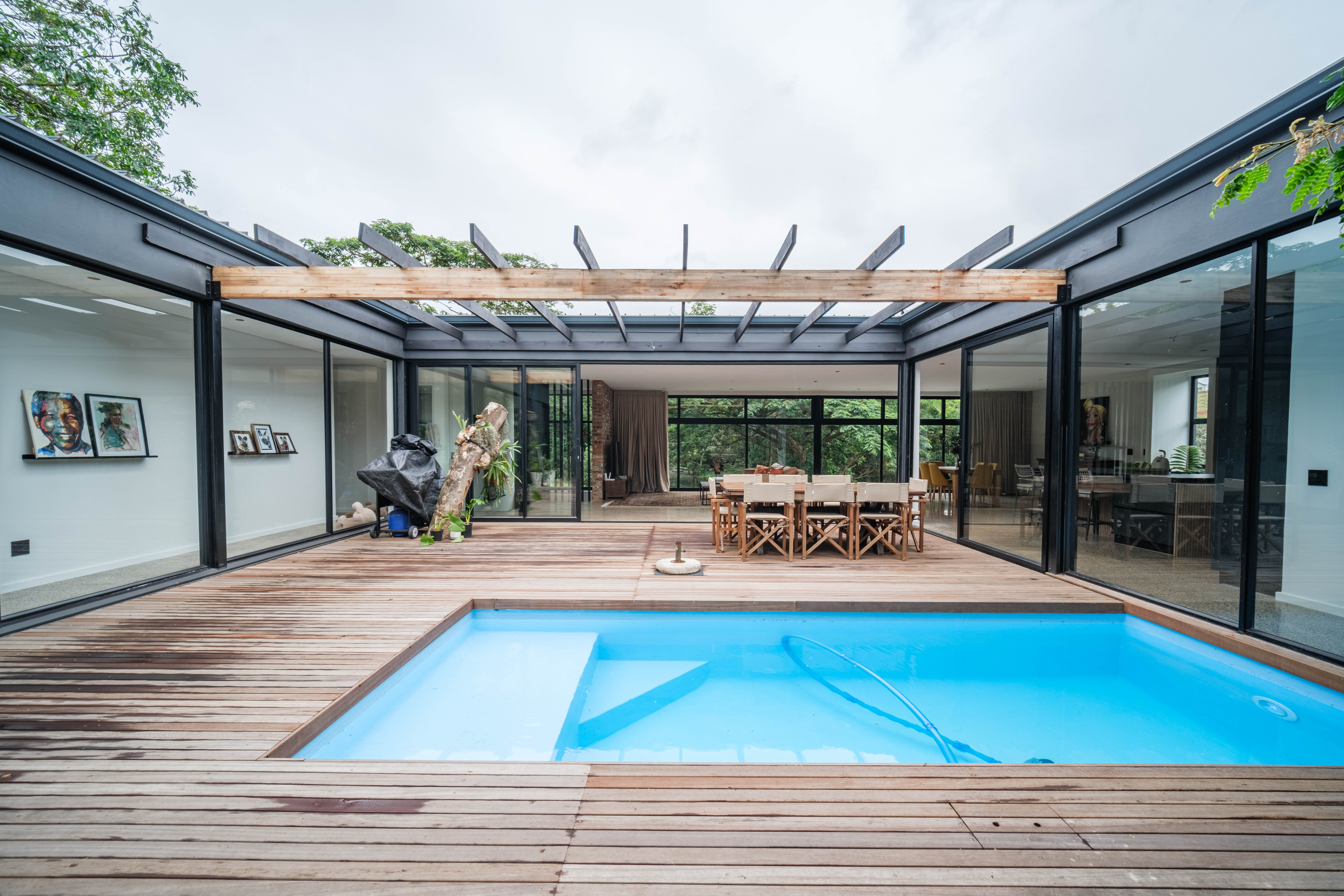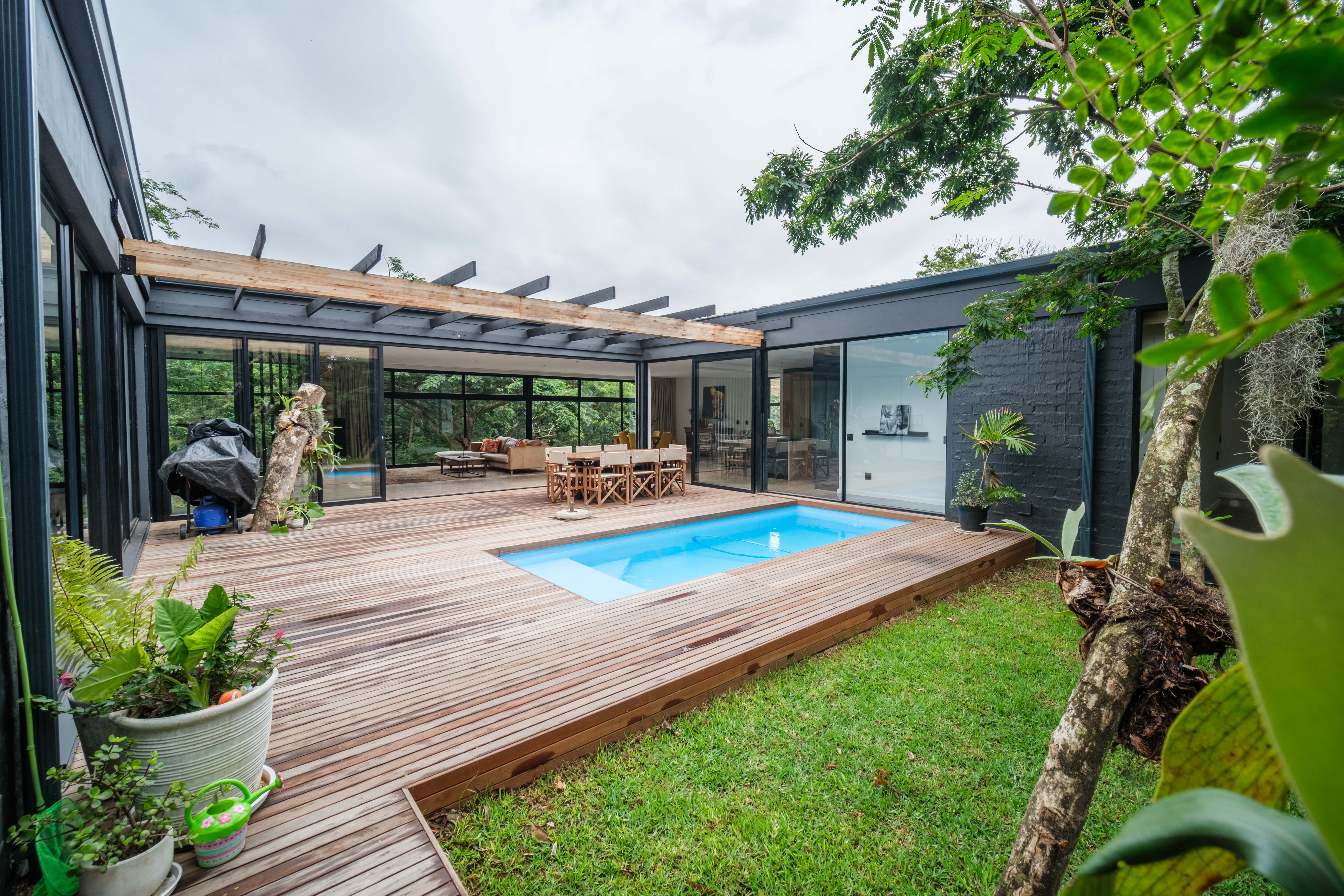 Welcome to this exceptional 4-bedroom home in the sought-after Elaleni Coastal Forest Estate, where modern design meets natural tranquility. Shaped in an elegant U-formation, this residence embraces seamless indoor-outdoor living and offers a sense of privacy and flow throughout. Each of the four bedrooms features its own ensuite bathroom, providing comfort and convenience for family and guests alike.